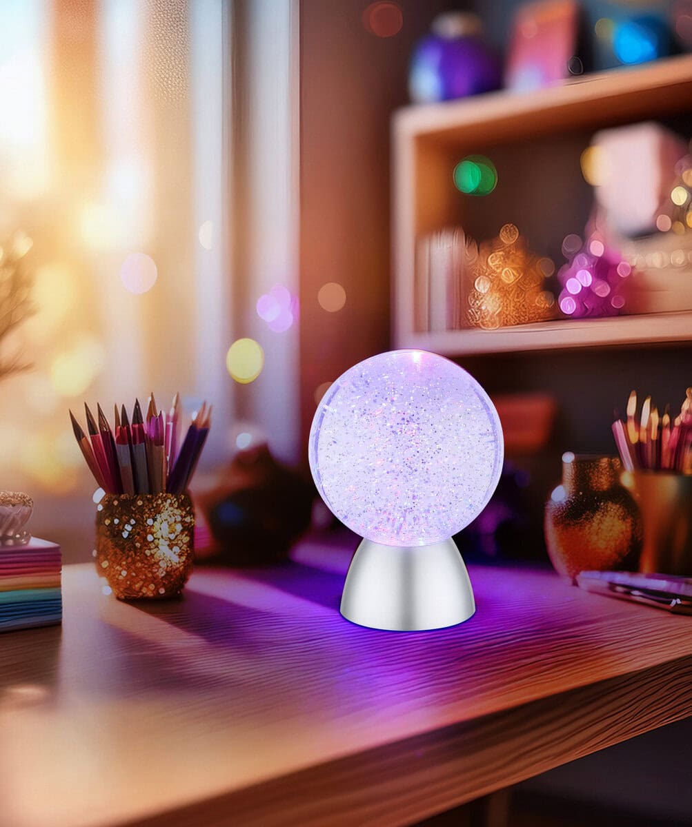 Dekorativni Cosmic Sphere GLIMMER impresionira modernim dizajnom i atmosferskim osvjetljenjem. Tijelo izrađeno od mat crne plastike pruža elegantnu osnovu, dok prozirna i srebrna plastična nijansa nježno i ravnomjerno raspršuje svjetlost. Sa prečnikom od 130 mm, ova sfera je atraktivan vrhunac za svaku prostoriju. Integrirani RGB LED nudi promjenu boje koja poboljšava raspoloženje, a kojom se lako upravlja pomoću praktičnog kliznog prekidača. Različite boje se mogu odabrati i popraviti prema vašem raspoloženju ili dekoru. Izlaz svjetlosti je savršeno prilagođen RGB rasvjeti, stvarajući ugodnu atmosferu koja uljepšava svaki životni ili radni prostor. Bilo kao dekorativni element ili izvor ambijentalnog svjetla, Cosmic Sphere GLIMMER donosi fascinantne efekte boja i moderan stil u vaš dom. Savršen dodatak za one koji žele da postave elegantne akcente.