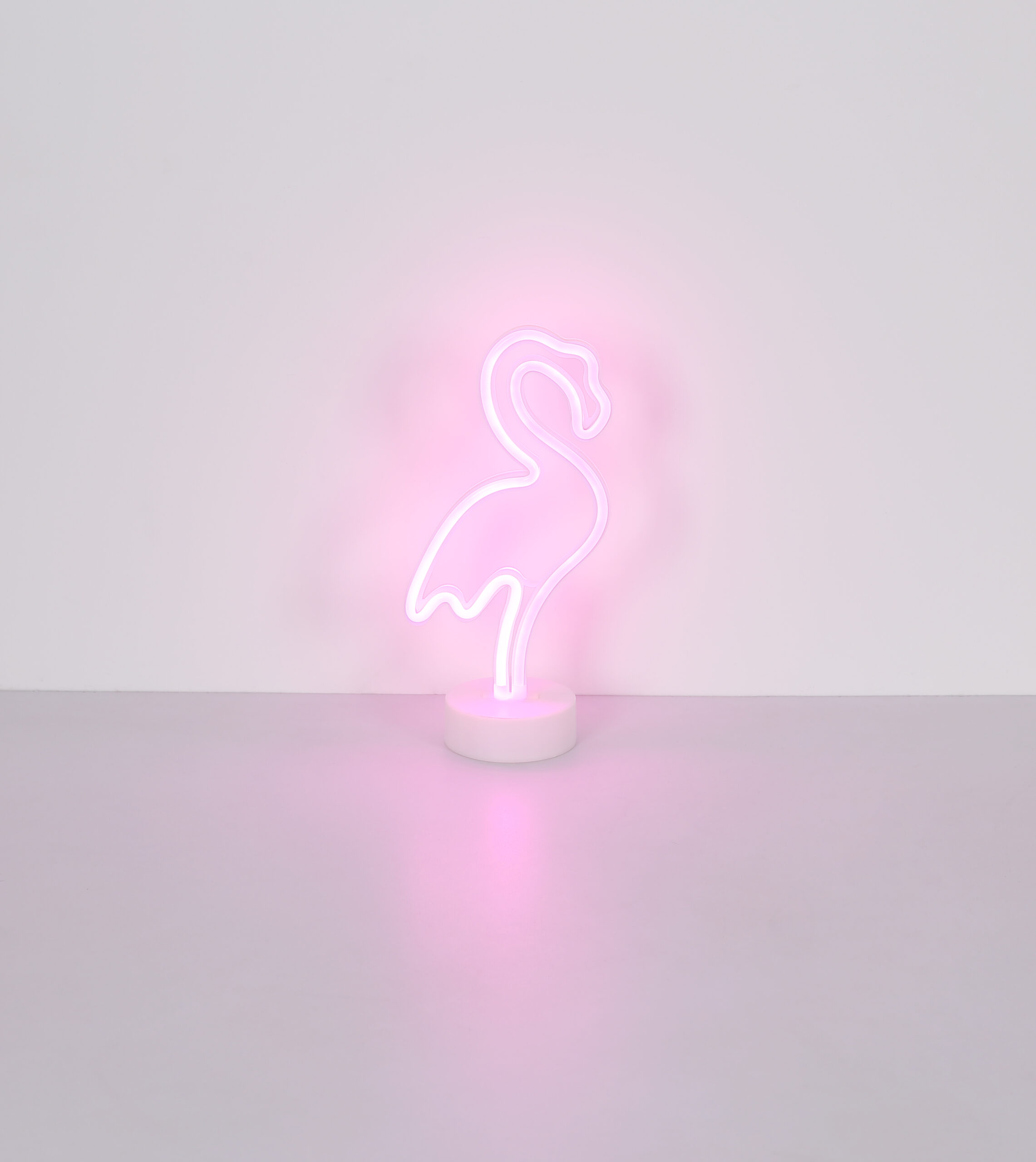 Dekorativna lampa FLAMINGO neonskog svjetla postavlja stilske akcente svojim dizajnom pauna. Opalno plastično sjenilo pruža meko i ravnomjerno svjetlo, dok bijelo plastično tijelo naglašava moderan dizajn. Opremljen kliznim prekidačem, lako možete podesiti osvjetljenje. Ova dekorativna lampa savršena je za one koji žele dodati poseban štih svom prostoru elegantnim i izuzetnim svjetlosnim objektom.