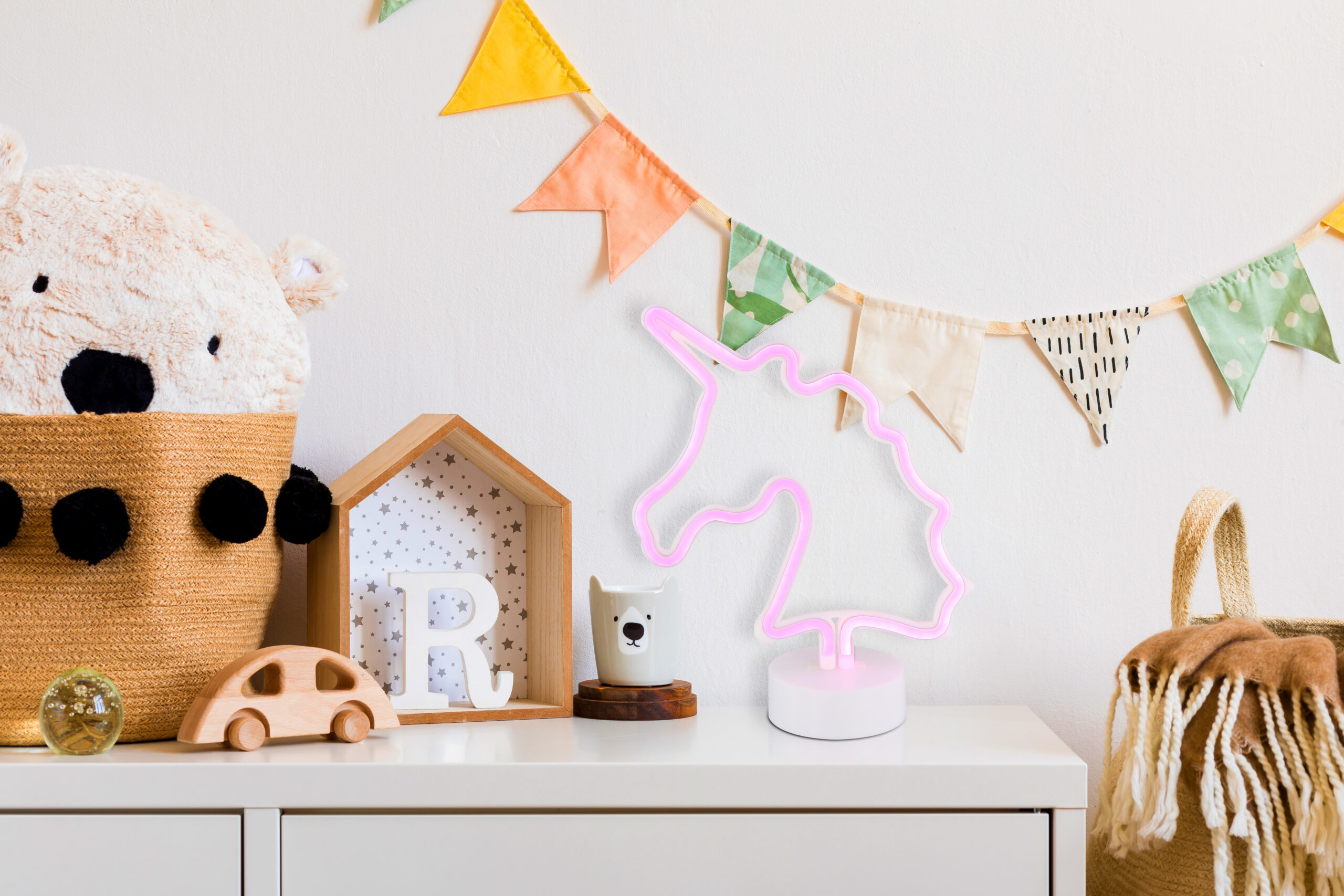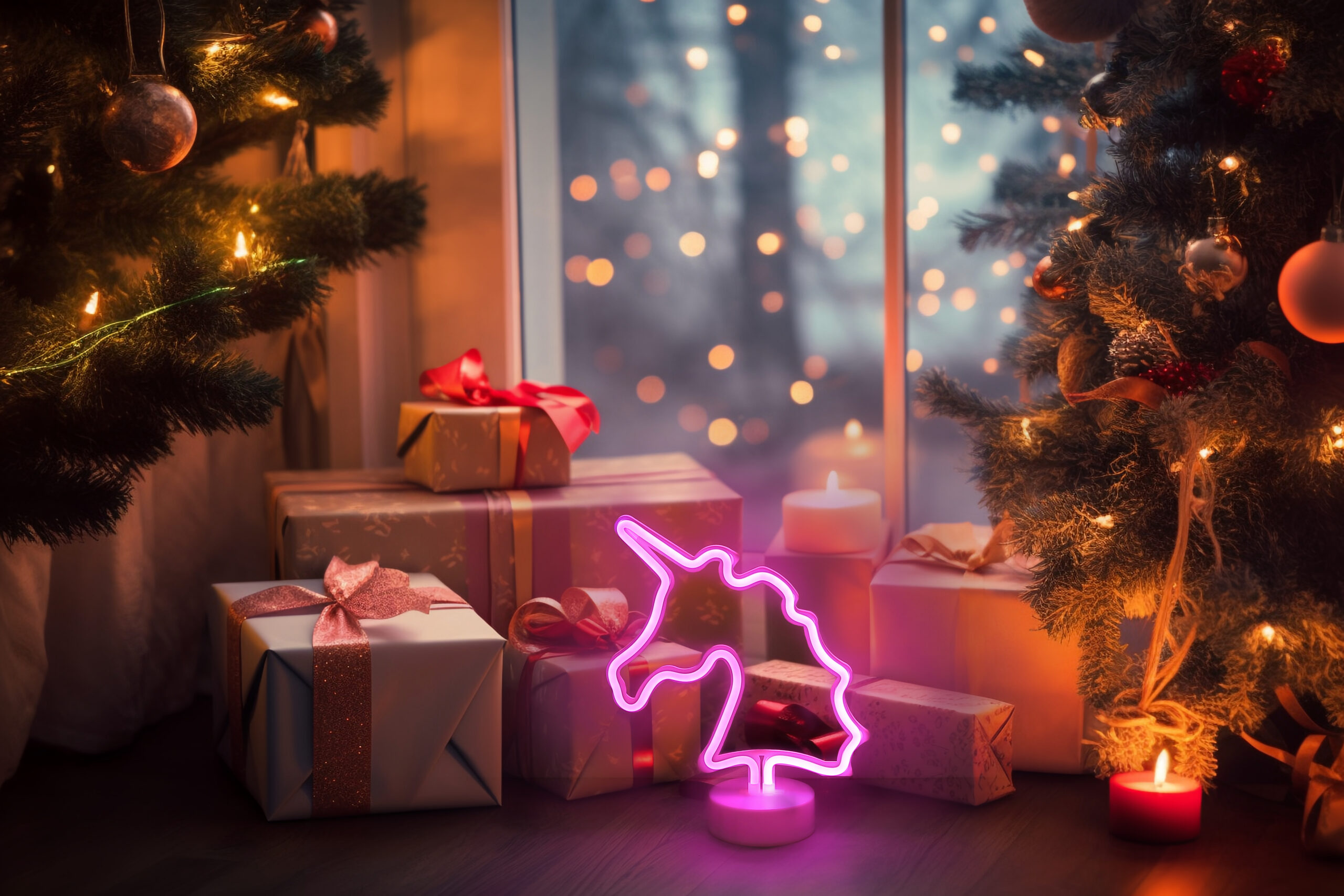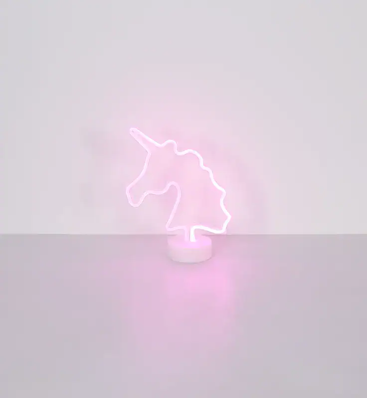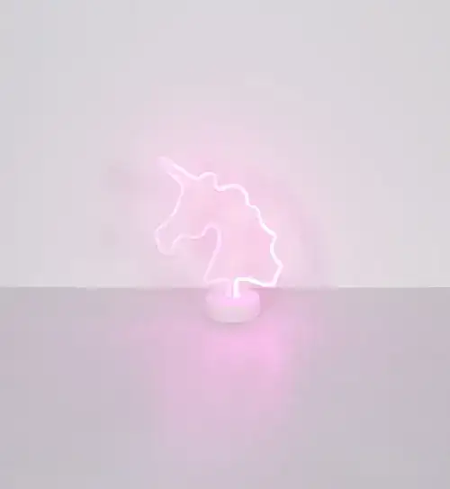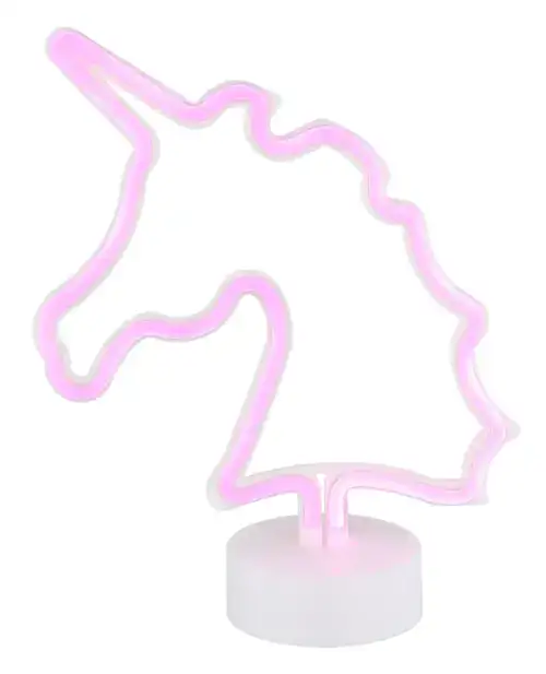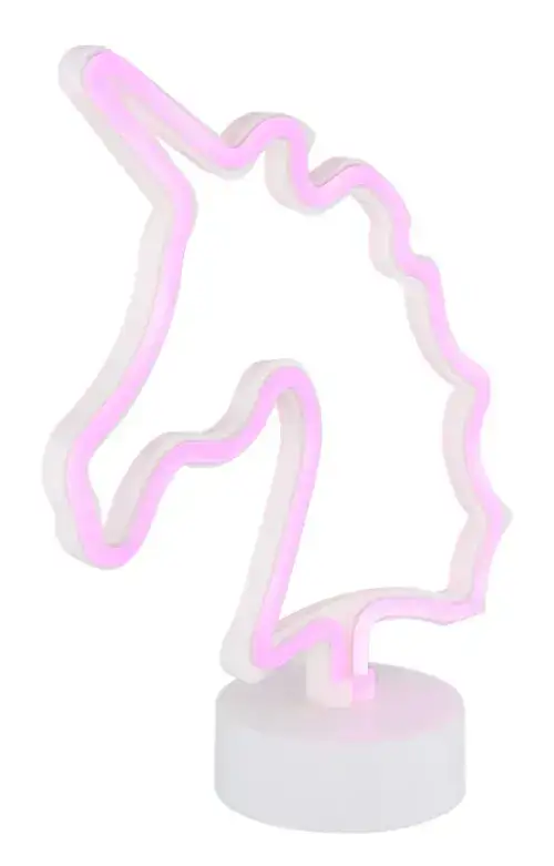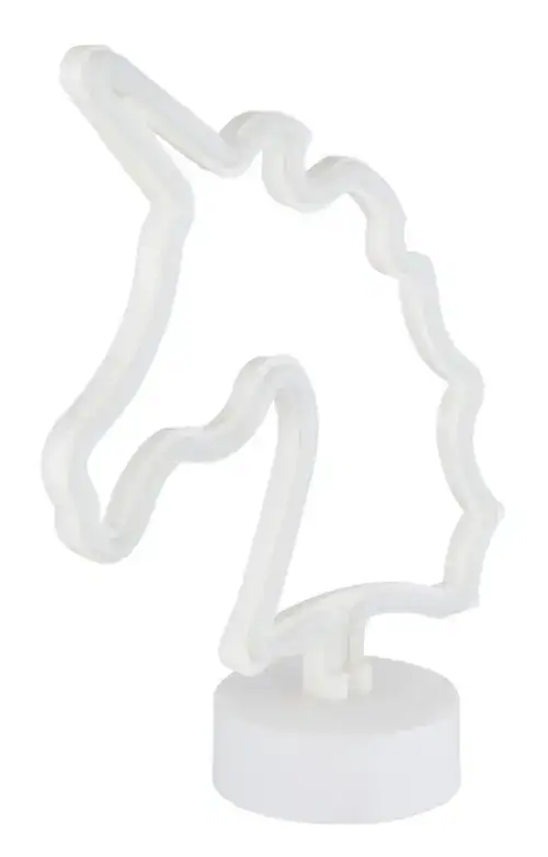 UNICORN II neonska dekorativna lampa dodaje dašak magije vašoj sobi. Opalno plastično sjenilo u obliku jednoroga pruža meko i atmosfersko svjetlo. Bijelo plastično kućište upotpunjuje očaravajući dizajn. Opremljen kliznim prekidačem, možete podesiti osvjetljenje kako želite. Idealna za dečije spavaće sobe ili kao dekorativni element, ova neonska ukrasna lampa donosi malo bajke u vaš dom.