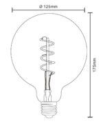 Edisonova LED žarulja DUBAN u obliku kugle kombinuje elegantan dizajn sa modernom LED tehnologijom. Telo je napravljeno od prozirnog stakla, koje sa stilom ističe filigranske LED filamente. Sa prečnikom od 125 mm i bazom E27, ova sijalica se uklapa u širok spektar svetiljki i daje poseban štih svakoj prostoriji. Nudi svjetlosnu snagu od 200 lumena i toplu temperaturu boje od 2000K, što stvara ugodnu i privlačnu atmosferu. Sijalica ima mogućnost zatamnjivanja, tako da možete fleksibilno podesiti svjetlinu u skladu sa svojim potrebama. Idealan za dekorativne aplikacije, kombinuje nostalgičnu estetiku klasičnih sijalica sa prednostima LED tehnologije, kao što su energetska efikasnost i izdržljivost. Edison LED žarulja DUBAN u obliku globusa je savršen izbor za korisnike koji su svjesni stila koji traže šarmantno i prilagodljivo svjetlosno rješenje.