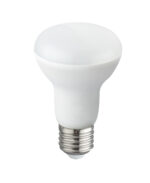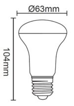 Performanse ove E27 R63 LED sijalice od 8W mogu se uporediti sa sijalicom sa žarućom niti od 50W. Ova LED sijalica ima snop svetlosti od 180°, napravljena je od satinirane plastike i pruža 640 lumena svetlosti u 3000K tople bele boje. Ova LED sijalica ima životni vek od 25.000 radnih sati i nije dimabilna.