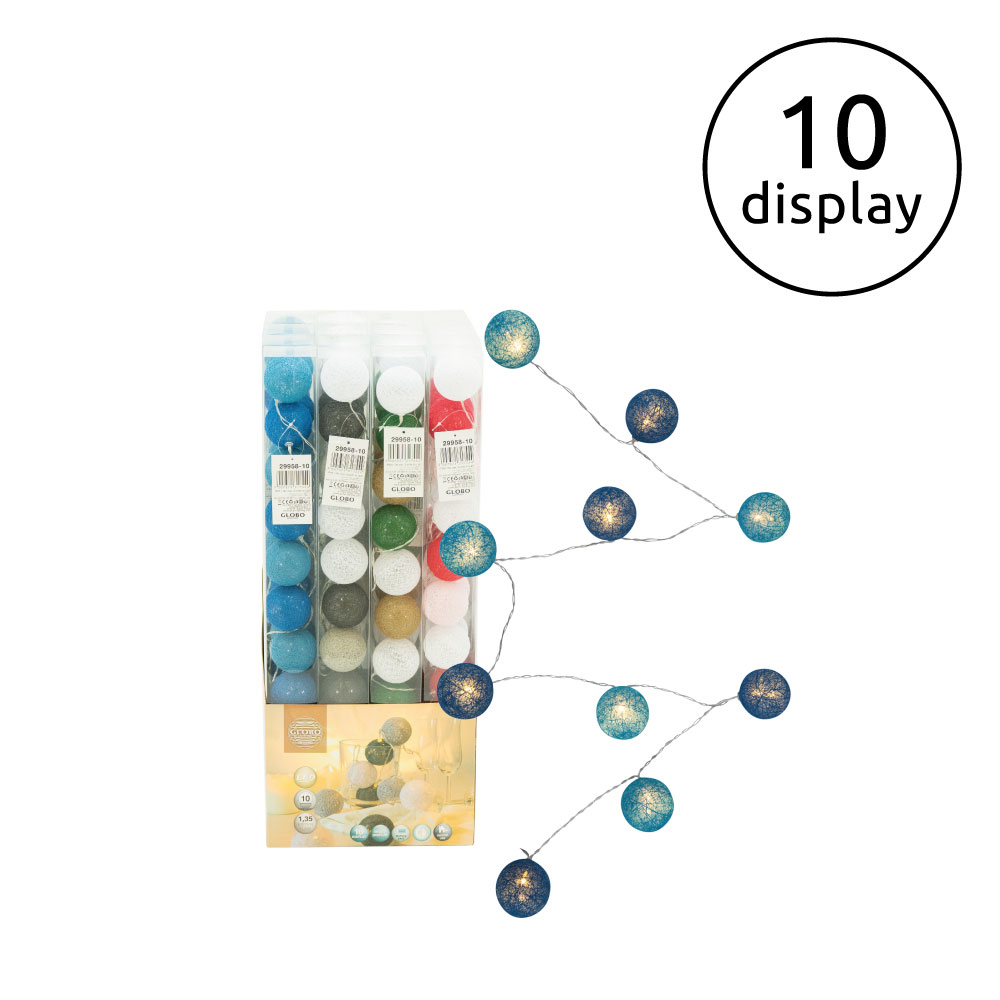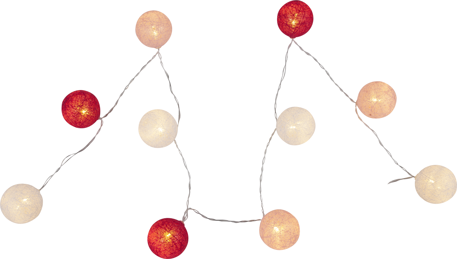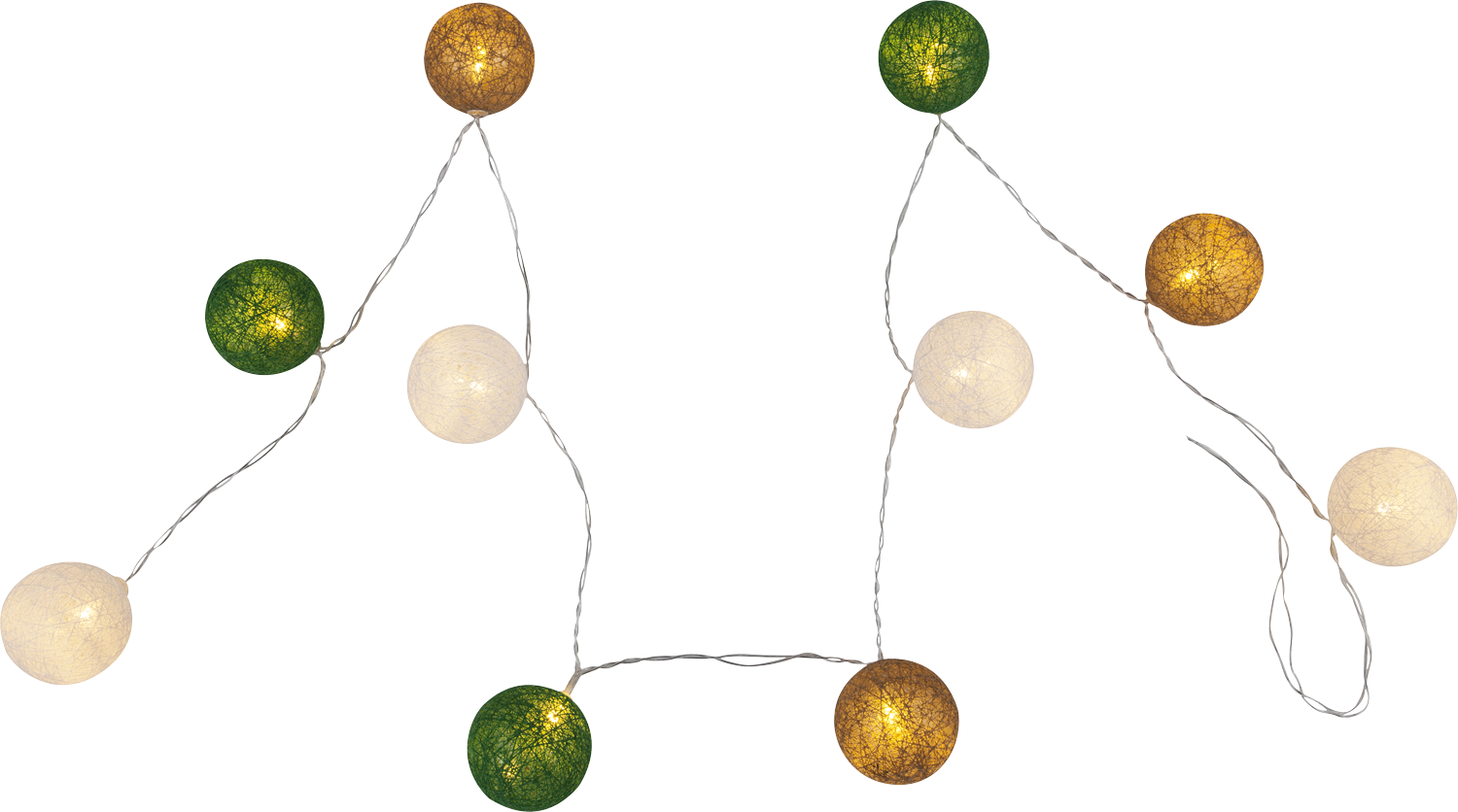 Vilinske lampice su divni ukrasni predmeti i nisu u sezoni samo za Božić. Namotane oko ogledala, ograda ili polica, daju svakodnevnim predmetima romantičan štih. Niz svjetala s deset plamenova opremljen je toplim bijelim LED diodama koje štede energiju. Gusto pletena mreža od pamučnih niti okružuje svjetlosne kuglice. Artikal je dostupan u četiri boje: crvena/krem, plava, siva/krem i zelena/braon. Posebna prednost ovog proizvoda je rad na baterije. Nezavisno od električne mreže, niz svjetala se može montirati i tamo gdje nema utičnice u blizini. Za artikal su potrebne dvije AA baterije koje nisu uključene.