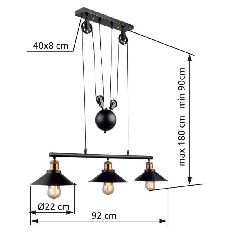 Viseća lampa u klasičnom i tradicionalnom stilu Lenius ističe svojim bezvremenskim dizajnom. Tri abažura, pričvršćena na ravnu ruku, mogu se inteligentno podesiti po visini preko četiri valjka (90 cm – 180 cm) u ovoj metalik visećoj lampi, u kombinaciji boja crna i stari mesing, i nude vam mogućnost korištenja bilo kojeg svjetla izvor (max.60W) sa tri ugrađene E27 utičnice. Zbog uštede energije i dugovečnosti preporučujemo LED lampe.