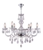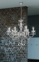 Ovaj elegantni tradicionalni luster, Cuimbra I serija, odlikuje se vintage dizajnom, kao i visokom kvalitetom izrade. Za proizvodnju ove hromirane viseće lampe odabran je akril. Viseći kristali ovoj lampi daju moderan izgled. Sa prečnikom od 67 cm i visinom od 1,66 metara, ovaj model se lako može integrisati u vaš dnevni boravak. Šest E14 grla postavljenih na zakrivljene krakove nude vam mogućnost korištenja bilo koje sijalice (maks. 40W). Preporučujemo LED sijalice zbog njihove izdržljivosti i uštede energije. Ovaj klasični luster može se odlično kombinovati sa drugim proizvodima iz iste serije.
