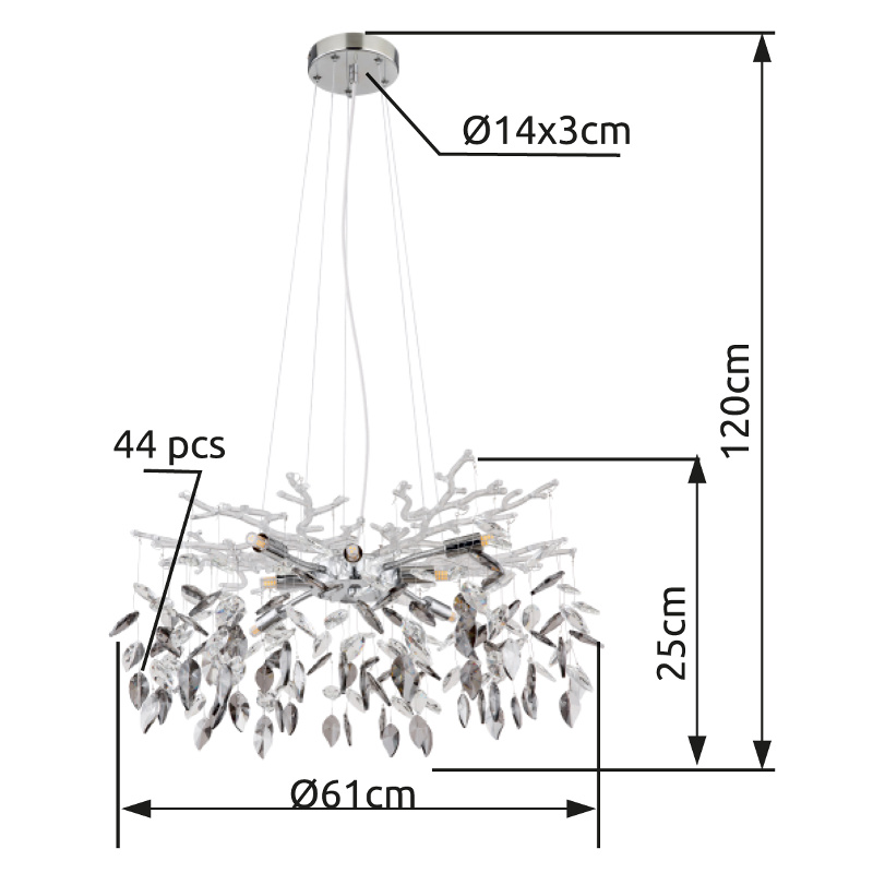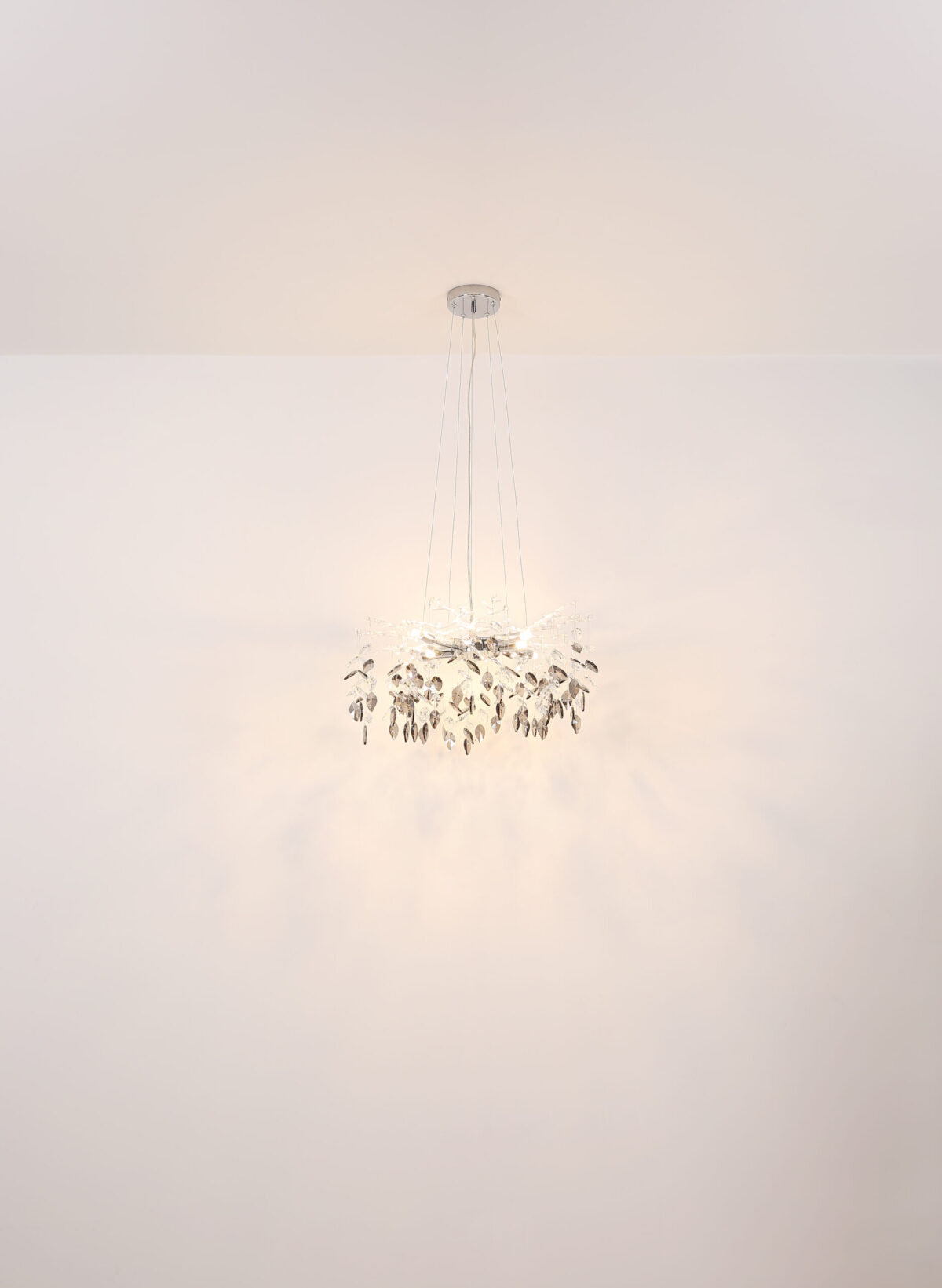 DANNA luster je prava privlačnost za vaš dom. Svojim okruglim i elegantnim dizajnom dodaje luksuznu atmosferu svakoj prostoriji. Luster je izrađen od hromiranog metala, što mu daje ne samo stabilnost već i dašak glamura. Sjenilo DANNA lustera je napravljeno od staklenih kristala u boji dima i prozirnih stakla koji reflektiraju svjetlost na prekrasan način, stvarajući impresivan svjetlosni efekat. Ovaj blistavi naglasak čini lampu pravom privlačnom za oči. Još jedan vrhunac DANNA lustera je mogućnost individualnog podešavanja visine. To vam omogućava da savršeno prilagodite svjetiljku visini vaše prostorije i tako osigurate optimalno osvjetljenje. Sa prečnikom od 610 mm, DANNA luster nudi dovoljno svetle površine da vašu sobu učini svetlom i blistavom. Bilo da se nalazi u dnevnoj sobi, trpezariji ili hodniku, ovaj luster stvara elegantan i atmosferski ambijent. Dodajte završne detalje svom domu uz DANNA luster. Ova tradicionalna lampa će impresionirati vaše goste i obaviti vašu sobu očaravajućom svjetlošću.