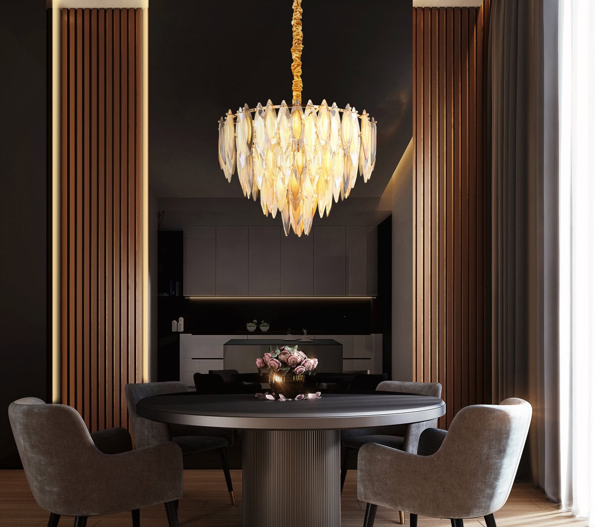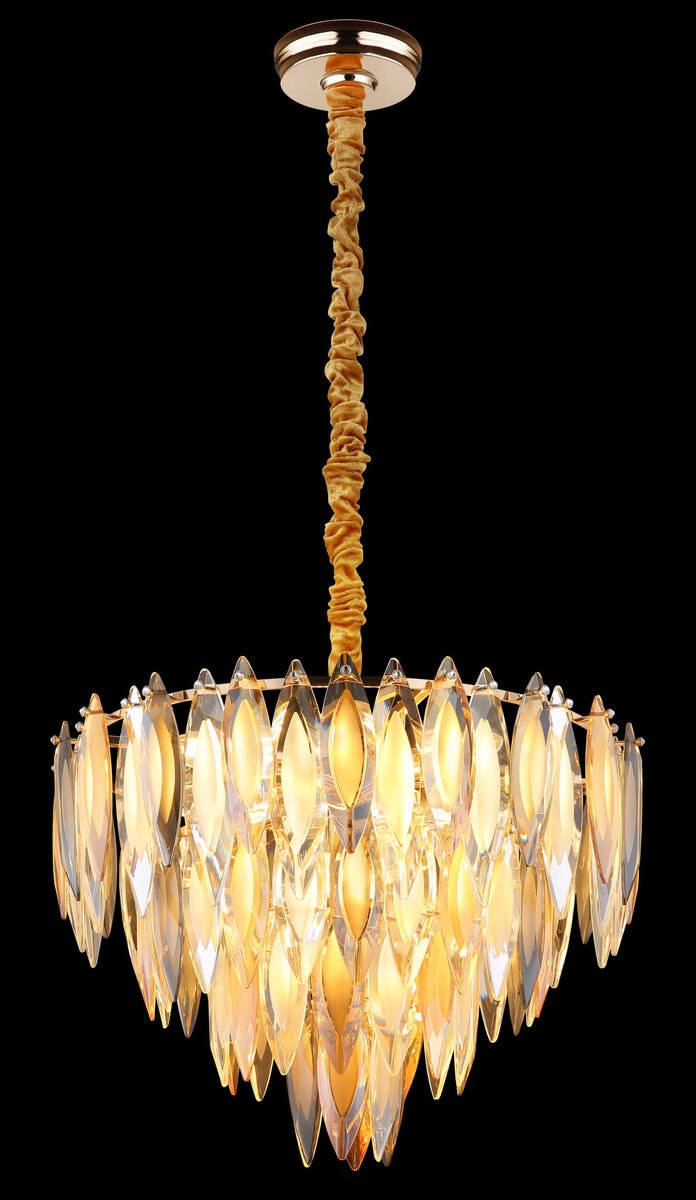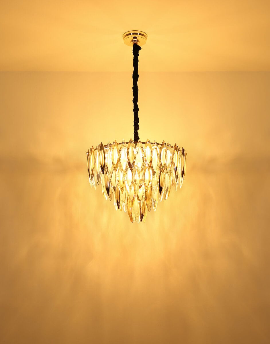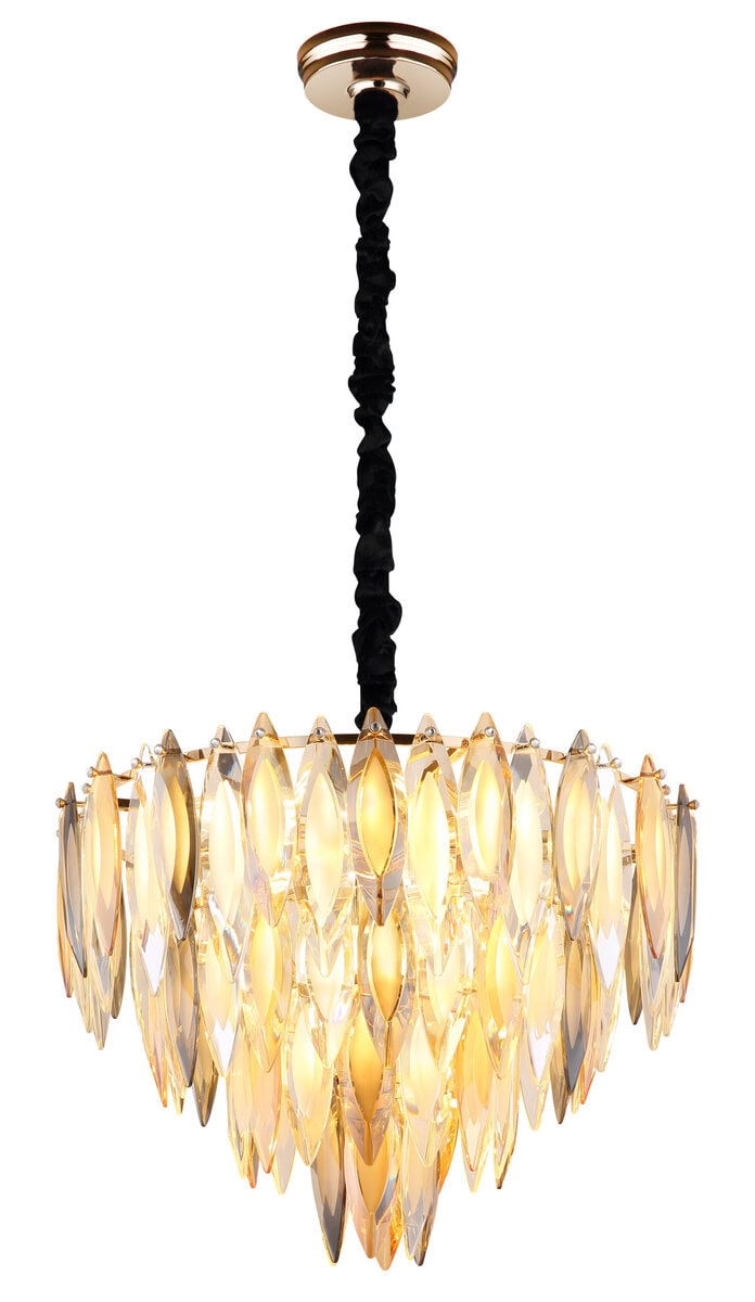 Okrugli plafonski luster ELINOR istinski privlači poglede, kombinujući tradicionalnu eleganciju sa luksuznim materijalima. Metalni okvir zlatne boje zrači toplinom i stilom, dok velikodušni prečnik od 580 mm čini impresivan izgled u svakoj prostoriji. Vrhunac je razrađena kristalna dekoracija izrađena od visokokvalitetnih kristala K9 u dimljenim, šampanjskim i jasnim bojama, koji lijepo prelamaju svjetlost i stvaraju fascinantnu atmosferu. Dodatno, lanac je prekriven luksuznim zlatnim baršunastim omotom, dajući lusteru poseban štih. ELINOR je savršen za klasične dnevne sobe, reprezentativne ulazne prostore ili elegantne blagovaonice. Za lampu je potreban E14 grlo (nije uključeno), što vam omogućava da pojedinačno odaberete odgovarajući izvor svjetlosti. Sa ELINOR-om donosite komad tradicionalne izrade i bezvremenske ljepote u svoj dom. Ekskluzivni luster za ljubitelje elegantne rasvjete.