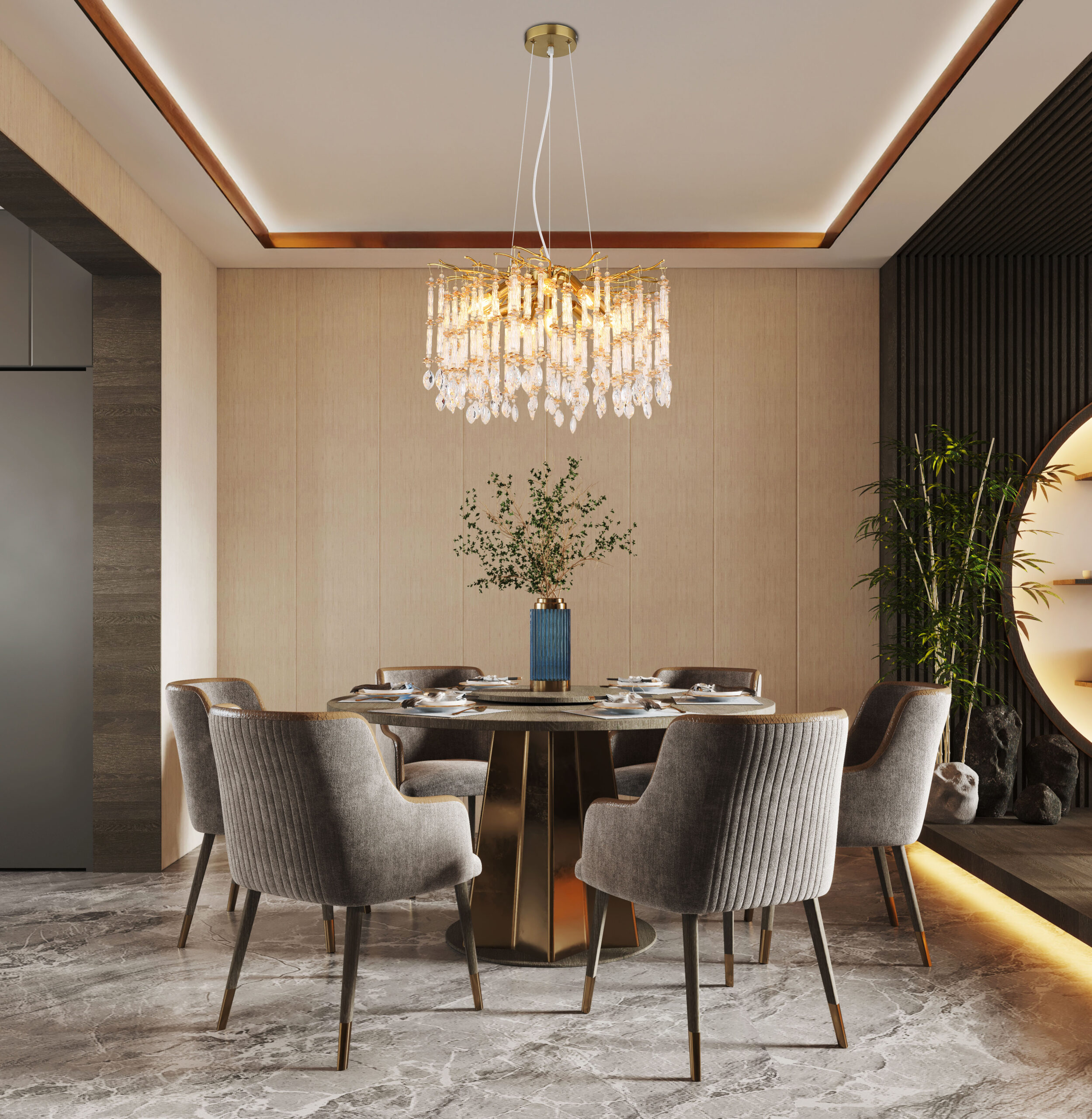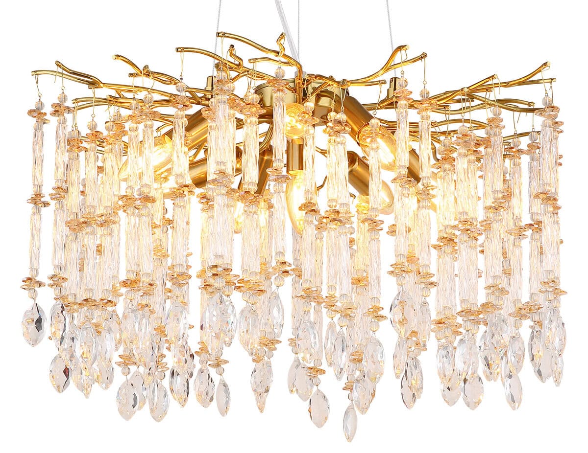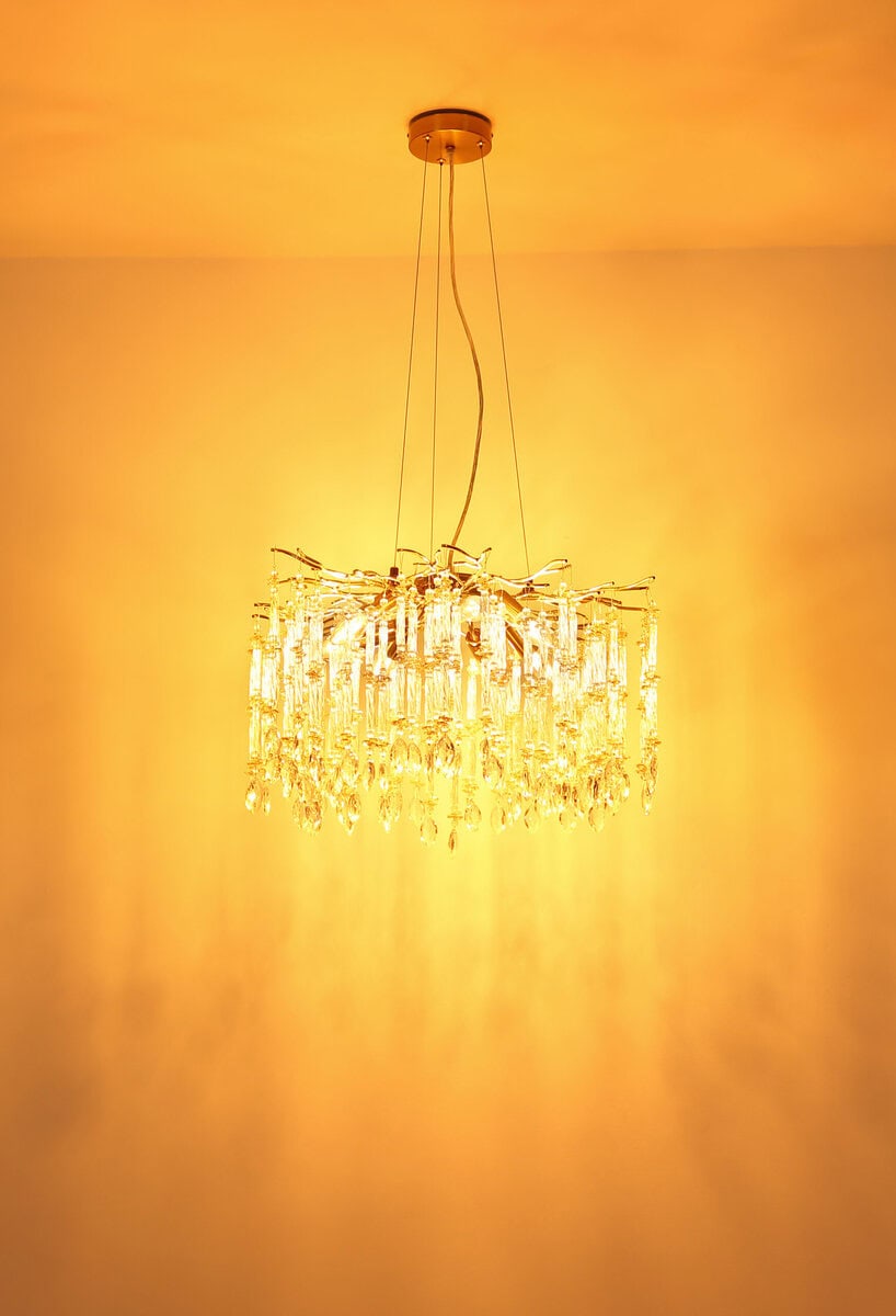 Okrugla plafonska lampa GLORIA kombinuje umetnički dizajn sa luksuznim šarmom. Mat metalni okvir zlatne boje čini elegantnu osnovu za raskošnu kristalnu dekoraciju od prozirnih i jantarnih staklenih kristala koji prekrasno lome svjetlost. Sa velikim prečnikom od 600 mm, GLORIA stvara elegantan naglasak u svakoj prostoriji i njeguje toplu, privlačnu atmosferu. Pažljivo raspoređeni kristali daju lusteru blistavi efekat koji stvara glamurozno raspoloženje. Opremljen E14 grlom (bez žarulje), GLORIA nudi fleksibilne opcije za izbor izvora svjetlosti, omogućavajući individualno podešavanje svjetline i temperature boje. Ovaj uređaj kombinuje visokokvalitetne materijale sa promišljenim dizajnom i savršen je izbor za dnevne ili prijemne prostore koji traže eleganciju i stil sa posebnim štihom.