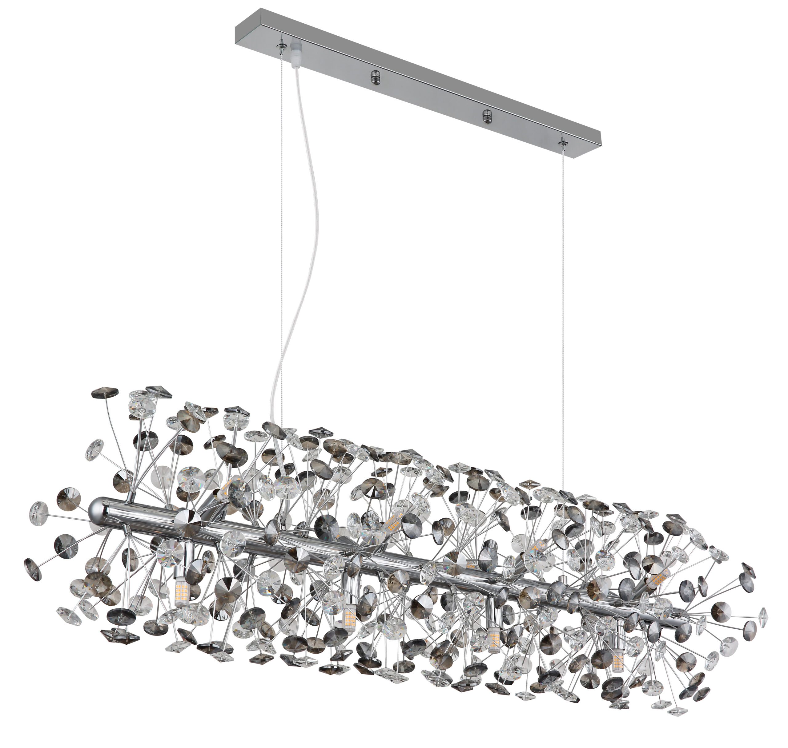Otkrijte eleganciju pravokutnog lustera “KATRINA”, koji utjelovljuje bezvremenski dizajn svojom kombinacijom hromiranog metala i prozirnih K9 kristala u boji dima. Ova duguljasta plafonska lampa je opremljena sa ukupno 12XG9 LED sijalica, koje pružaju toplu svetlosnu temperaturu od 3000K i osvetljenost od 350 lumena. Kristali lome svjetlost na umjetnički način i pružaju prekrasnu difuziju svjetlosti u prostoriji. Kromirano metalno tijelo ne samo da daje lusteru robusnu strukturu, već i moderan dodir koji se savršeno uklapa u različite stilove interijera. Idealan za dnevni boravak, trpezariju ili hodnik, luster “KATRINA” dodaje dašak luksuza svakoj prostoriji. Tradicionalna izrada se susreće sa savremenim dizajnom u ovoj impresivnoj plafonskoj lampi koja je i funkcionalna i estetski ugodna.