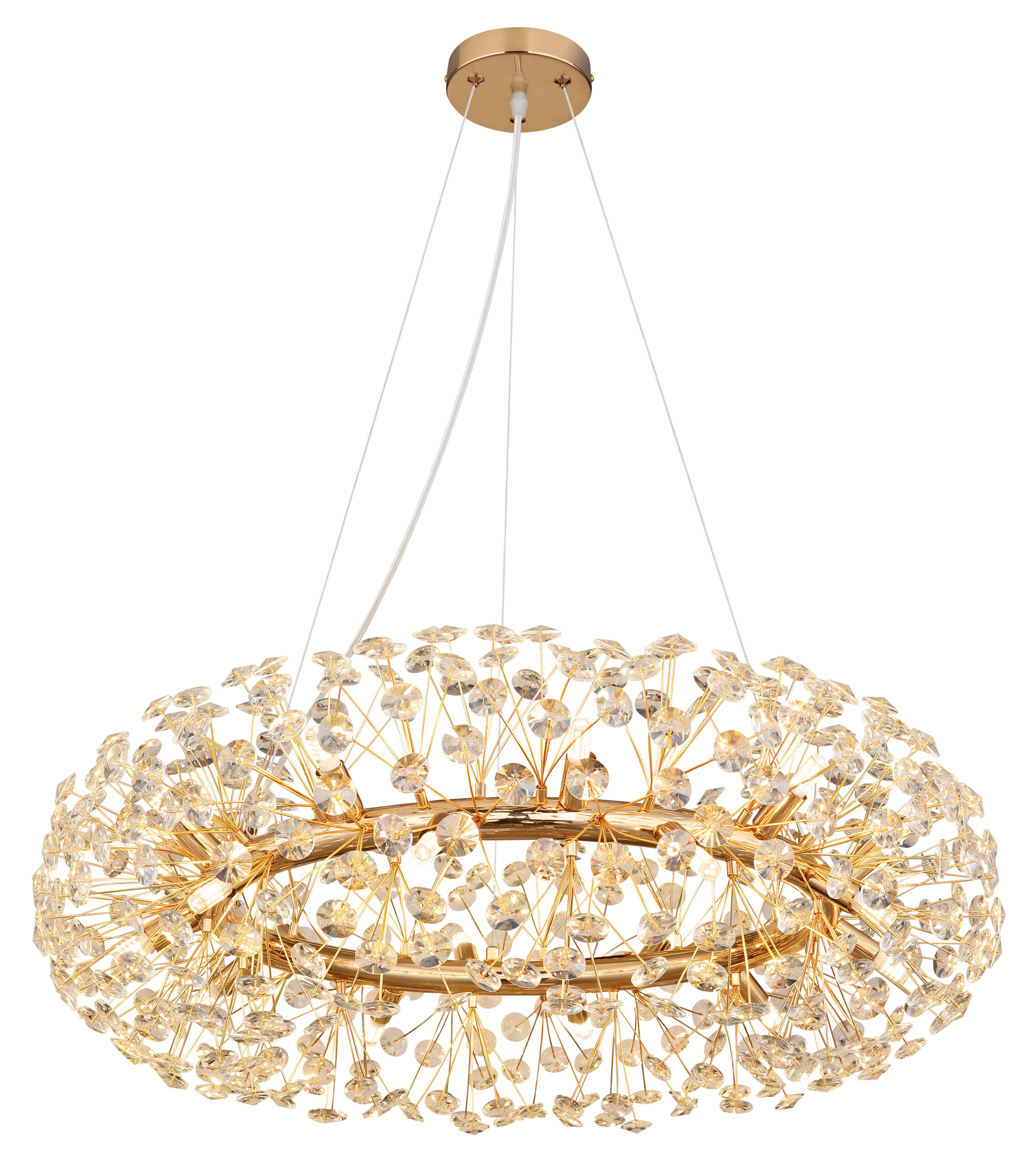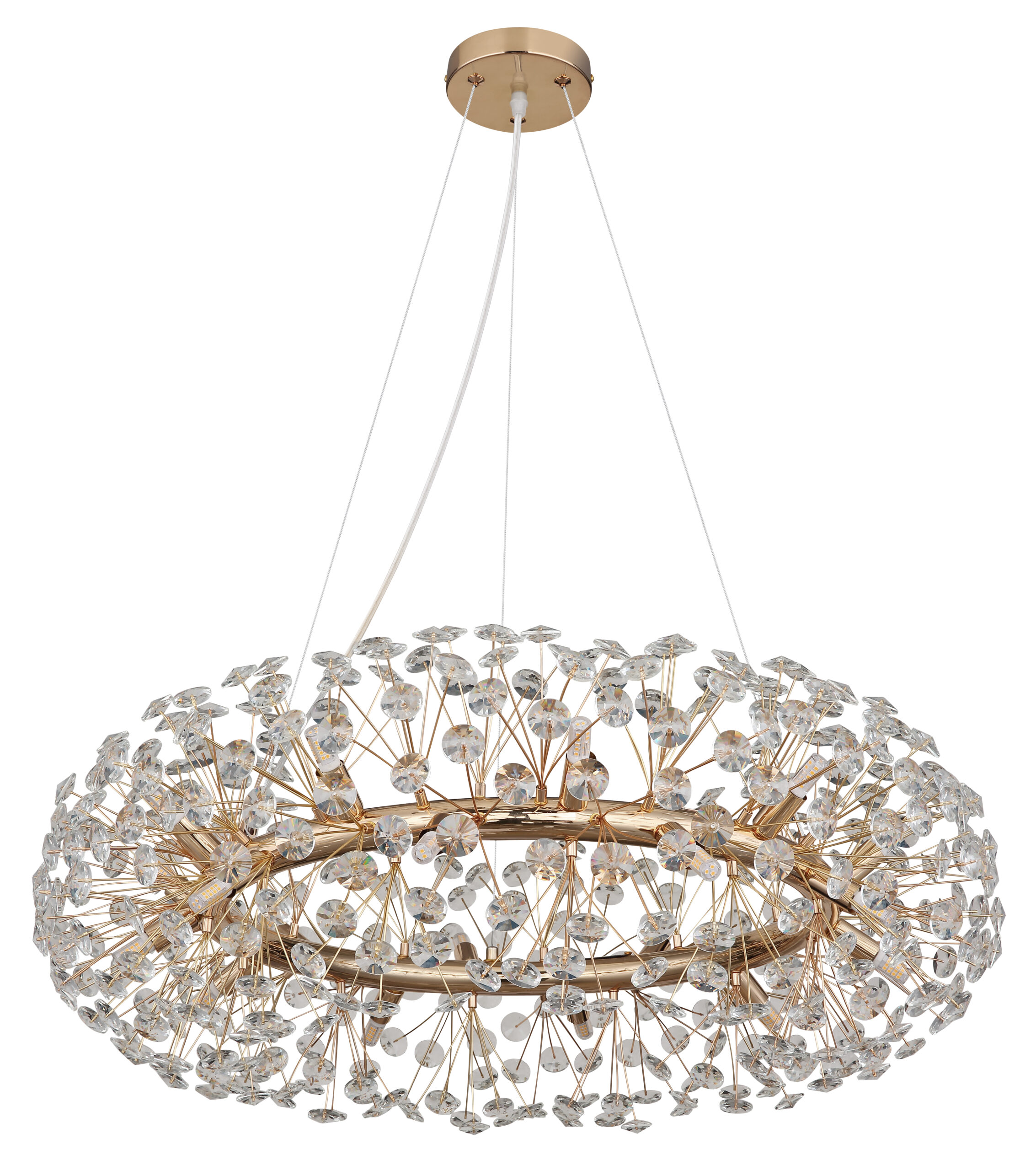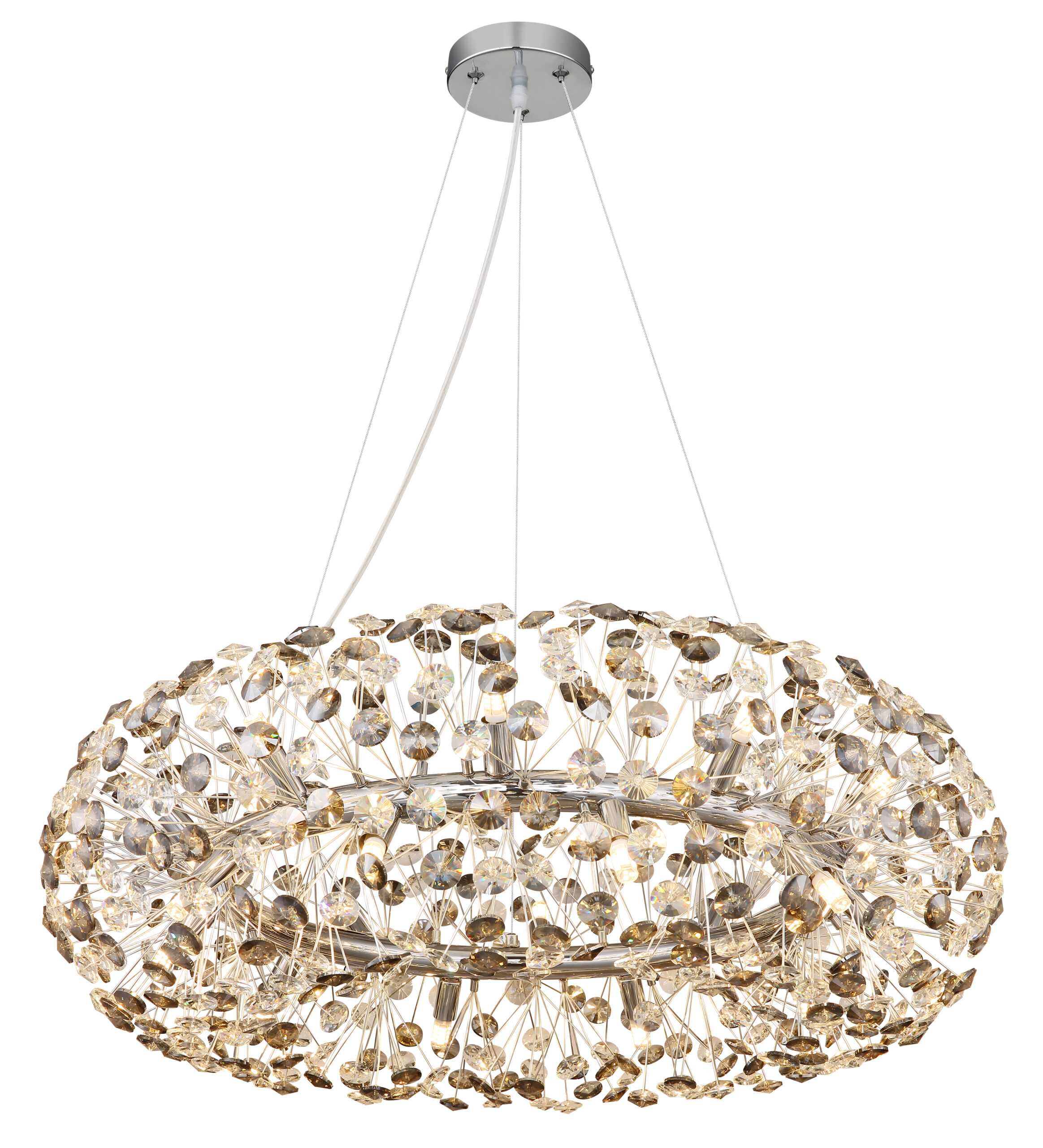 Luster KATRINA predstavljen je u klasičnom okruglom obliku sa prstenom blistavih K9 kristala koji pružaju elegantnu difuziju svjetlosti. Metalno tijelo zlatne boje dodaje dašak raskoši ovom lusteru i dobro se slaže s tradicionalnim stilovima interijera. Opremljen sa 20XG9 LED sijalicama, luster KATRINA pruža odlično osvetljenje sa toplom svetlošću od 3000K i jačinom lumena od 350. Prozirni kristali K9 reflektuju svetlost i stvaraju glamuroznu atmosferu u prostoriji. Ovaj luster je idealan za dnevne i trpezarijske prostore, kao i za foajee i prijemne sale, gde služi ne samo funkcionalno već i kao dekorativni element. Kombinacija moderne LED tehnologije i tradicionalnog dizajna čini KATRINU bezvremenskim vrhuncem u svakoj sobi.