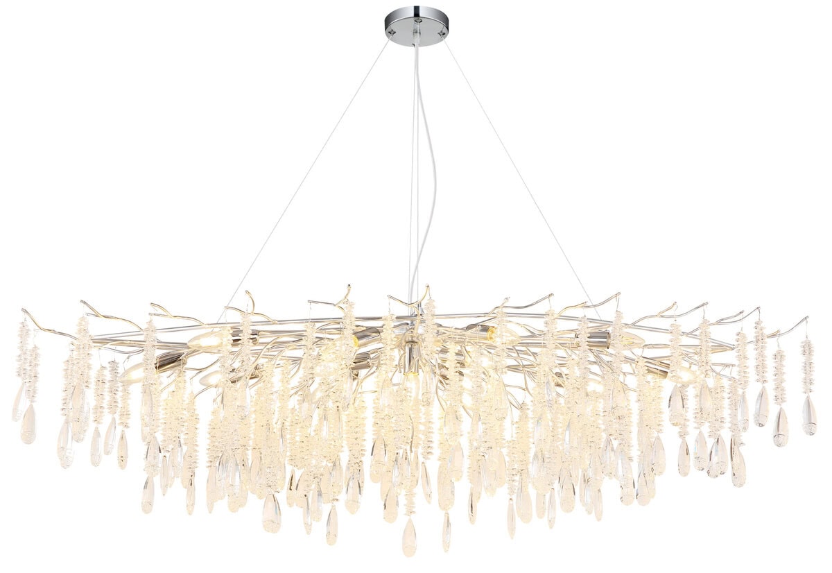 Ovalni luster KINGA oduševljava modernim dizajnom i visokokvalitetnim materijalima. Mat metalni okvir srebrne boje čini delikatnu strukturu koja elegantno podržava ovalnu nijansu. Ukrašena je prozirnim staklenim kristalima koji lijepo prelamaju svjetlost, stvarajući blistav, elegantan ambijent. Sa dužinom od 1500 mm i širinom od 600 mm, KINGA je idealna za prostrane dnevne sobe, reprezentativne ulazne prostore ili elegantne trpezarije. Uređaj zahtijeva E14 utičnicu (isključuje), što omogućava fleksibilan izbor izvora svjetlosti. KINGA kombinuje savremeni dizajn sa klasičnim kristalnim štihom i obezbeđuje harmoničnu distribuciju svetlosti koja sa stilom osvetljava svaku prostoriju. Bilo kao impozantan središnji dio ili suptilan dragulj – ovaj luster unosi luksuz i sjaj u vaš dom. Savršeno za ljubitelje estetske rasvjete jasnih linija i profinjenog karaktera.