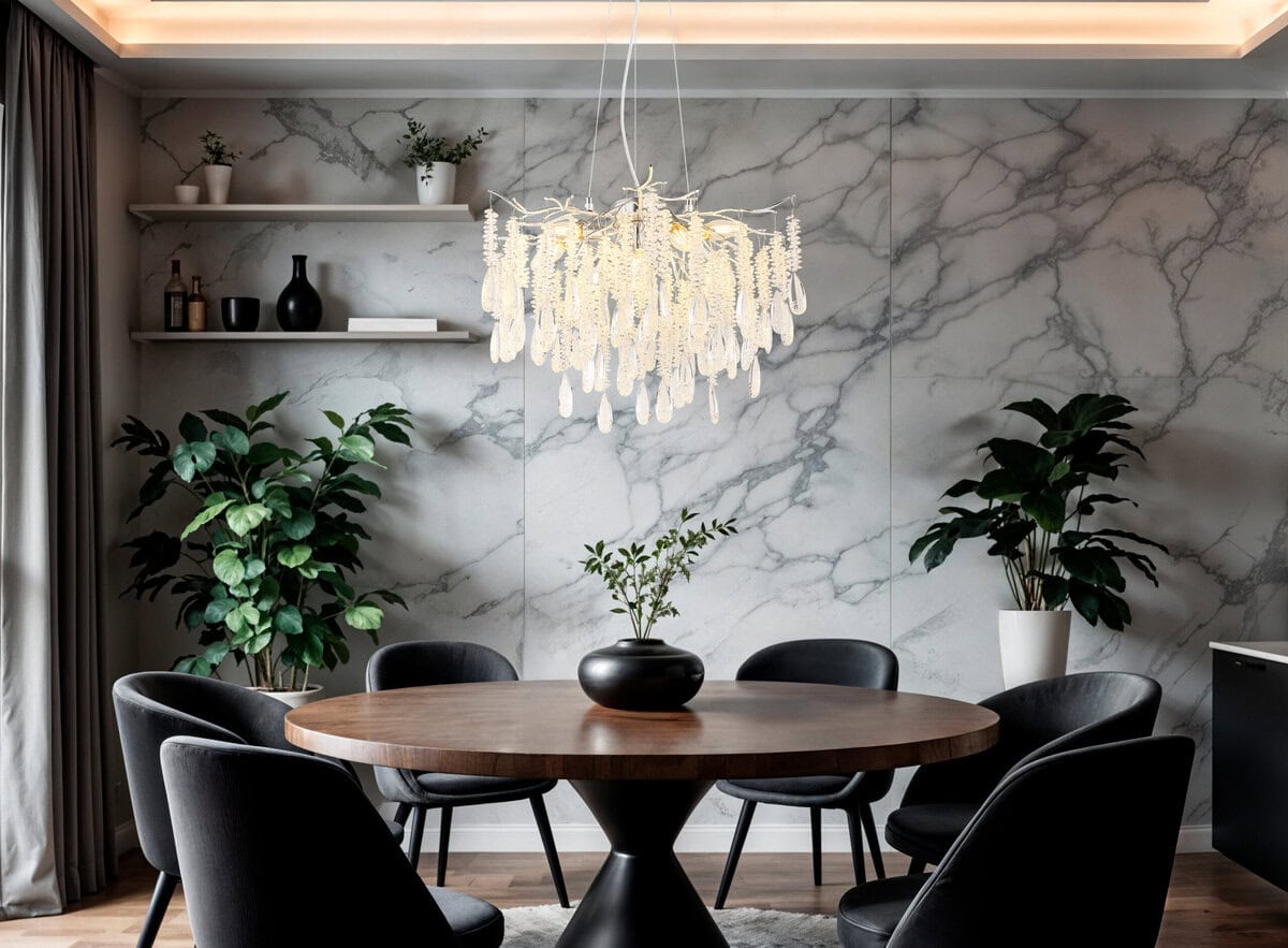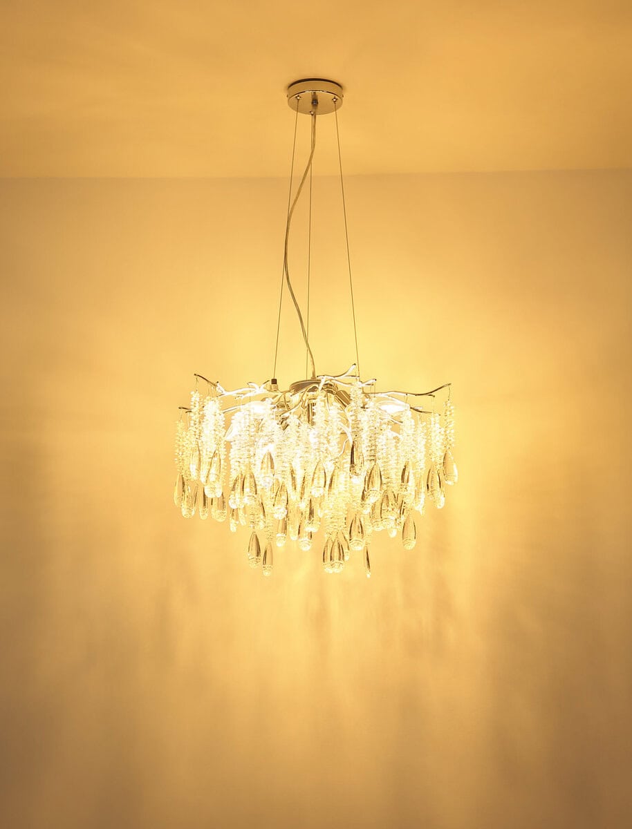 Okrugli luster KINGA impresionira svojim modernim dizajnom i visokokvalitetnim materijalima. Mat metalni okvir srebrne boje čini delikatnu strukturu koja elegantno podržava okruglu nijansu. Ovo je ukrašeno prozirnim staklenim kristalima koji lijepo prelamaju svjetlost, stvarajući blistav, elegantan ambijent. Sa prečnikom od 600 mm, KINGA je idealna za velike dnevne sobe, trpezarije ili ulazne hodnike koji su naglašeni modernim osvetljenjem. Za uređaj je potrebna sijalica E14 (nije uključena), što vam omogućava da fleksibilno odaberete savršen izvor svjetlosti. KINGA kombinuje savremeni dizajn sa klasičnim kristalnim štihom i obezbeđuje harmoničnu distribuciju svetlosti koja elegantno osvetljava svaku prostoriju. Bilo da je središnji dio sobe ili suptilni element – ovaj luster unosi luksuz i sjaj u vaš dom. Savršeno za one koji cijene estetsko osvjetljenje čistih linija.