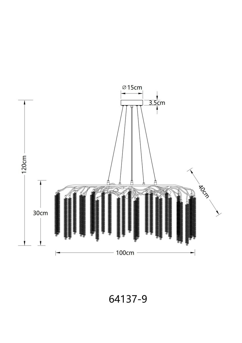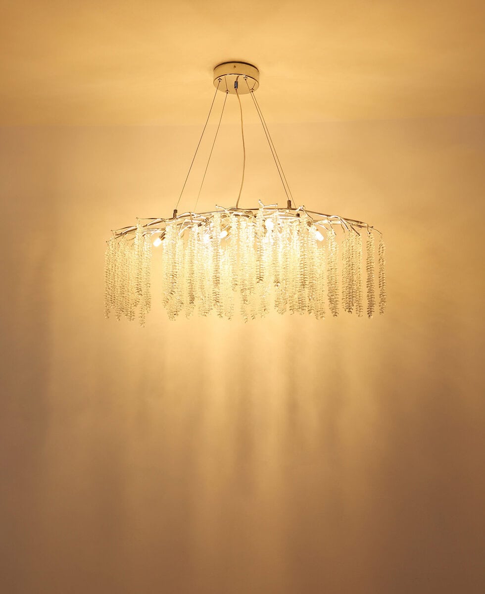 Luster LUSTER CHROME METAL je impresivna plafonska lampa klasičnog dizajna koja svojim elegantnim izgledom daje luksuzne akcente. Kućište od hromiranog metala i aluminijuma daje lampi modernu, sjajnu površinu koja stvara stilski ugođaj u svakoj prostoriji. Plastični kristali na granama hvataju svjetlost i magično je odbijaju, stvarajući prepoznatljivu, svjetlucavu difuziju svjetlosti. Ovalnog oblika, ovaj luster se savršeno uklapa u velike dnevne sobe, trpezarije ili elegantne recepcije i garantovano će biti vrhunac. Luster je opremljen sa 9xG9 utičnicama i omogućava vam da odaberete prave sijalice za individualno svetlosno raspoloženje. CHROME METAL LUSTER kombinuje tradicionalni dizajn sa visokokvalitetnom izradom i idealan je izbor za sve koji traže elegantno, ali funkcionalno osvetljenje.
