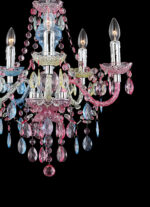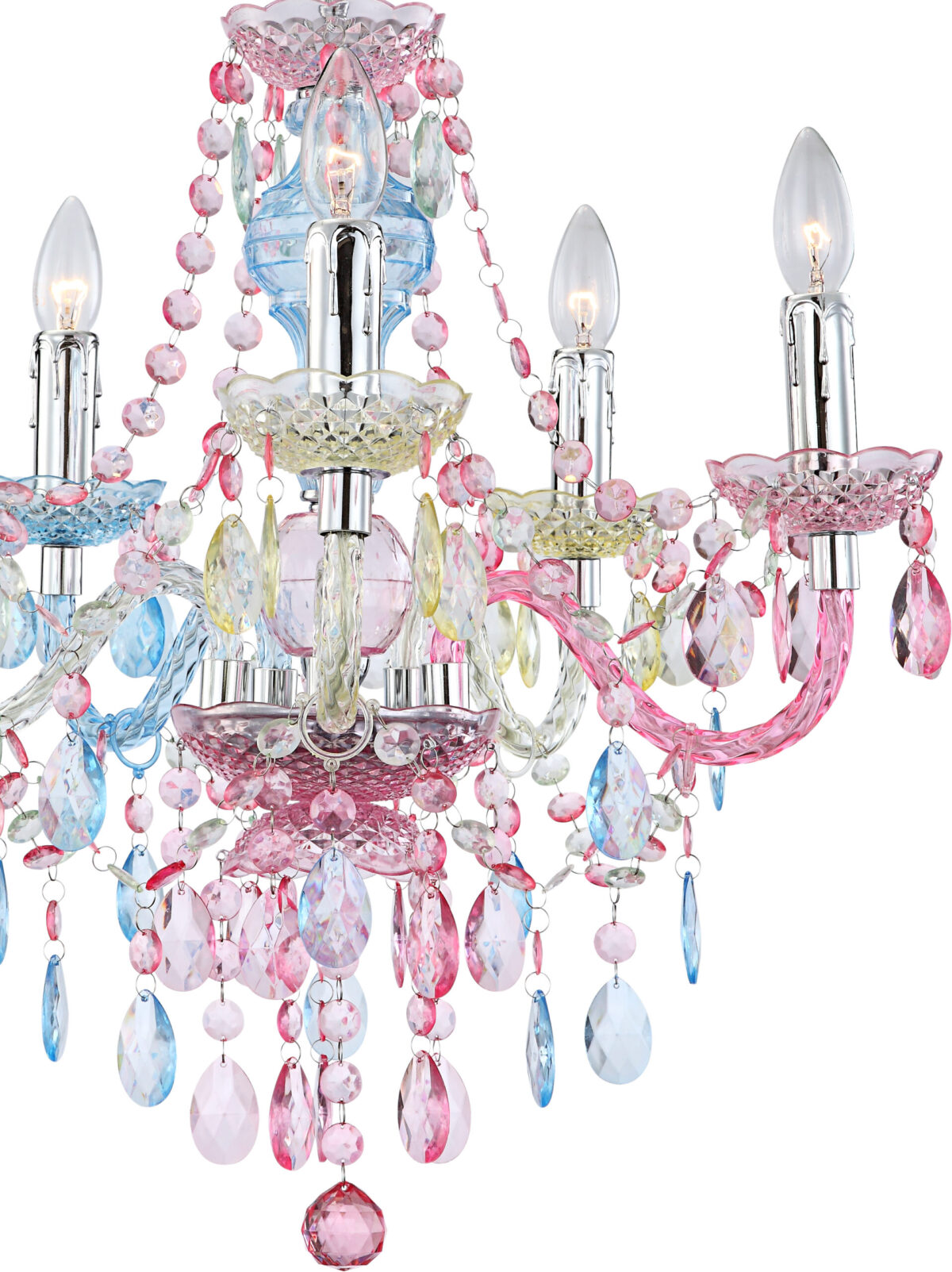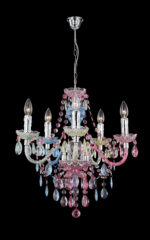 Sa ovim lusterom možete širiti eleganciju u svojoj sobi. Hromirani luster (Ø51 cm) karakterizira filigranski rad i zajedno sa raznobojnim akrilnim kristalima postaje prava pažnja za oko. U prostoriju viri 149 cm, a zbog pet grla E14 možete sami odabrati odgovarajuću sijalicu. Zbog njihove uštede energije i izdržljivosti preporučujemo LED lampe.