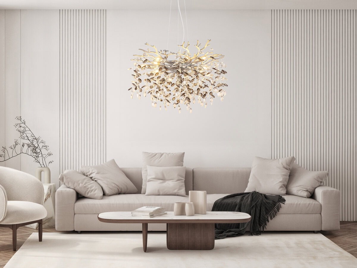 QUEENA – Okrugli dizajnerski luster s kristalnim privjescima od 10 svjetla. Okrugli luster QUEENA savršeno kombinuje moderan dizajn i glamurozne svetlosne akcente. Umjetno razgranato tijelo od mat metala srebrne boje podsjeća na elegantne grane i daje svjetiljci izvanredan izgled. Ukrašena blistavim staklenim kristalima u dimno sivoj i prozirnoj boji, QUEENA stvara fascinantne refleksije svjetlosti i stvara stilski ugođaj. Sa 10 E14 utičnica, luster pruža dovoljno svjetla za velike prostorije i idealan je za dnevni boravak ili blagovaonicu. Zahvaljujući flexo elementima na utičnicama, izvori svjetlosti mogu biti pojedinačno poravnati za ciljano osvjetljenje i dekorativne efekte. QUEENA nije samo izvor svjetlosti, već i dekorativni element koji svakoj prostoriji dodaje ekskluzivni štih. E14 sijalice nisu uključene.