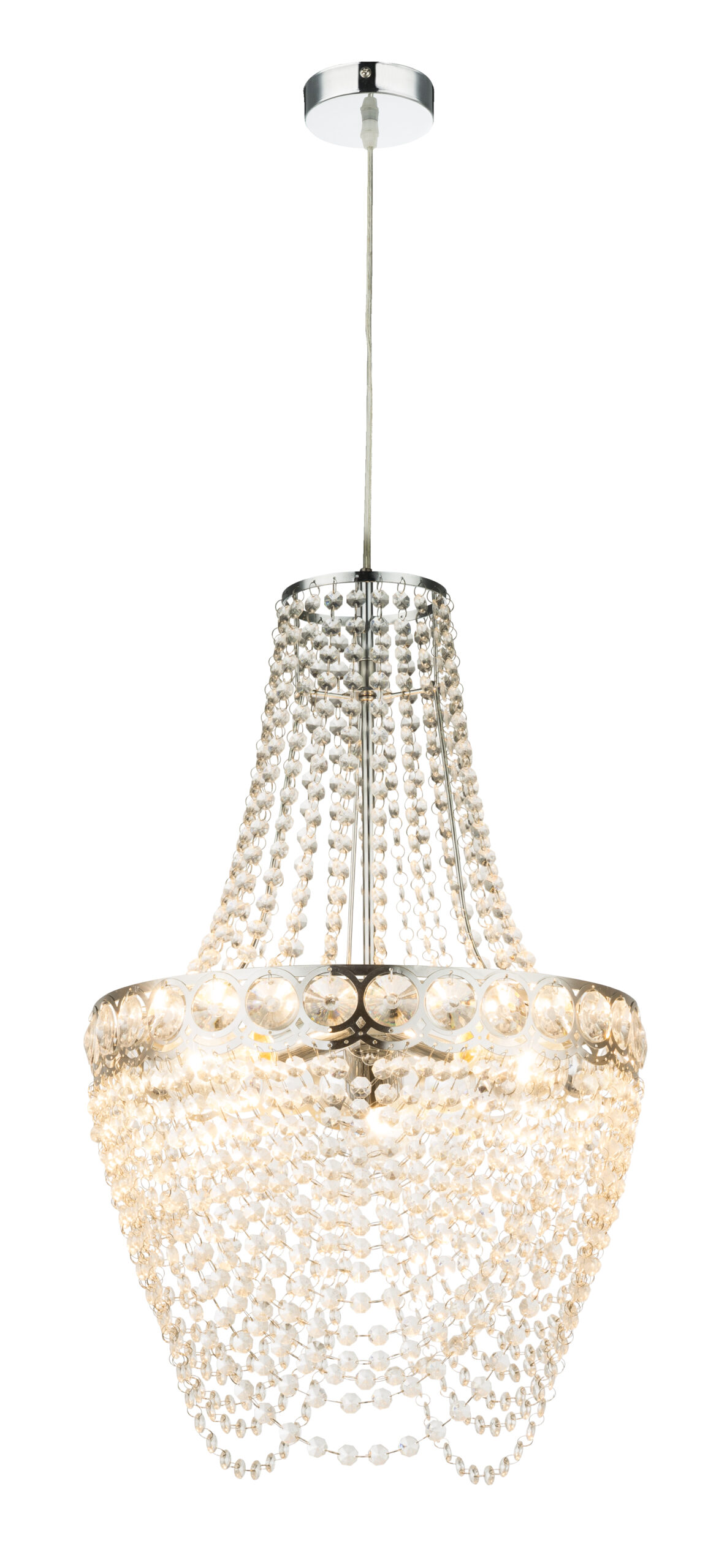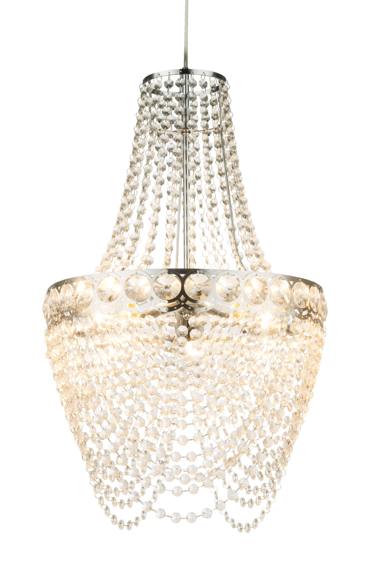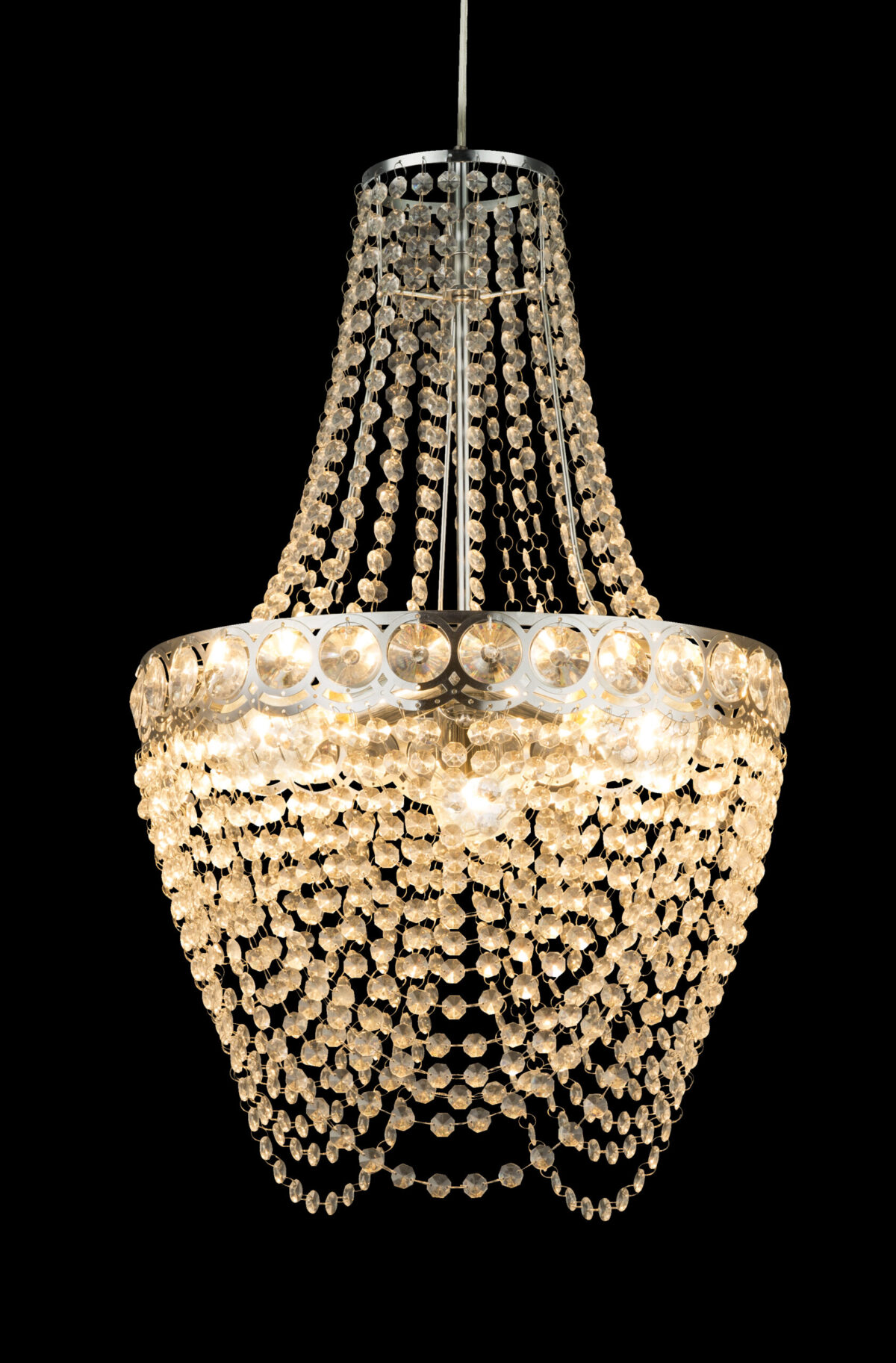 Ovaj prelepi luster u hromu, serija Stromboli, odlikuje se svojim upadljivim dizajnom, kao i visokom kvalitetom izrade. Za ovu viseću lampu odabrani su prozirni akrilni kristali. Sa prečnikom od 38 cm, ova impozantna viseća lampa privlači poglede u svakoj prostoriji. Opremljen sa tri E27 utičnice, nudi vam se mogućnost korištenja bilo kojeg izvora svjetlosti (maks. 60W). Preporučujemo LED sijalice, zbog njihove dugovečnosti i uštede energije.