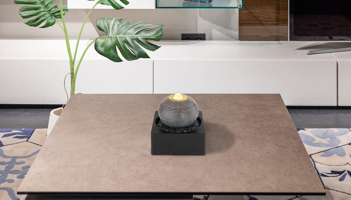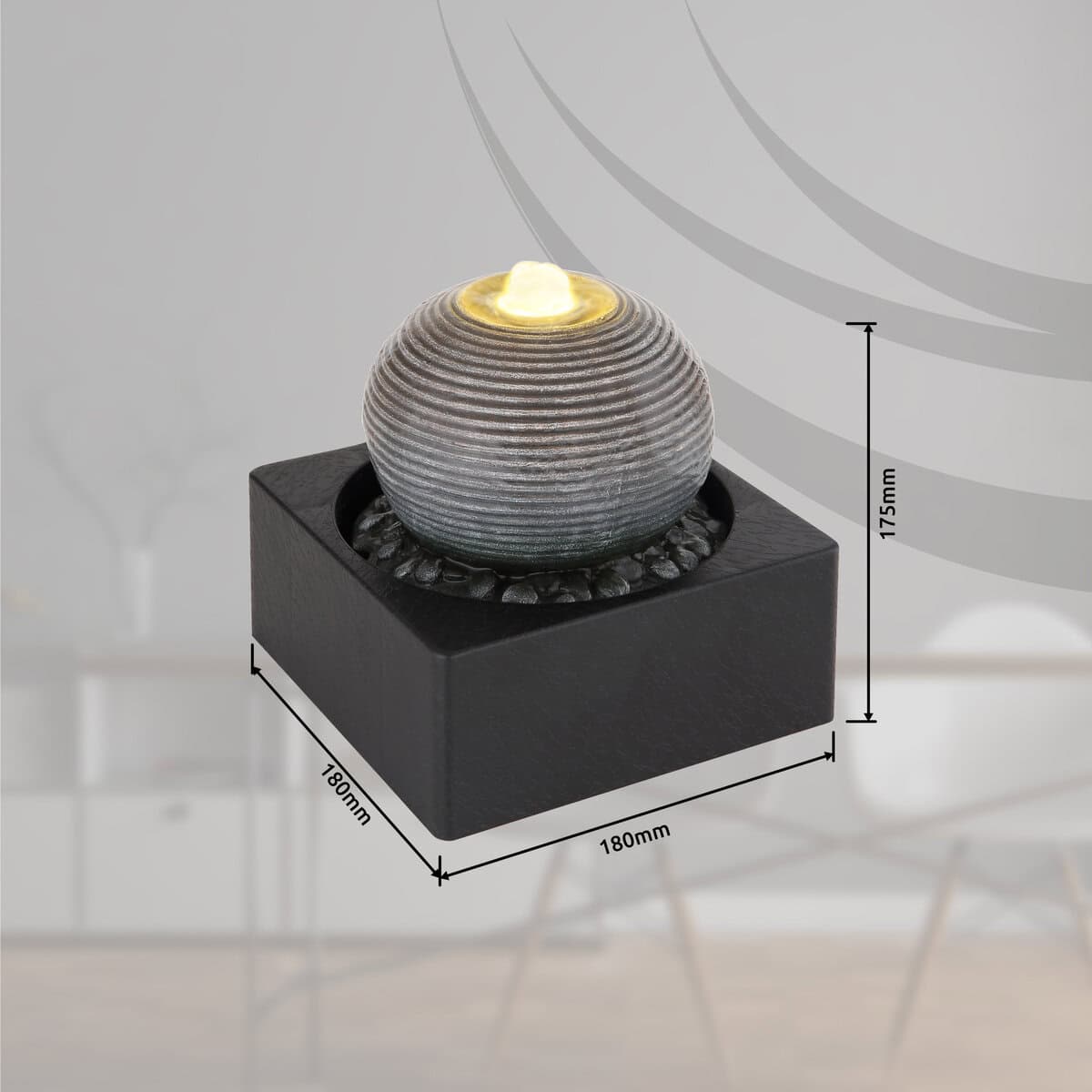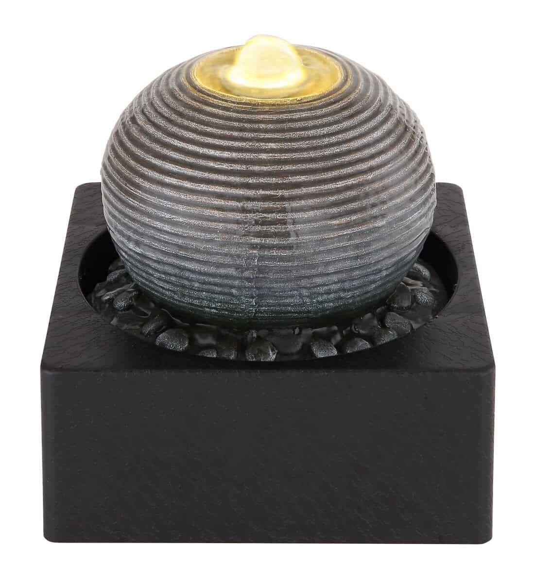 Ova dekorativna stolna lampa serije Fontana oduševljava svojim mističnim dizajnom i stvara ugodnu atmosferu kroz zvukove vode. Voda mjehuriće kroz kuglicu do vrha pomoću integrirane pumpe i ponovo teče iz otvora. Fontana takođe uključuje prijatnu toplu belu LED sijalicu (3000 Kelvina) i kabl dužine 1,5m.