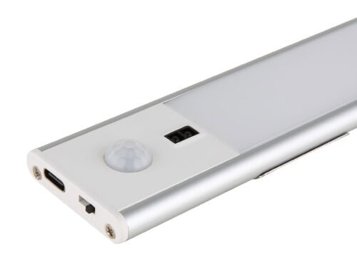 Ravna, pravougaona svetiljka TRISTAN od aluminijuma srebrne boje kombinuje tehnički dizajn sa praktičnom funkcionalnošću. Njegovo tijelo izrađeno od mat srebrnog aluminija i bijele plastike savršeno se uklapa u moderno okruženje. Opalni plastični sjenilo osigurava ujednačenu distribuciju svjetlosti pri temperaturi boje od 4000 Kelvina i svjetlosnom toku od 190 lumena. Ovo svjetlo ispod ormarića ima integriran detektor pokreta i dolazi s dva nosača sa 3M trakom za montažu na zid, kao i magnetom za pričvršćivanje na metalne površine. Osvetljenost se može kontrolisati jednostavnim pomeranjem ruke, a boje se mogu popraviti. Dimer na dodir omogućava kontinuirano prigušivanje svjetla. USB kabel za punjenje je uključen, vrijeme punjenja je oko 6 sati, dok se lampa može koristiti do 4 sata. Može se koristiti čak i tokom punjenja, što naglašava njegovu svestranost.