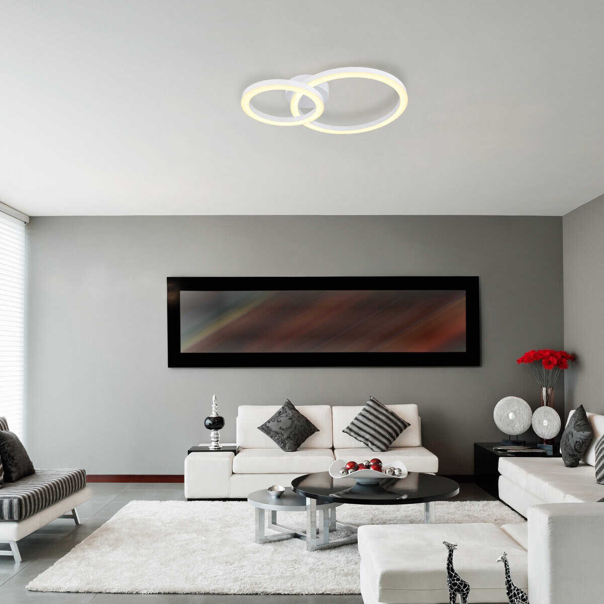 Plafonska lampa je izrađena od metala u bijelom mat i plastike u bijelom mat i opal. Ima dimenziju DxŠxV: 420x300x70mm i prečnik prstena 1 x 20 cm i 1 x 30 cm. Svetiljka ima LED snage 15W i napona 230V, koji daje izvor svjetlosti od 1750lm izvora i 980lm izlazne temperature pri temperaturi boje od 3000K. Nadamo se da ćete biti zadovoljni ovom plafonskom lampom.