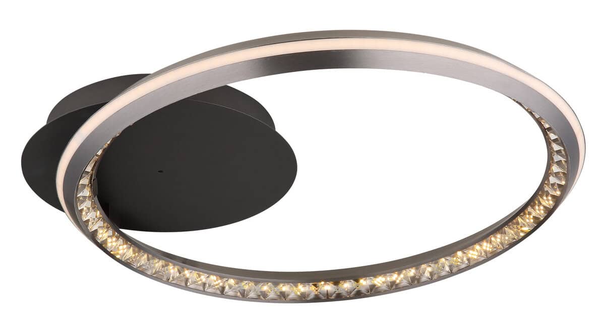 ALAINA plafonska lampa kombinuje moderan dizajn sa najsavremenijom tehnologijom i biće vrhunac u svakoj prostoriji. Elegantan prsten od K9 kristala daje lampi luksuzni štih, dok mat sivo metalno tijelo i mat aluminijski sjenilo stvaraju bezvremensku estetiku. Opalenski silikon osigurava ravnomjernu i ugodnu distribuciju svjetlosti. Sa priloženim daljinskim upravljačem, možete fleksibilno podesiti svjetlinu i boju svjetla – od toplog 2700 K do hladnih 6000 K. ALAINA plafonska lampa nudi impresivan izlaz svjetlosti od 1500 lumena i uvjerava svojom funkcijom zatamnjivanja i mogućnošću fiksiranja boja. Ugrađena memorijska funkcija čuva željena podešavanja, dok noćno svjetlo pruža blago osvjetljenje. S veličinom od D:530mm i Š:500mm, ALAINA predstavlja prednost vašeg doma i funkcionalno i estetski.