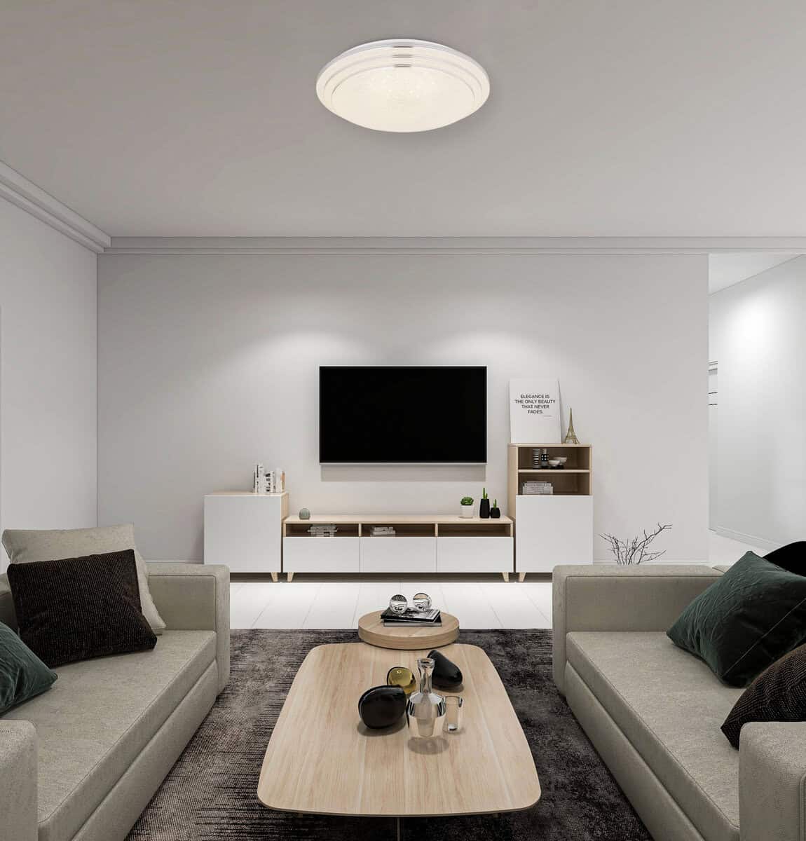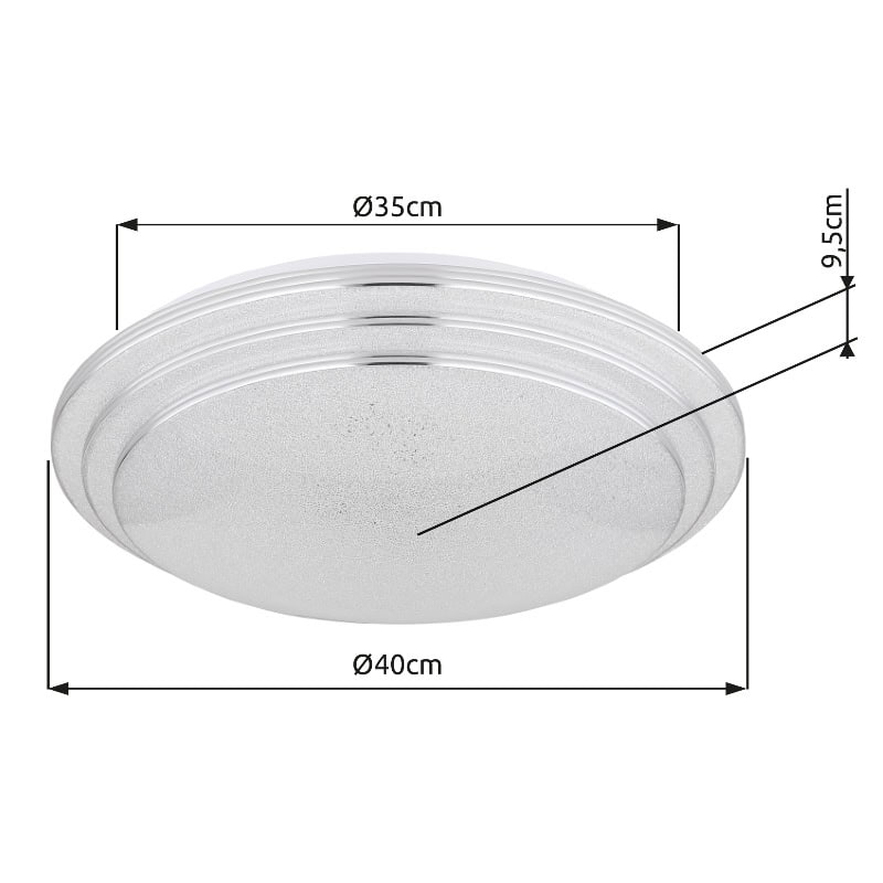 Prekrasna okrugla stropna svjetiljka (Ø40cm) iz serije Aley inspirira prekrasnim dizajnom i funkcijom. LED sijalica se nalazi unutar plafonske lampe i može se zatamniti i učvrstiti u bojama od 2700 Kelvina toplo bela do 6500 Kelvina hladno bela. Osim toga, svjetiljka ima memorijsku funkciju i može se prebaciti pomoću priloženog daljinskog upravljača.