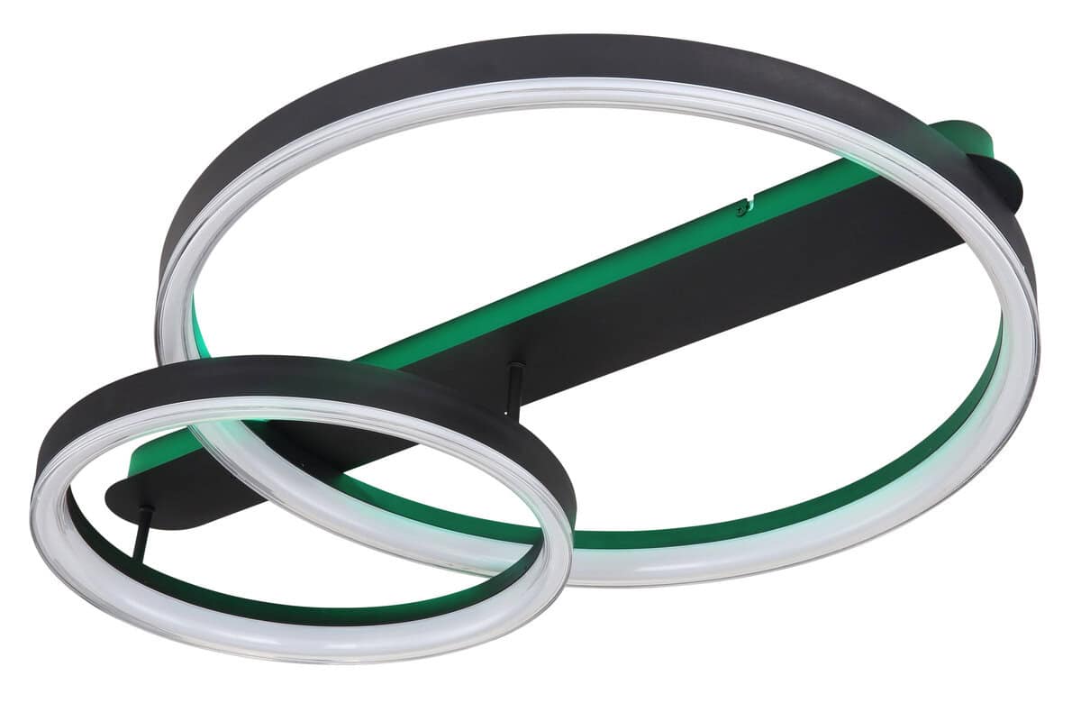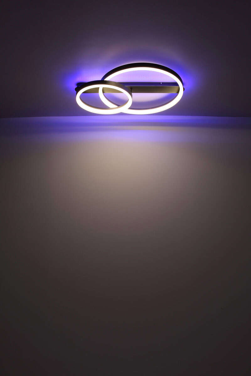 Ova moderna plafonska lampa serije AUGUSTO impresionira odličnim dizajnom i funkcijama. Na plafonskom nosaču dužine 82,5 cm nalaze se dva okrugla LED panela različite veličine koji emituju toplo bijelo svjetlo od 2700 Kelvina do 6000 Kelvina hladno bijelo svjetlo i mogu se prigušiti i fiksirati u ovim svjetlosnim vrijednostima. Pomoću priloženog daljinskog upravljača možete koristiti režim noćnog svjetla za ugodnu atmosferu ili sačuvati posljednje korištene postavke nakon gašenja lampe koristeći memorijsku funkciju. Vrhunac ove lampe je crveni, zeleni i plavi način rada, koji pruža različite trenutke.