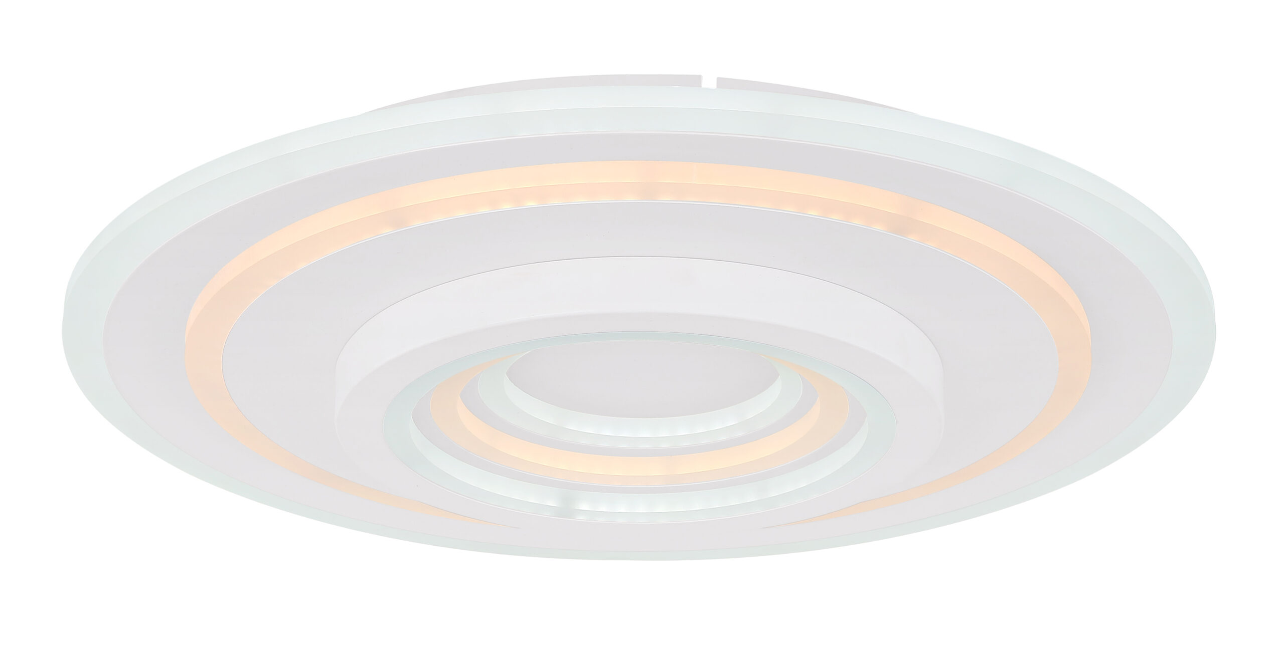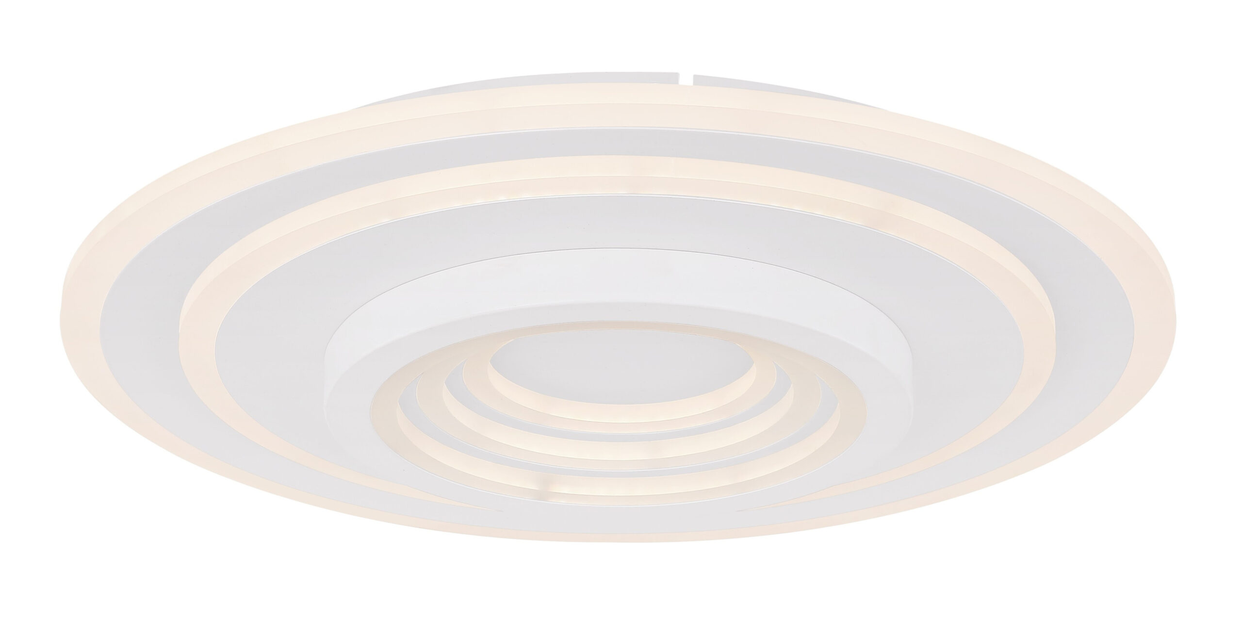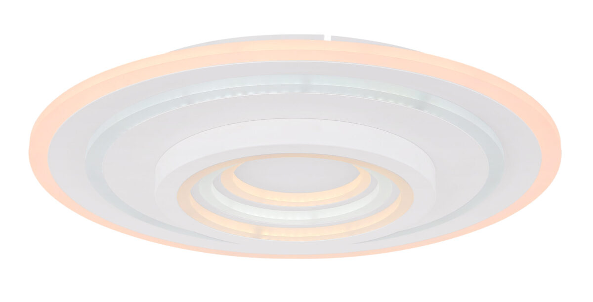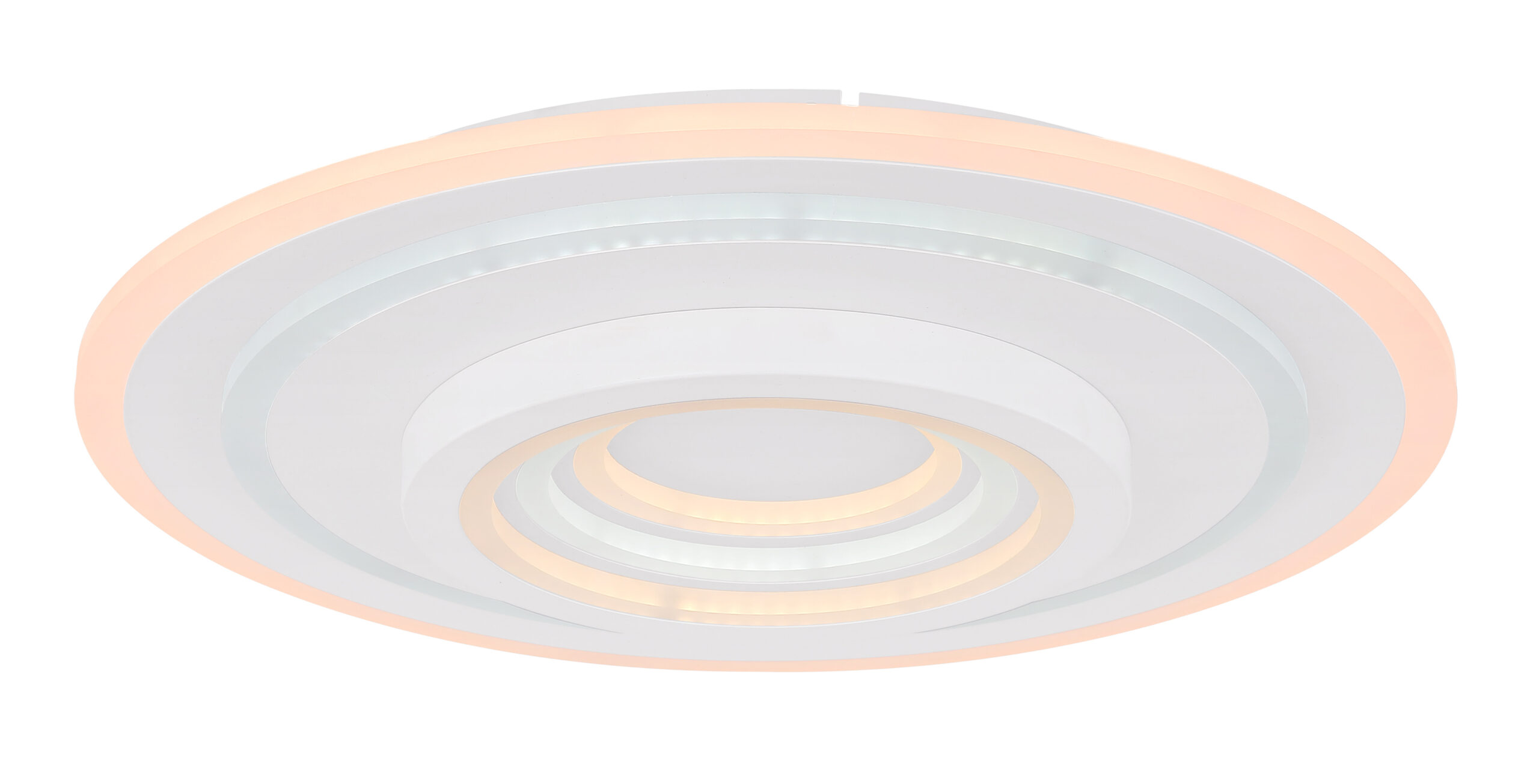Moderna plafonska lampa BAFUR Ø 49,5 cm) izrađena je od bijelog metala i akrilnog stakla. Ovim unutrašnjim svjetlom koje se može prigušiti može se upravljati daljinskim upravljačem. Svjetlosni prstenovi različite veličine ove lampe sijaju u različitim svjetlosnim bojama. Ova elegantna plafonska lampa sa integrisanom LED sijalicom od 50 W pruža maksimalno 2190 lumena jakog svetla. Boja svjetla može se regulirati i fiksirati od prijatne toplo-bijele 3000 Kelvina do hladno bijele 6000 Kelvina. Ova lampa pogodna za spavaću, dječju, dnevnu i blagovaonicu ima memorijsku funkciju.