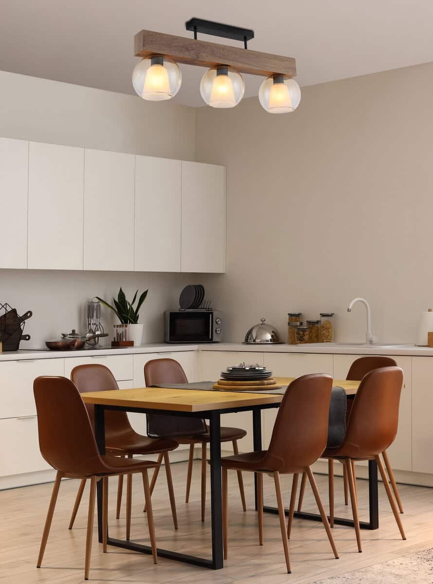Barry I stropna lampa uvjerava svojim bezvremenskim vintage dizajnom i nesumnjivo će postati vrhunac u svakoj prostoriji. Sa svojim ravnim oblikom šipke i tri pravougaone čaše, unosi dašak elegancije u vaš dom. Mat crno metalno tijelo i MDF s efektom tamnog drveta stvaraju skladnu kombinaciju modernih i klasičnih elemenata. Sjenila od ćilibara i prozirnog stakla ne samo da stvaraju elegantan izlaz svjetla, već i daju lampi poseban šarm. Prozirni stakleni kristali postavljaju dodatne akcente i pružaju blistavu refleksiju svjetlosti. Opremljena unutrašnjim sočivima, sočiva nude dodatnu zaštitu i poboljšanu distribuciju svjetlosti. Barry I plafonska lampa zahteva grlo E27 (osim E27), što vam daje priliku da odaberete pravu sijalicu za stvaranje prijatne atmosfere. Idealno za dnevne i trpezarijske prostore!