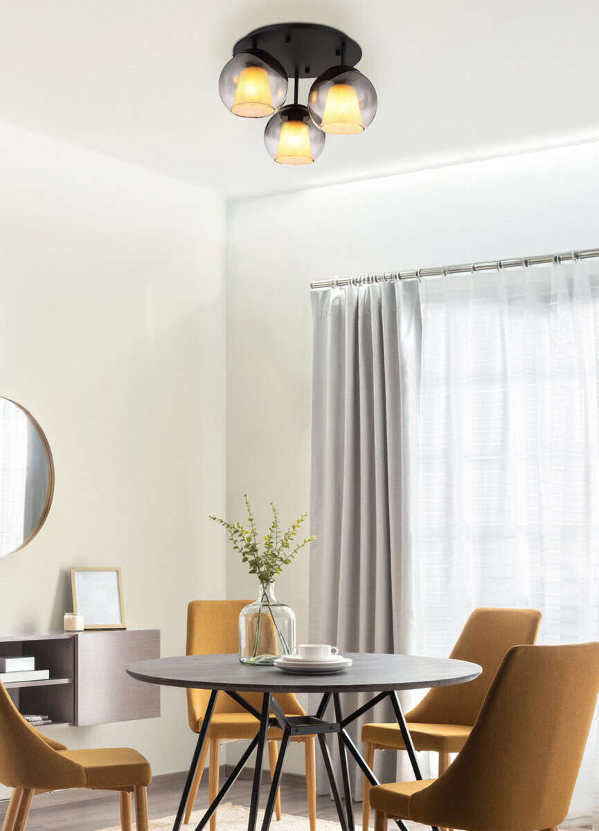 Okrugla plafonska lampa BARRY sa tri staklene kugle je moderan dodatak svakoj prostoriji. Sa prečnikom od 410 mm, obezbeđuje izdašnu distribuciju svetlosti. Telo od mat crnog lakiranog metala u kombinaciji sa zadimljenim, prozirnim staklenim sferama sa gradijentnim dizajnom stvara modernu atmosferu. Akcenti od kristalnog stakla u unutrašnjosti donose blistave refleksije svjetlosti u vaš životni prostor. E27 grlo vam omogućava da koristite različite sijalice, tako da možete podesiti osvetljenje po želji. Idealna za dnevne i trpezarijske prostore, BARRY plafonska lampa stvara privlačne trenutke svetla.