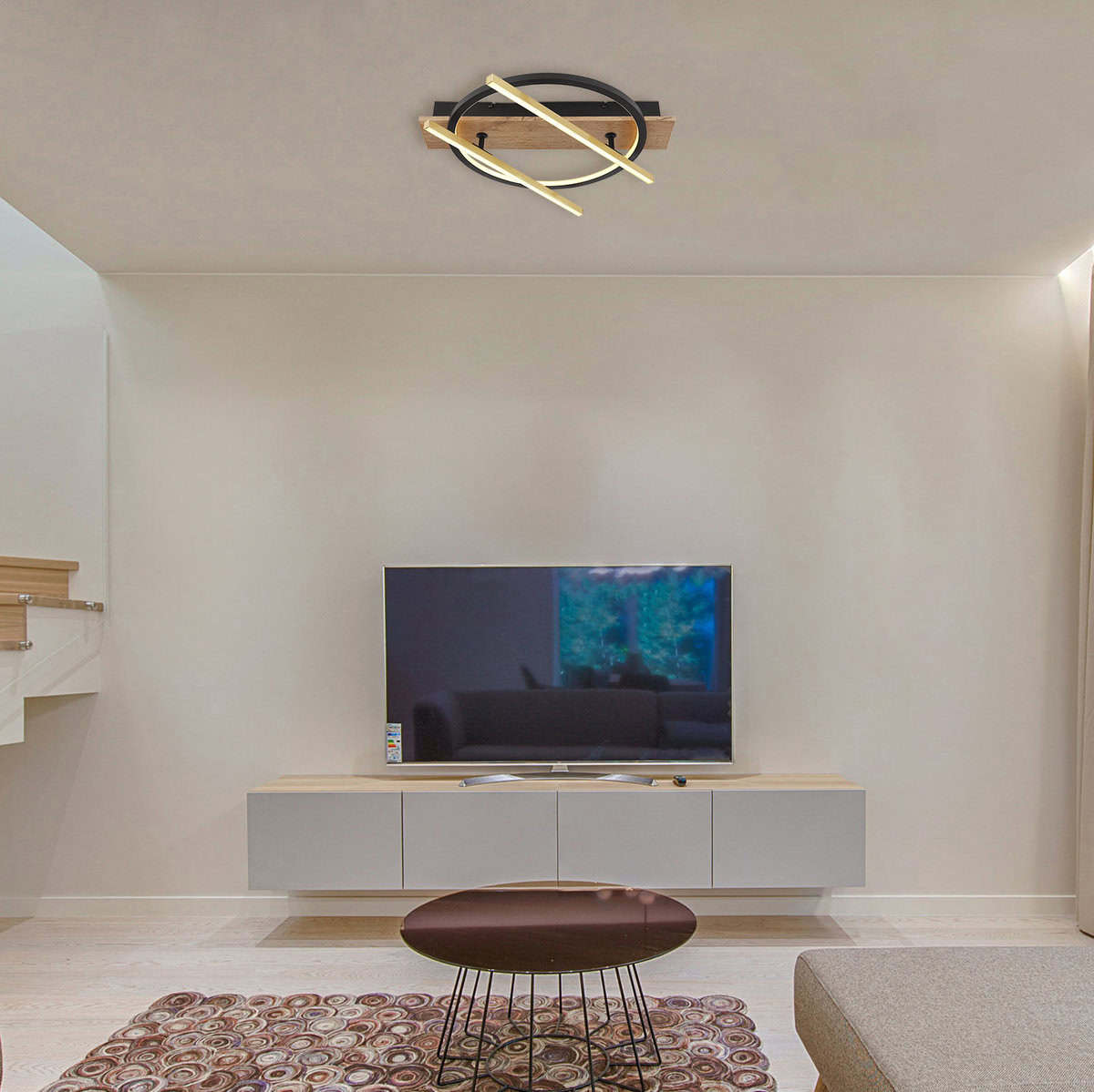 Uronite u fascinantan svijet BEATRIX plafonske svjetiljke. Njegov mat crni metalni ormarić, u kombinaciji sa detaljima od tamnog MDF drveta i aluminijumskim šipkama u boji mesinga, dodaće dašak luksuza i elegancije vašoj sobi. Kombinacija mat crnog aluminija i opal plastike stvara meko svjetlo bez odsjaja koje stvara ugodnu atmosferu. Svojom jedinstvenom funkcijom preko zidnog prekidača možete podesiti osvjetljenje u nekoliko faza. BEATRIX ima memorijsku funkciju, može se rotirati i okretati i nudi 3 nivoa: 1. samo štapovi su osvijetljeni, 2. samo unutrašnji okvir je osvijetljen, 3. oba zajedno. Sa dimenzijama 440x400x90mm i dužinom štapa od 40 cm, BEATRIX se savršeno uklapa u svaku prostoriju. Svetiljka je opremljena snažnim LED rasvjetnim sistemom koji troši 32W, proizvodi 3300lm izvor i 1300lm izlaz. Uživajte u toploj i prijatnoj atmosferi sa temperaturom boje od 3000K. BEATRIX je savršen izbor za sofisticiran dizajn rasvjete i daje vašem domu neuporediv dodir.