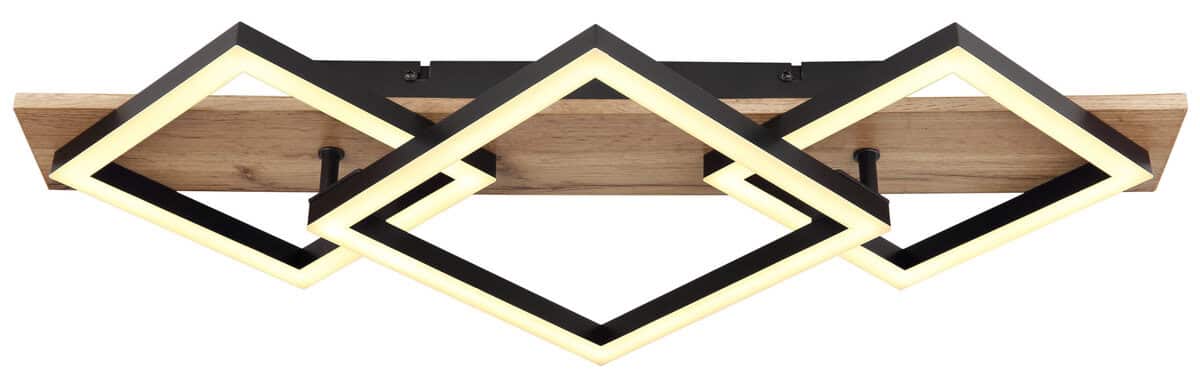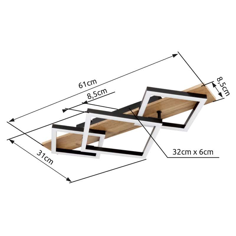 Uronite u sofisticirani ambijent BEATRIX plafonske lampe. Njegov mat crni metalni ormarić u kombinaciji sa detaljima u izgledu tamnog MDF drveta daje vašoj sobi modernu i istovremeno toplu atmosferu. Mješavina mat crne plastike i opal plastike pruža meko i istovremeno jako svjetlo koje obasjava prostoriju. Sa dimenzijama od 610x310x85mm, BEATRIX je impresivno privlačan za oči i može se instalirati bez napora. Svetiljka je opremljena snažnim LED rasvjetnim sistemom koji troši 24W, proizvodi 2670lm izvor i 1400lm izlaz. Doživite ugodnu atmosferu s toplom bijelom temperaturom boje od 3000K. BEATRIX je savršen dodatak da vaša soba zablista sa stilom i sjajem.