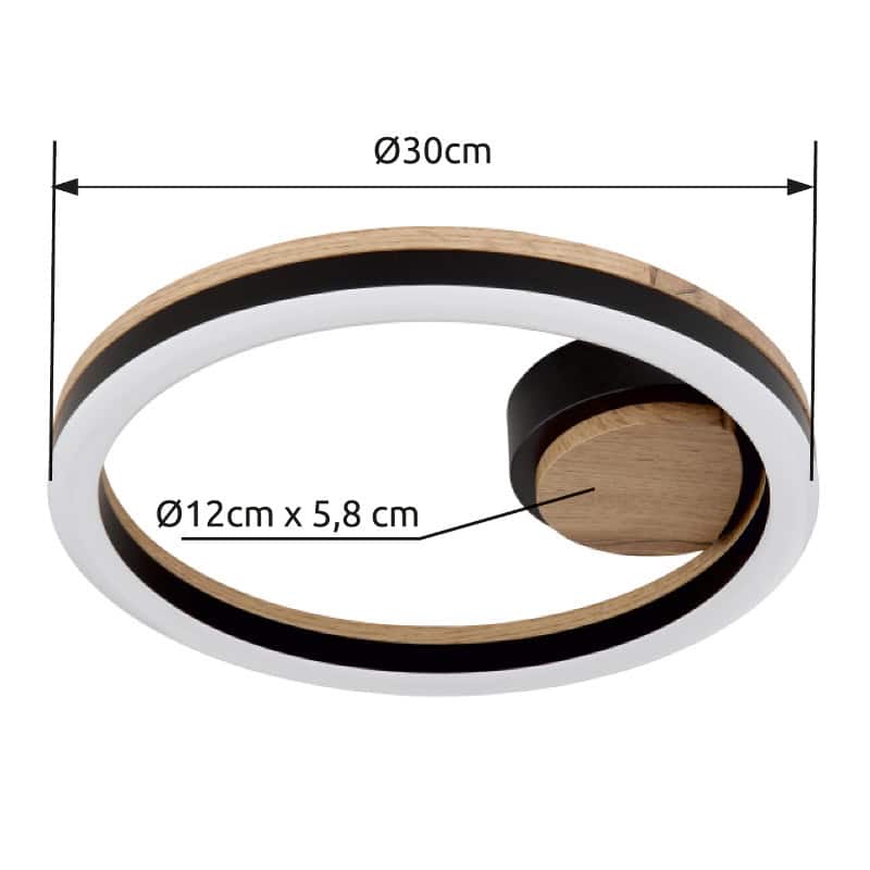 Uronite u stilski svijet BEATRIX plafonske svjetiljke. Mat crni lakirani metalni ormarić u kombinaciji sa efektom tamnog MDF drveta će vašoj sobi dodati dašak elegancije i topline. Kombinacija mat crne i opal plastike stvara meko, difuzno svjetlo koje stvara ugodnu atmosferu. Sa prečnikom od 300 mm i visinom od 58 mm, BEATRIX je impresivan element dizajna. Svetiljka je opremljena energetski efikasnim LED rasvjetnim sistemom od 12W koji proizvodi izvor svjetlosti od 1350 lm i svjetlosnu efikasnost od 600 lm. Uživajte u toploj, prijatnoj svetlosti sa temperaturom boje od 3000K. BEATRIX je idealan izbor da osvijetlite svoju sobu sa stilom i stvorite ugodnu atmosferu.