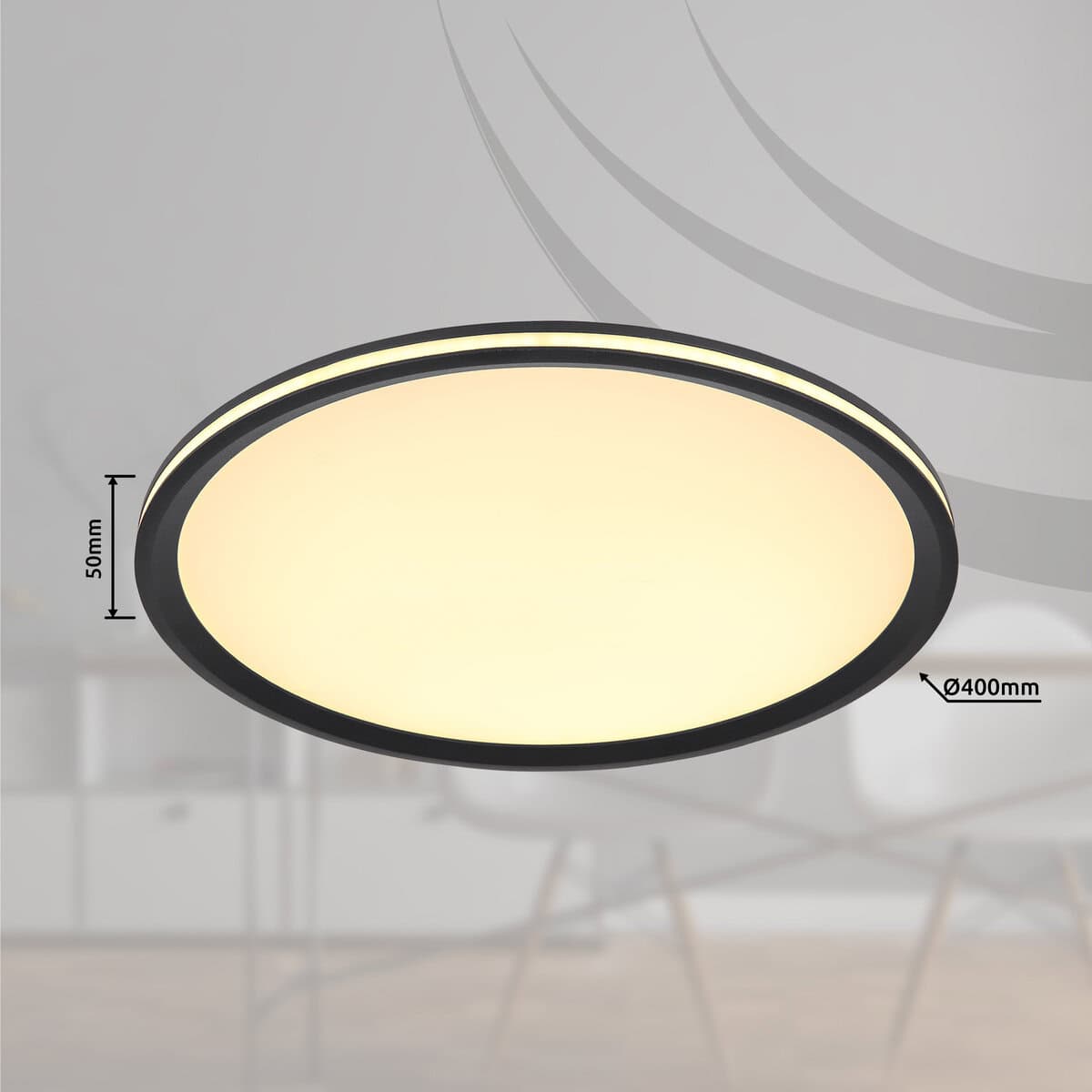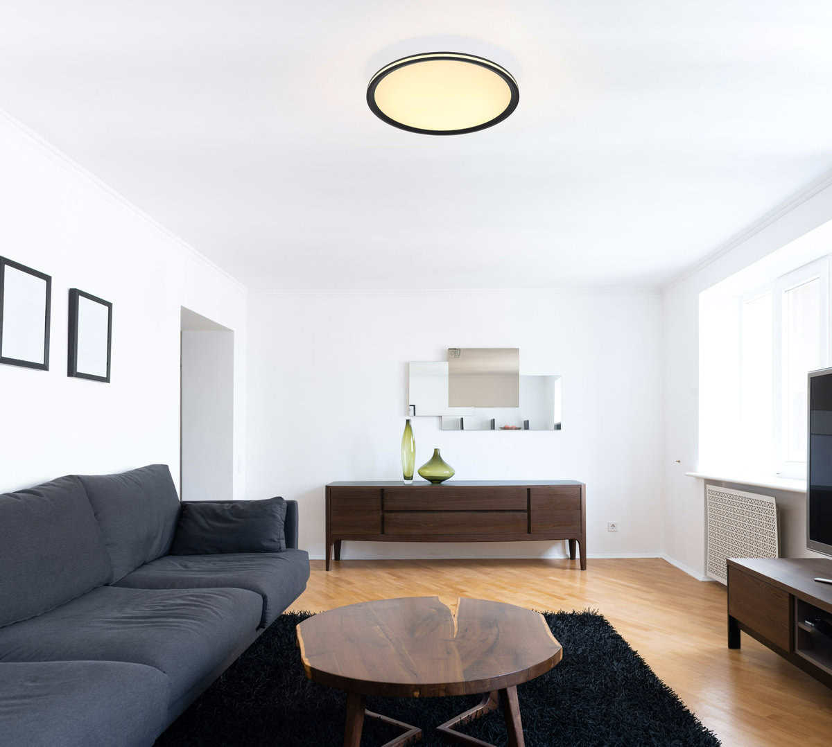 Otkrijte fascinantnu plafonsku lampu BELISSA i doživite novu dimenziju osvetljenja. Mat crno lakirano metalno kućište u kombinaciji sa opal plastikom i mat crnim aluminijumom stvara toplo svetlo bez odsjaja koje uranja vašu sobu u ugodan ambijent. Praktična funkcija preko zidnog prekidača omogućava podešavanje osvjetljenja u različitim fazama – od glavnog izvora svjetlosti do bočnih LED dioda u okviru i kombinacije oba izvora svjetlosti. Zahvaljujući funkciji inteligentne memorije, možete zadržati željena podešavanja. Sa prečnikom od 400 mm i visinom od 50 mm, BELISSA se harmonično uklapa u svaku prostoriju. Svetiljka je opremljena snažnim LED rasvjetnim sistemom od 39W koji proizvodi izvor svjetlosti od 4500 lm i svjetlosnu efikasnost od 1600 lm. Uživajte u toploj i privlačnoj svjetlosti s temperaturom boje od 3000K. BELISSA je idealan izbor za impresivan dizajn rasvjete i dodati će dašak elegancije vašem domu.