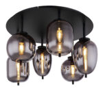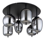 Ova sjajna plafonska lampa iz serije Blacky inspiriše svojim prekrasnim dizajnom. Po šest utičnica E14 smješteno je ispod zadimljenog stakla u različitim oblicima, koje vise sa crnih mat šipki na postolju 38 cm od stropa. E14 grla vam omogućavaju da slobodno birate, do maksimalne snage od 40 vati, svoje sijalice.