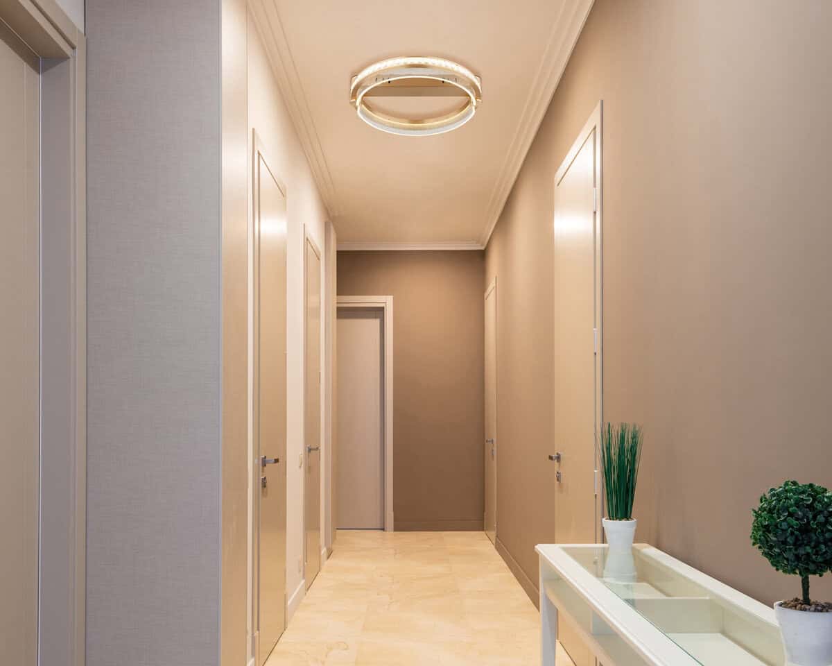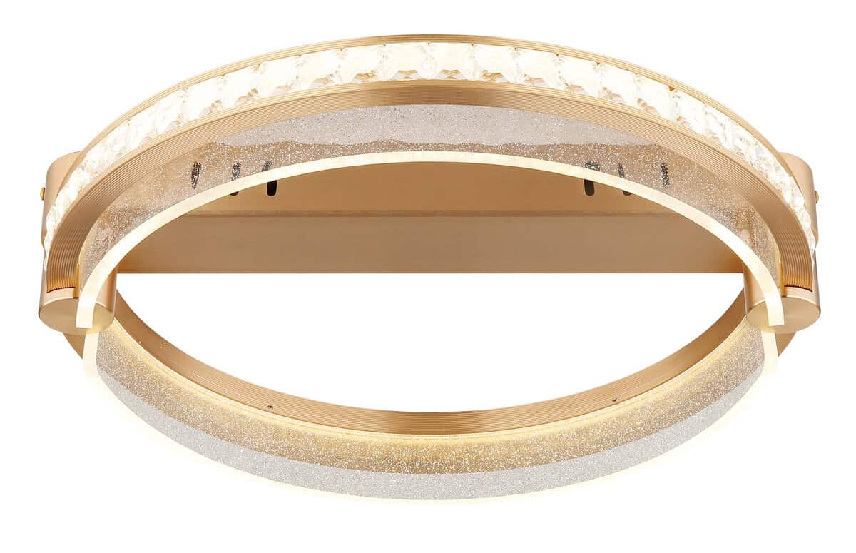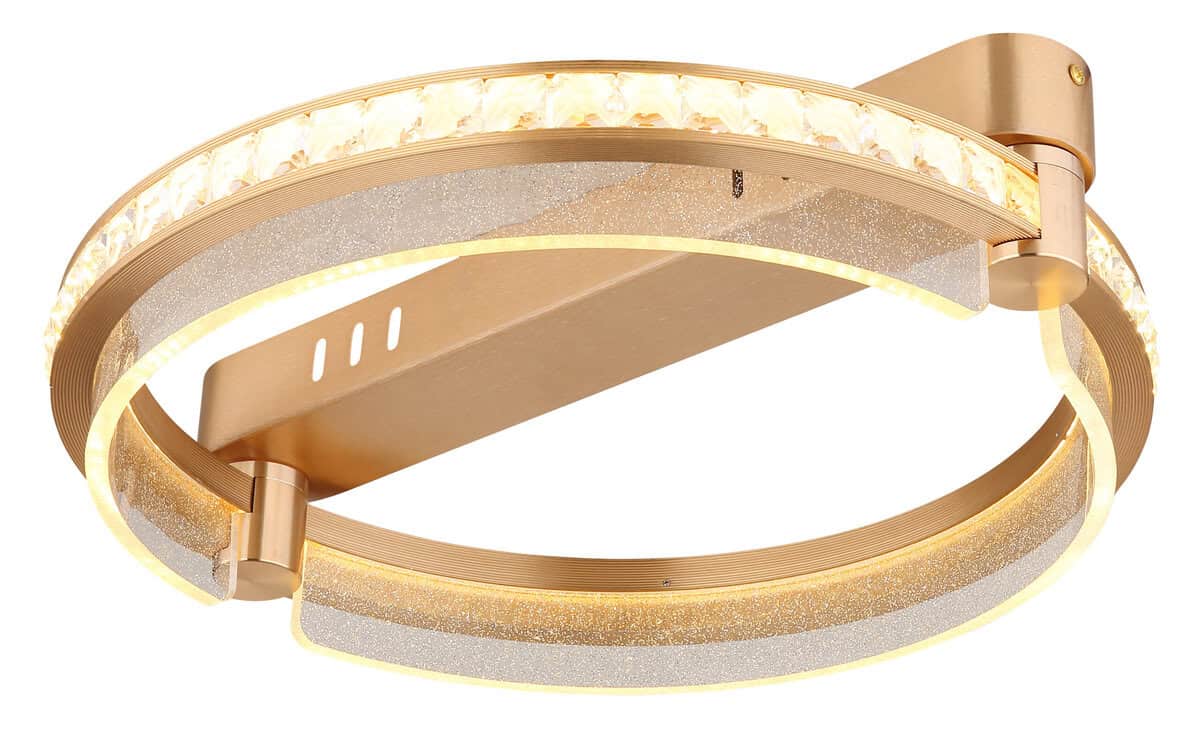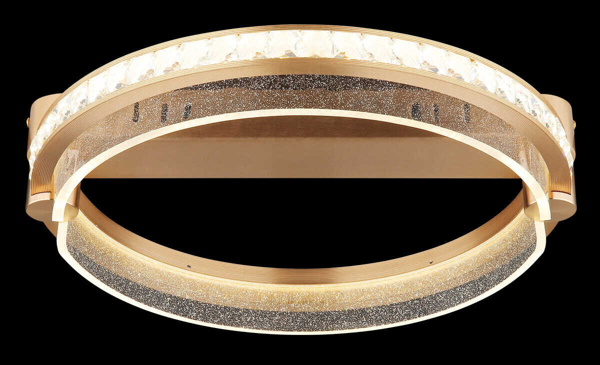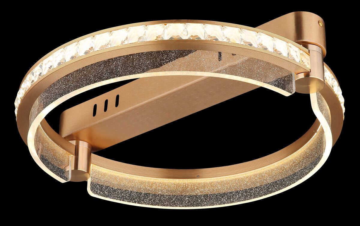 Okrugla plafonska lampa u obliku prstena BLONDIE je apsolutna privlačnost u svakoj prostoriji. Svojim plemenitim dizajnom i visokokvalitetnim materijalima, vašem će domu dodati dašak luksuza i elegancije. Telo plafonske lampe je napravljeno od aluminijuma zlatne boje, koji je brušen i tako ima suptilan sjaj. Sjenilo je napravljeno od prozirnih K5 kristala i prozirnog akrila, koji pruža impresivno prelamanje svjetlosti. Pomoću priloženog daljinskog upravljača možete lako upravljati svjetlom. Može se zatamniti, tako da možete individualno podesiti svjetlinu. Osim toga, možete popraviti svoju omiljenu boju, a integrirana memorijska funkcija čuva vaše postavke. BLONDIE plafonska lampa ima prečnik od 400 mm i jačinu lumena od 2000. Sa CCT od 2700K do 6000K, daje vam raznovrsno podesivo osvetljenje. Sa plafonskom lampom BLONDIE možete se osloniti na jedinstven dizajn i visoku kvalitetu izrade. Uronite svoj dom u ugodno, atmosfersko svjetlo i uživajte u luksuznoj atmosferi koju ova svjetiljka stvara.