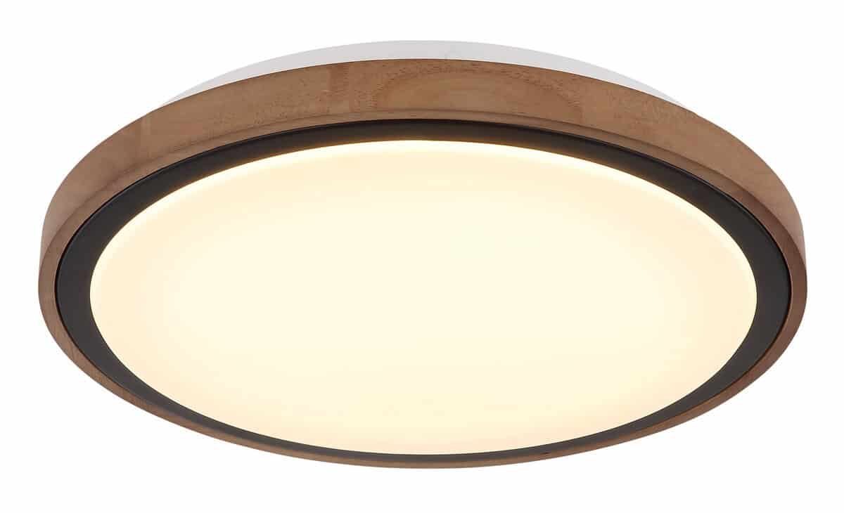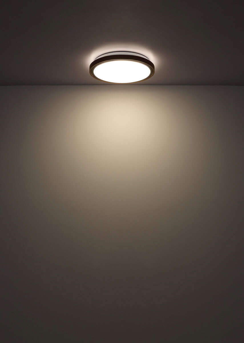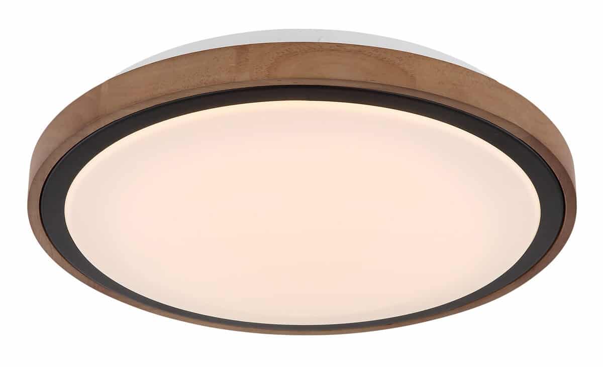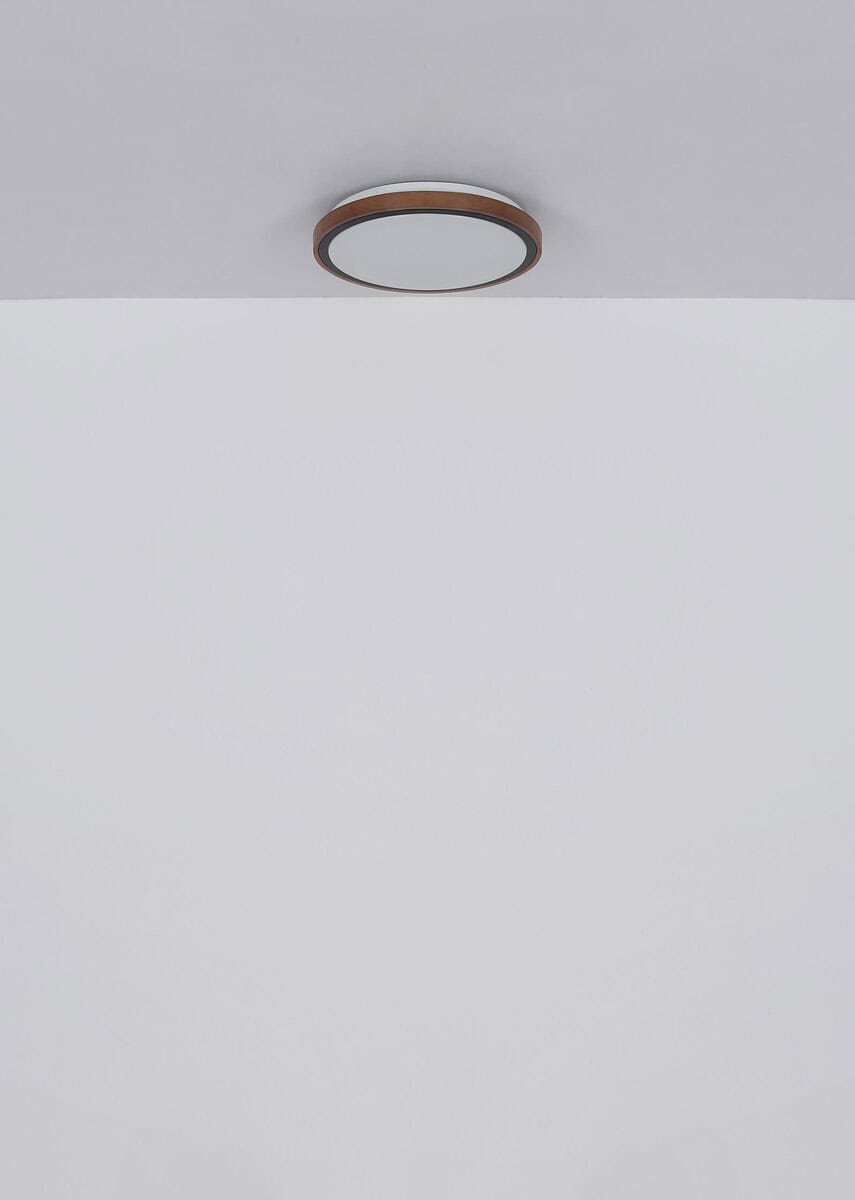 BRUNO plafonska lampa kombinuje moderan dizajn sa prirodnom elegancijom. Njegov okrugli sjenilo promjera 380 mm okružen je drvenim okvirom koji daje topli akcenat. Kućište izrađeno od mat crnog metala i smeđeg drveta daje lampi privlačan estetski izgled. Sjenilo je izrađeno od opalnog akrilnog stakla, uramljeno u mat crni aluminijumski prsten. Pomoću prekidača za slavinu i kliznog prekidača za funkciju memorije možete podesiti svjetlinu i boju svjetla po potrebi. BRUNO plafonska lampa nudi snagu od 671 lumena i omogućava beskonačno podešavanje temperature svetlosti od 3000 K do 6000 K. Ovo vam omogućava da prilagodite atmosferu osvetljenja u vašoj sobi. Ova plafonska lampa je savršen izbor za dnevne sobe, spavaće sobe ili hodnike, dodajući udoban i moderan štih svakoj prostoriji.