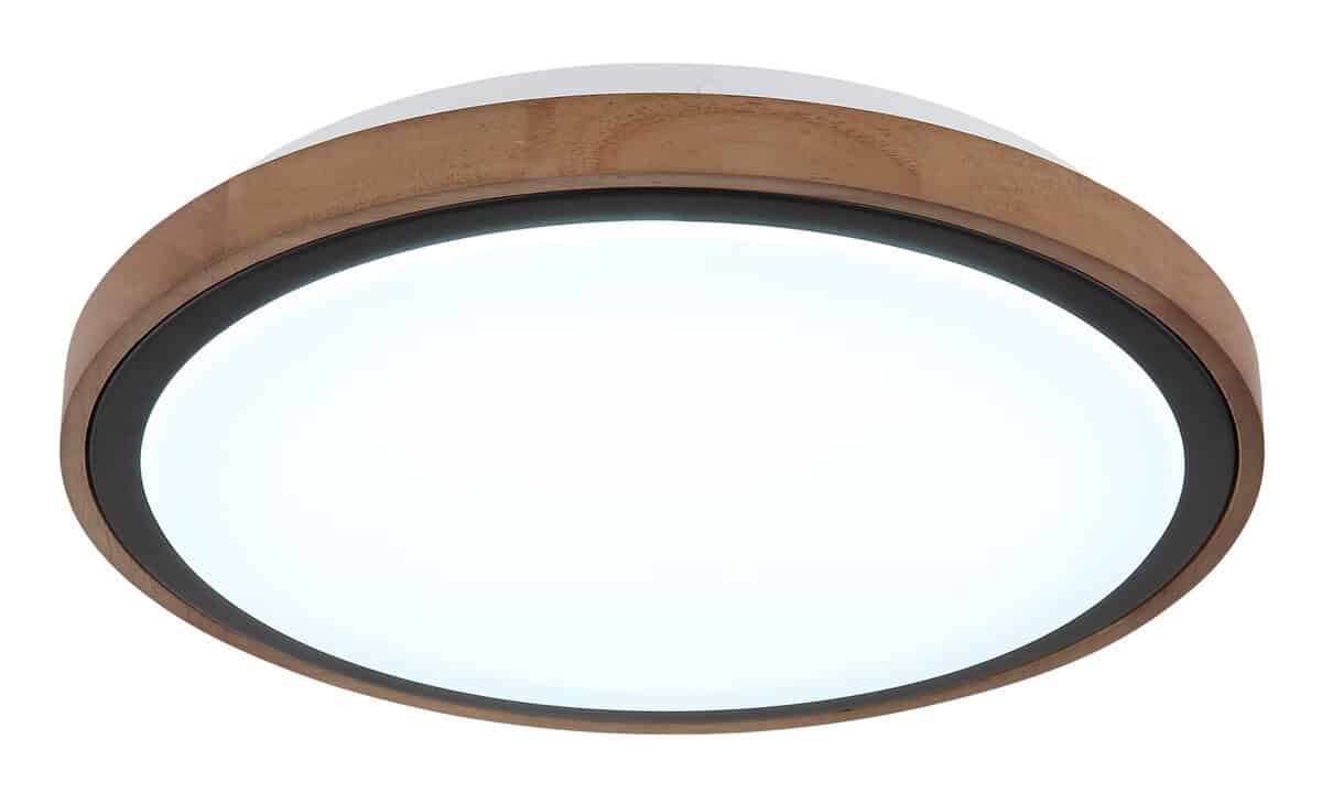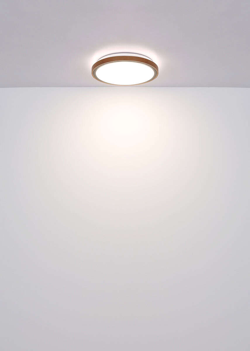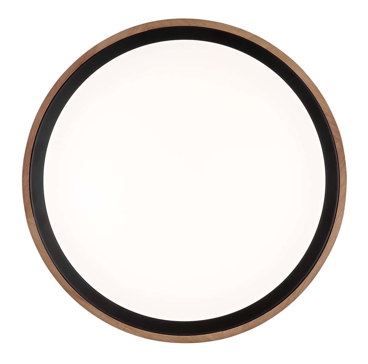 BRUNO plafonska lampa kombinuje moderan dizajn sa prirodnom elegancijom. Njegov okrugli sjenilo promjera 380 mm okružen je drvenim okvirom koji daje topli akcenat. Kućište izrađeno od mat crnog metala i smeđeg drveta daje lampi privlačan estetski izgled. Sjenilo je izrađeno od opalnog akrilnog stakla, uramljeno u mat crni aluminijumski prsten. Pomoću prekidača za slavinu i kliznog prekidača za funkciju memorije možete podesiti svjetlinu i boju svjetla po potrebi. BRUNO plafonska lampa nudi snagu od 671 lumena i omogućava beskonačno podešavanje temperature svetlosti od 3000 K do 6000 K. Ovo vam omogućava da prilagodite atmosferu osvetljenja u vašoj sobi. Ova plafonska lampa je savršen izbor za dnevne sobe, spavaće sobe ili hodnike, dodajući udoban i moderan štih svakoj prostoriji.