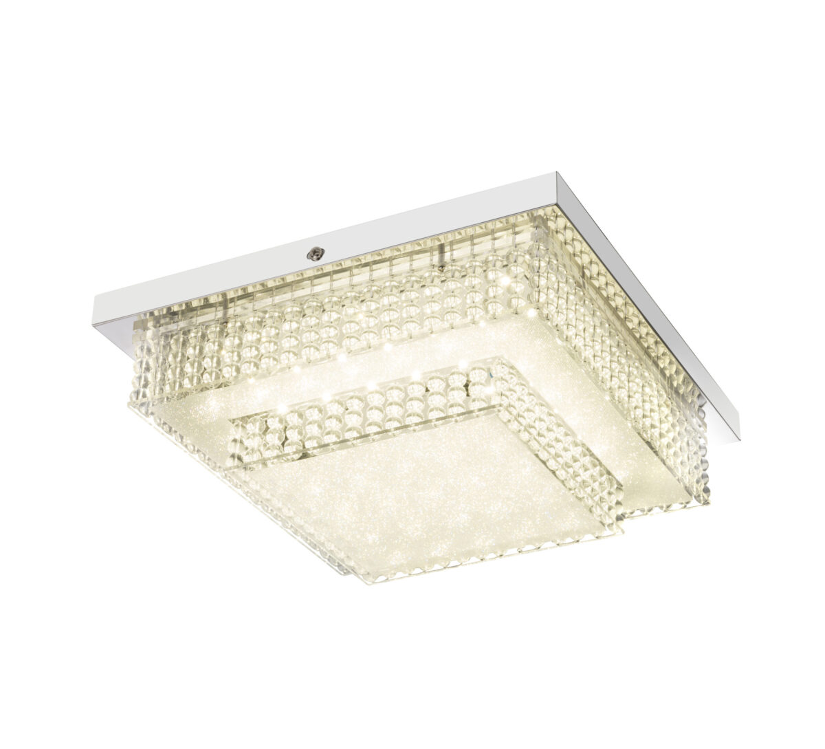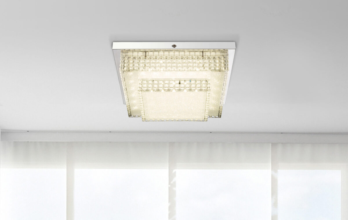 Ova impozantna, kvadratna plafonska lampa (28 x 28 cm), serija lampi Cake I, ističe se svojim impresivnim izgledom. Ova lampa sa efektnim filmom ima prekrasan kristalni efekat i pruža 1410 lumena jakog svjetla s ugodnom neutralnom bijelom bojom svjetlosti zahvaljujući integriranoj LED sijalici od 16 W. Ovo unutrašnje svjetlo može se idealno integrirati u svaku prostoriju. Uz ostale veće plafonske lampe ove serije možete upotpuniti sliku u svojoj dnevnoj sobi.