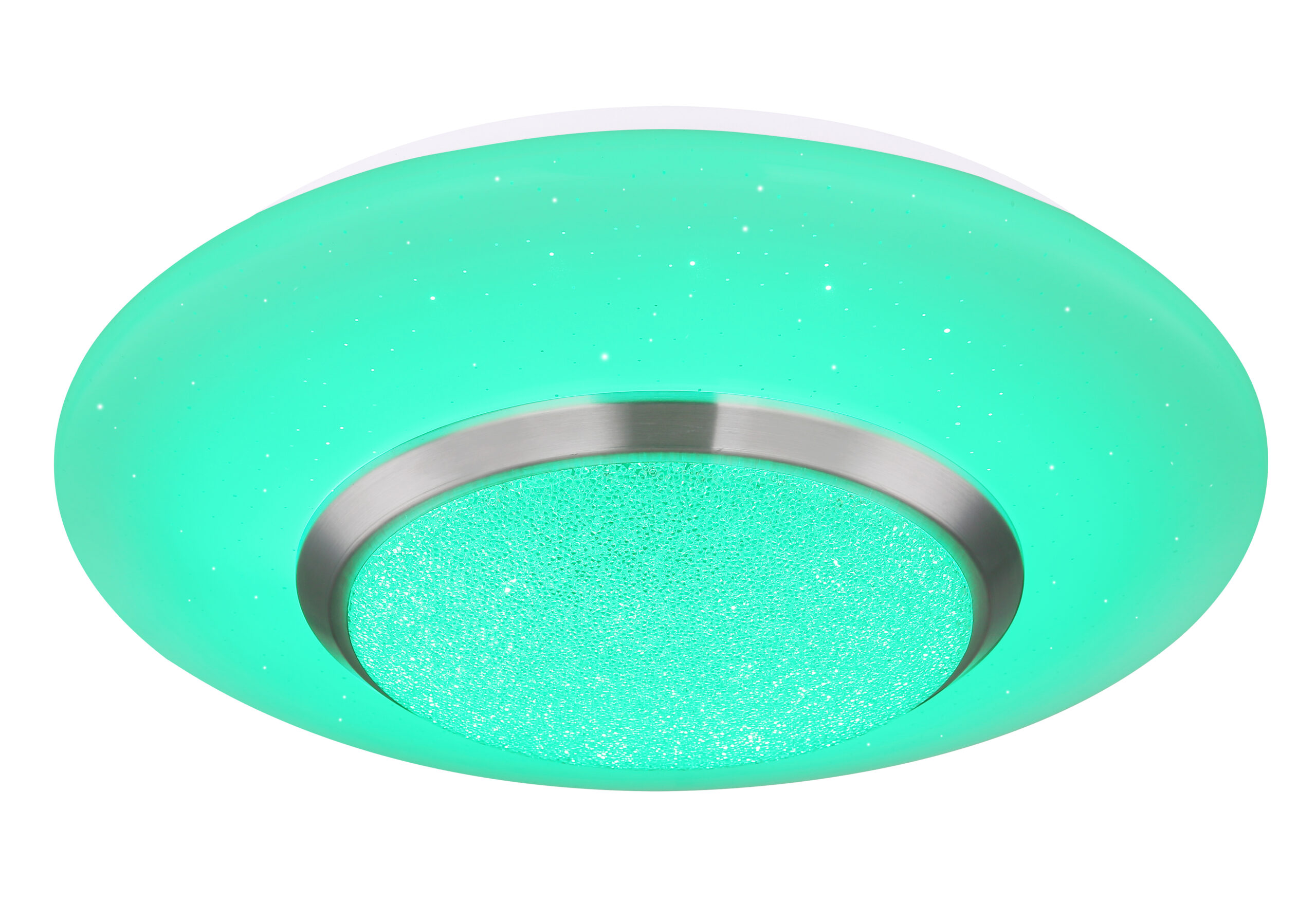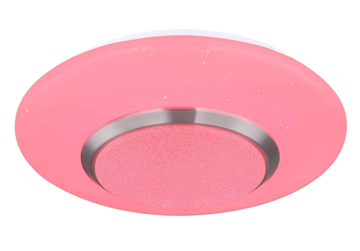 Ova prekrasna, okrugla plafonska lampa (34 cm) CANDIDA postavlja blistave akcente na vaša četiri zida. Unutar lampe se nalaze plastični kristali, koji impresivno odražavaju svjetlost ove bijele plafonske lampe sa opalnim akrilnim staklom uključujući Sparkle dekor. Plafonska lampa izgleda veoma plemenito čak i kada je isključena. Lampa se uklapa u svaki dnevni stil i savršeno se uklapa u spavaću sobu, dnevni boravak, dječju ili blagovaonicu. Svetiljka sa mogućnošću zatamnjivanja sa uključenim daljinskim upravljačem ima uključenu RGB LED sijalicu od 18 W i pruža do 1000 lumena jakog svetla sa prijatno toplom bojom svetlosti od 3000 Kelvina. Boje se mogu menjati i fiksirati zahvaljujući integrisanom menjaču boja. Sa ostalim modelima ove serije možete dodatno uljepšati sliku svog životnog prostora.
