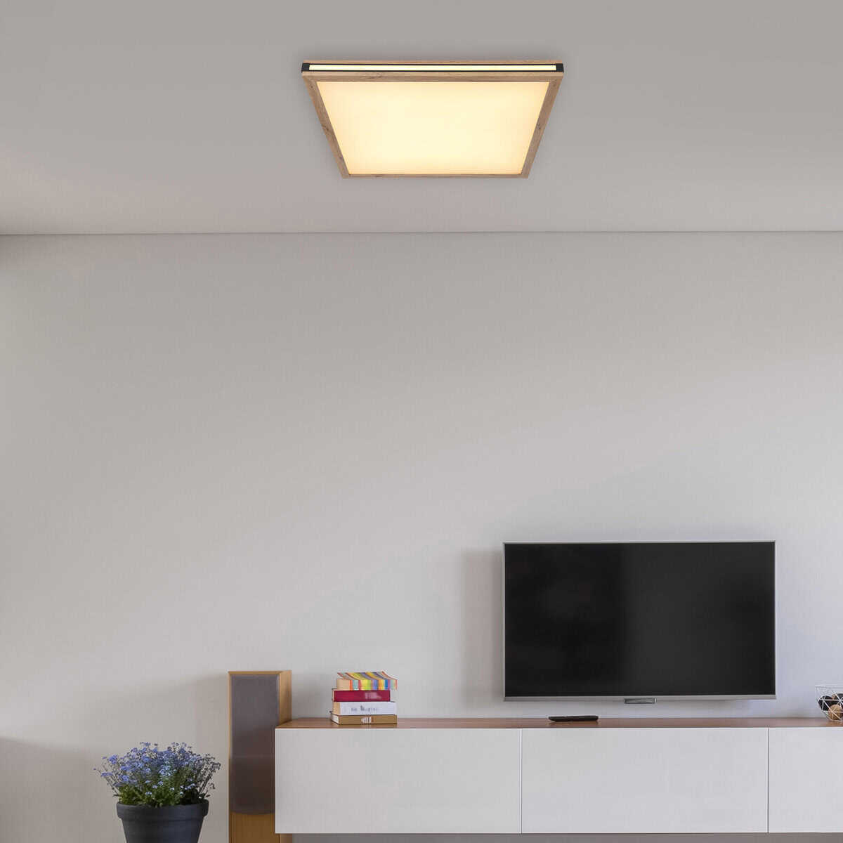 Naša kvadratna plafonska lampa CARLA odličnog dizajna savršen je dodatak vašim prostorijama. Sa svojim MDF ramom i integriranim LED diodama, ne samo da pruža optimalno osvjetljenje, već i modernu estetiku. CARLA plafonska lampa ima metalni okvir, opciono u bijeloj ili mat crnoj boji, što osigurava stabilnost i izdržljivost. Sjenilo je izrađeno od MDF-a sa izgledom tamnog drveta i opal plastike koja pruža ugodno svjetlo bez odsjaja. S veličinom D:600mm i Š:600mm, CARLA plafonska lampa se harmonično prilagođava različitim konceptima prostorija. Ima memorijsku funkciju i može se koristiti u 3 faze: ili kao glavno svjetlo, bočno svjetlo ili oboje zajedno. Sa snagom od 2200 lumena i temperaturom boje od 3000K, CARLA plafonska lampa stvara svetlu i domaću atmosferu. Idealan je za dnevne sobe, trpezarije ili kancelarije. Otkrijte moderan i tehnički dizajn CARLA plafonske lampe i uživajte u optimalnom osvjetljenju u svojim prostorijama. Postavite željenu svjetlinu po potrebi i stvorite ugodnu atmosferu.