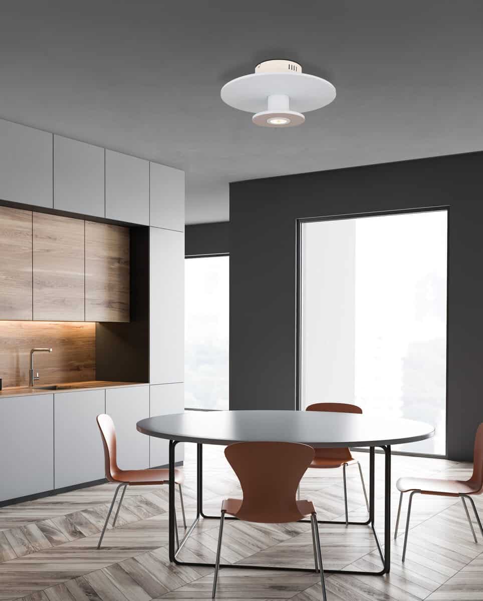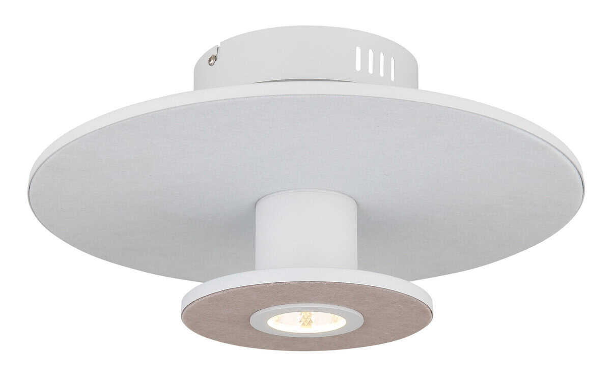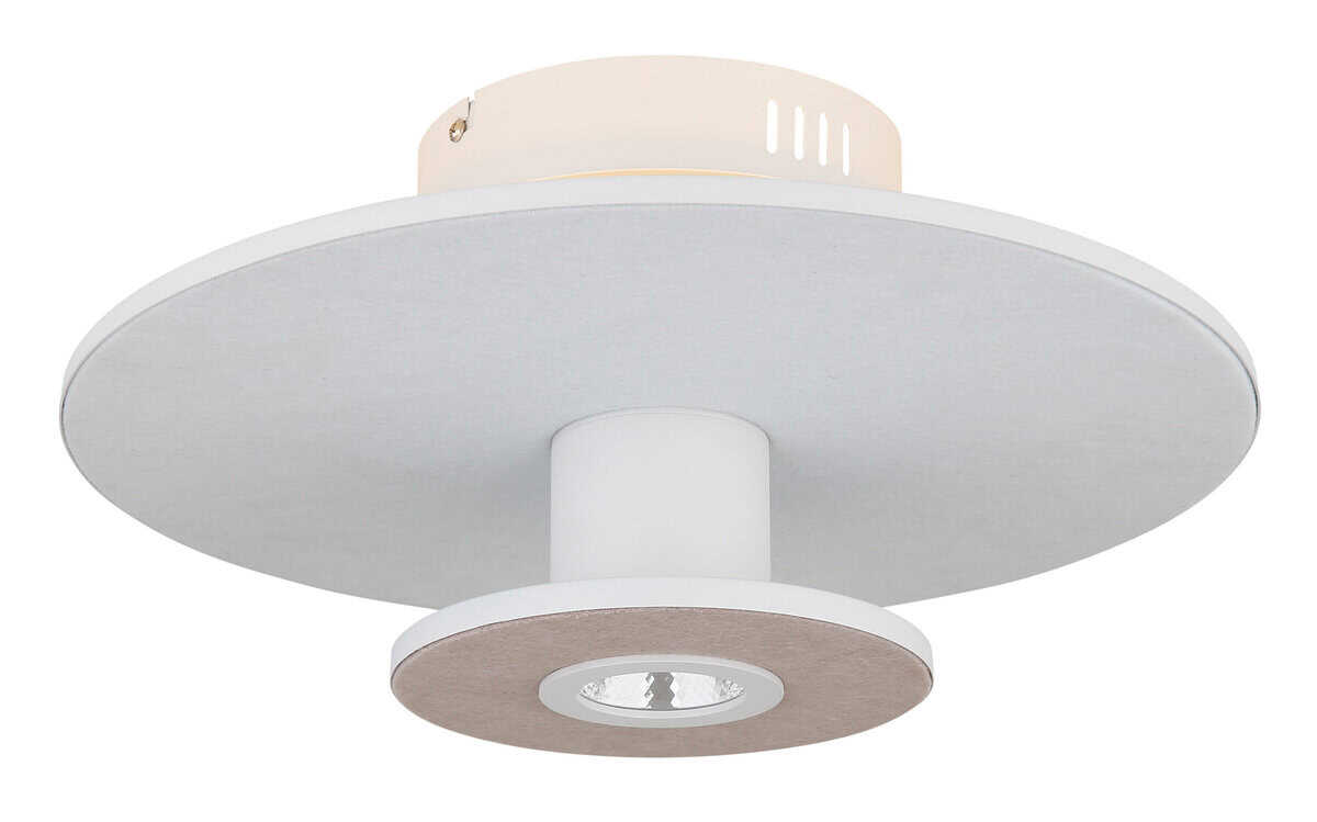 Bijelo svjetlo za elegantne sobe: PLAFONA CARTER METAL WHITE je moderno i elegantno rješenje za vašu rasvjetu. Okrugli oblik i ravni diskovi prekriveni filcom rezultiraju jedinstvenim dizajnom koji je savršen za elegantne prostore. Plafonska lampa ima metalno kućište u bijelom mat laku i sjenilo od aluminija u bijelom mat laku. Tekstilni pokrivač je zadržan u svijetlosivoj i bež boji, što stvara moderan i bezvremenski izgled. Sa LED rasvjetom sa memorijskom funkcijom, osvjetljenje se može podesiti na tri nivoa: ugašeno, osvijetljeno ili oboje zajedno. 1XLED rješenje pruža efikasno osvjetljenje koje štedi energiju. Osvjetljenje toplih boja od 3000K stvara ugodnu atmosferu