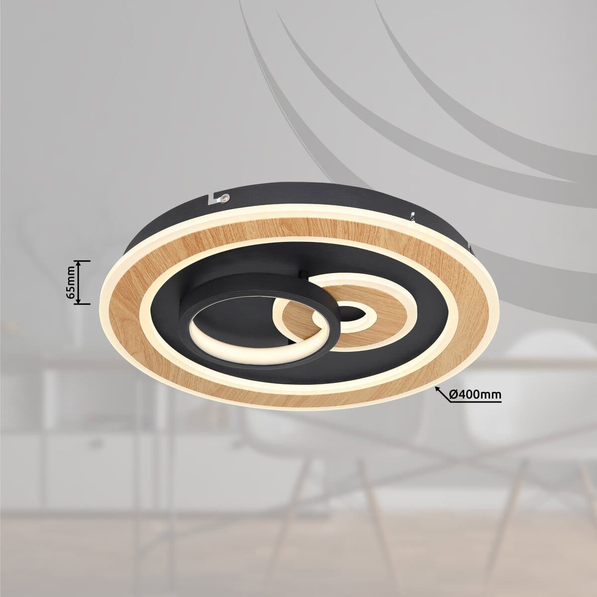 Ova okrugla stropna lampa (Ø40cm) uvjerava dizajnom i funkcijama. Opremljen memorijskom funkcijom, izmjenjivačem boja, daljinskim upravljačem i funkcijom noćnog svjetla, nijedna želja ne ostaje neispunjena. Vrhunac je, međutim, funkcija Smart Home, svjetiljka je kompatibilna sa Smart Home i Alexa i može se upravljati glasovnim unosom. Nadalje, svjetlosni objekt ima LED ploču od 40 vati sa vijekom trajanja od 20.000 sati. Ovom Smartlight lampom se lako može upravljati pomoću aplikacije Tuya Smart (Android TM/IOS). Ova plafonska lampa se može pričvrstiti i prigušiti i omogućava da se njena boja svetla podešava daljinskim upravljačem (2700K-6500K).