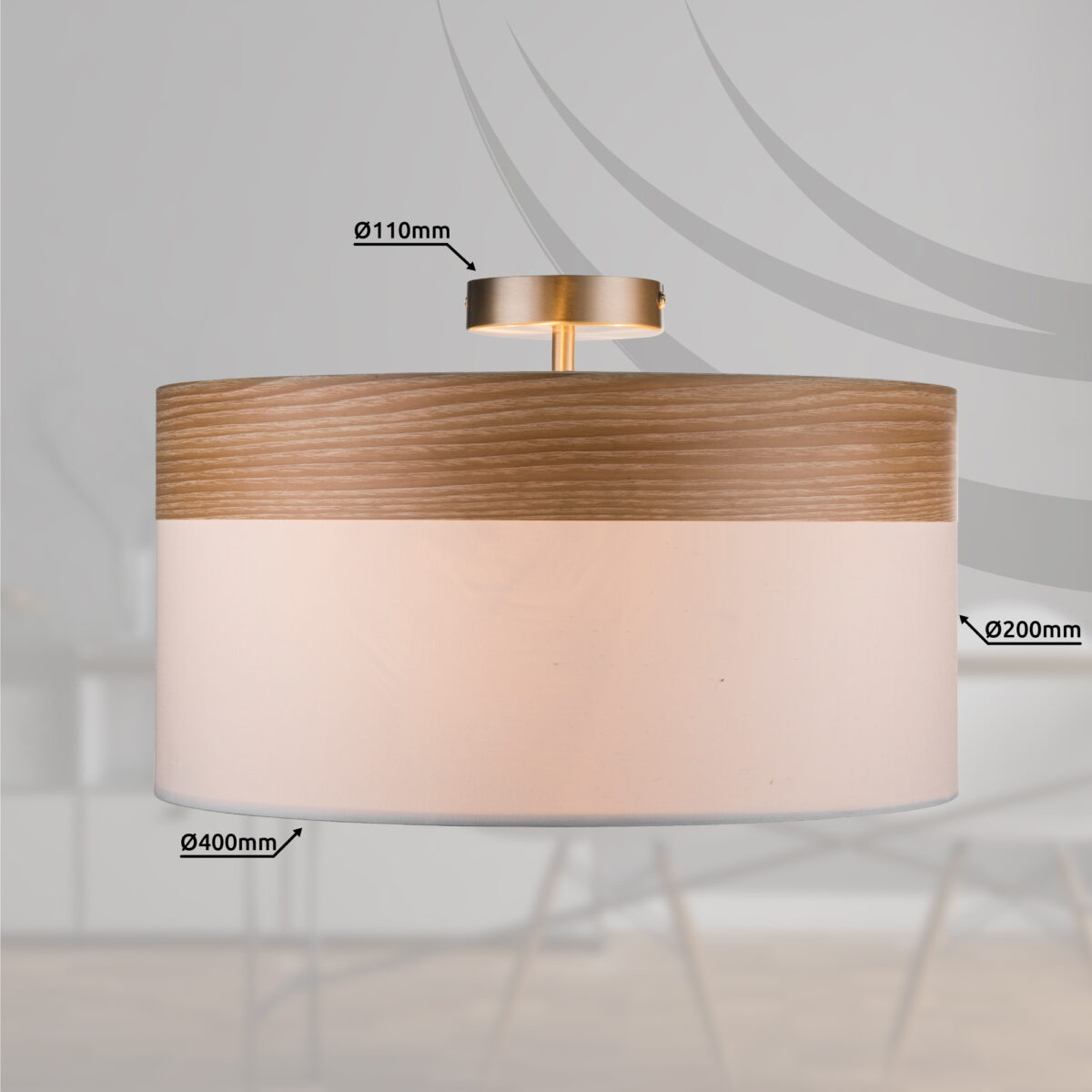 Ova elegantna plafonska lampa, iz porodice proizvoda Chipsy, ima sjenilo prečnika 40 cm. Sjenilo ima drvo-smeđi izgled i bež tekstil. Tri E27 utičnice nude vam mogućnost kontrole svjetline korištenjem različitih izvora svjetlosti (maks. 40W). Zbog uštede energije i dugovečnosti preporučujemo LED lampe. Alternative za ovu lampu mogu se naći u istoj seriji proizvoda.