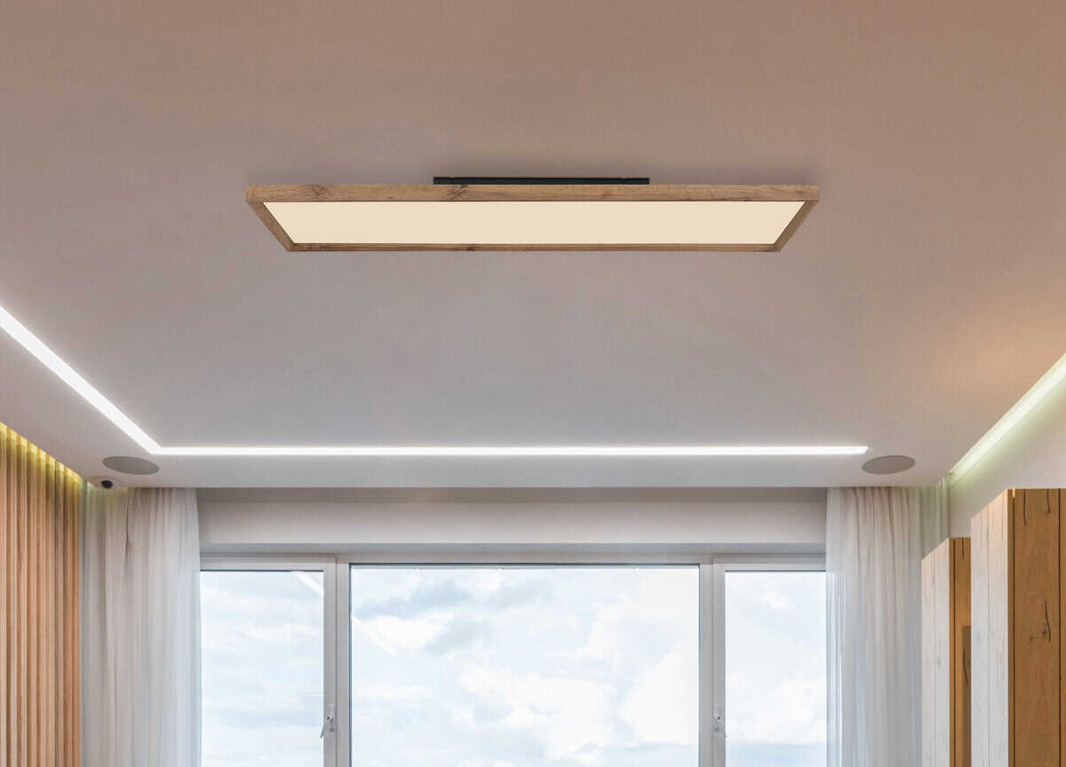 Ova pravougaona plafonska lampa (120x30cm) u izgledu drveta serije Pepeljuga inspiriše svojim sjajnim dizajnom. U okviru svetiljke nalazi se LED ploča koja se može fiksirati u nivoima svetla 2700 Kelvina toplo belo, 4500 Kelvina neutralno i 6500 Kelvina hladno belo.