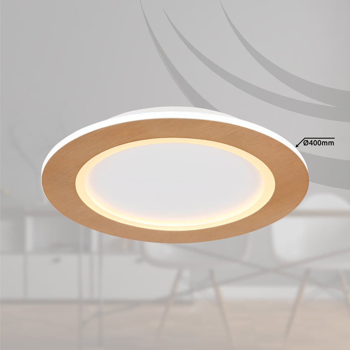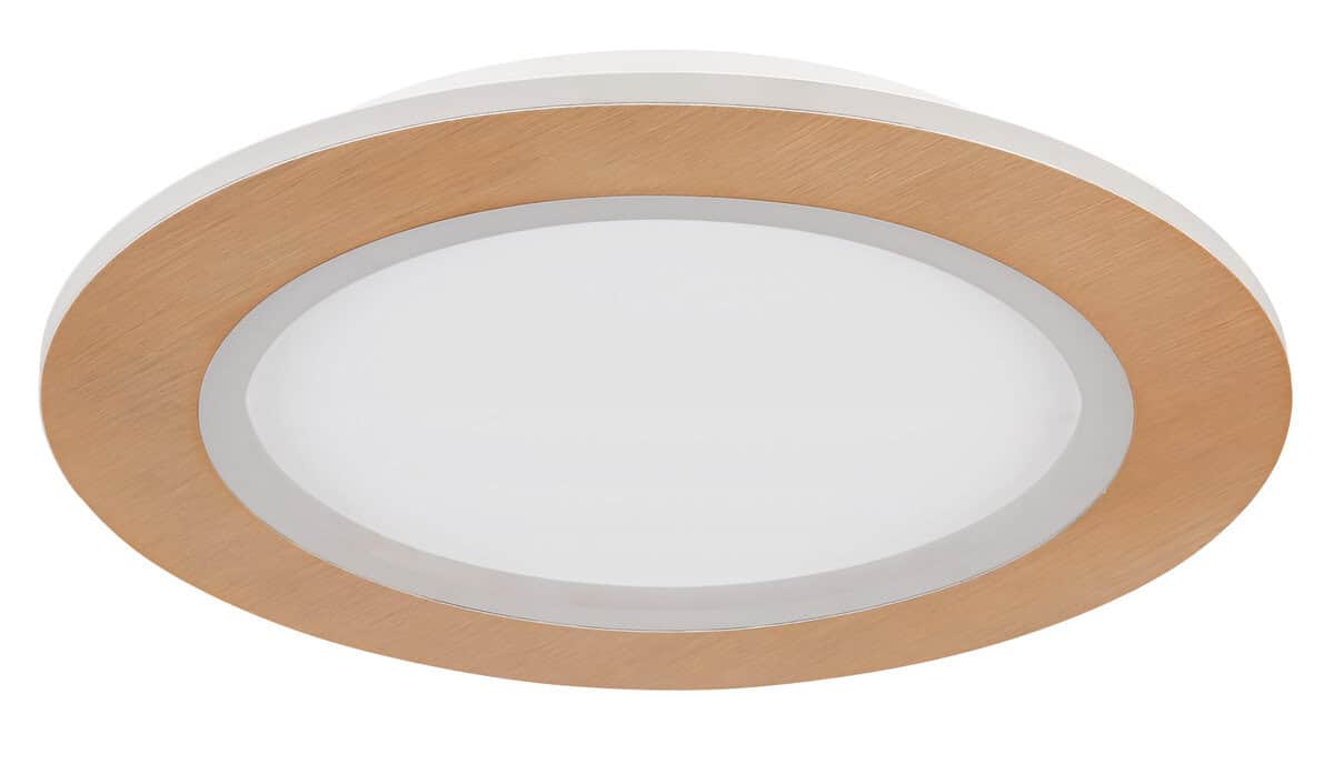 Plafonska lampa je izrađena od bijelog mat metala i akrila u izgledu drveta kao i opal akrila raspoređenog u prečniku od 400 mm. Lampa se isporučuje sa LED sijalicom snage 30 W i naponom 230 V. Izvor svjetla ima svjetlinu od 4230 lm izvora i izlaznu snagu od 1690 lm pri temperaturi boje 2700-6500K. Unutrašnje LED diode imaju temperaturu boje od 2700K, a vanjske LED imaju temperaturu boje od 6500K. Ova plafonska lampa privlači poglede i idealna je za moderne životne prostore. Sa LED lampom štedite energiju i štitite životnu sredinu.