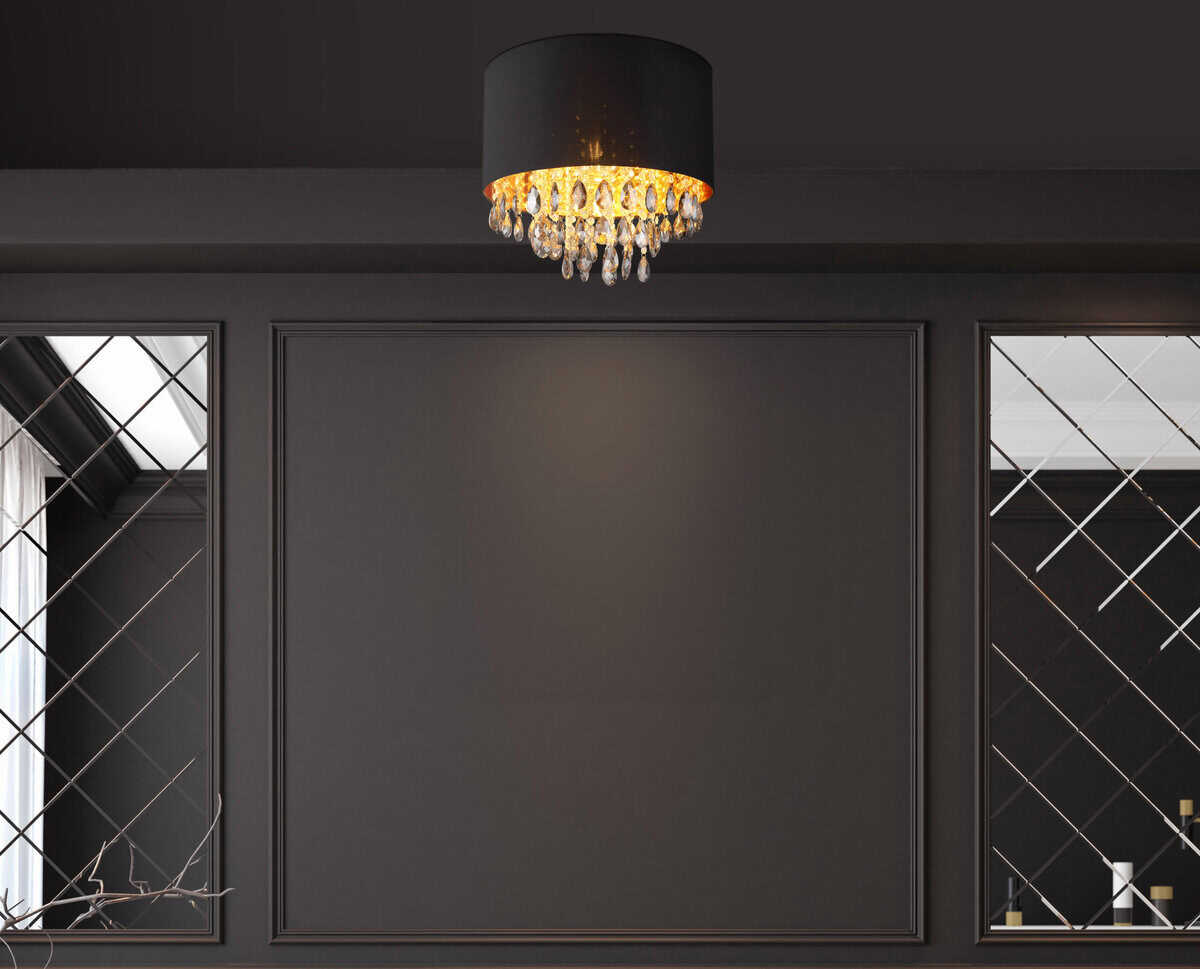 Plafonska lampa COLETTA impresionira okruglim tekstilnim sjenilom i blistavim kristalom koji visi unutra. Crna, mat nijansa i prozirni, zadimljeni kristali postavljaju luksuzne akcente u klasične životne prostore. Ova svetiljka je pogodna za sijalicu E27 (ekskluzivno).
