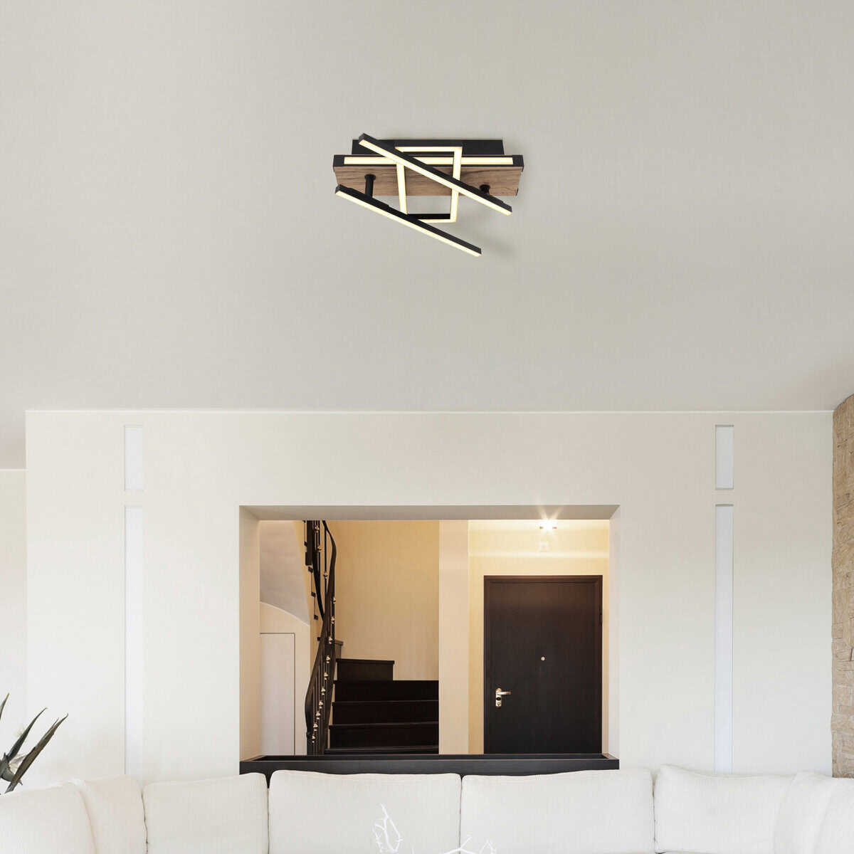 Doživite elegantnu plafonsku lampu COLLI! Mat crni lakirani metalni ormarić u kombinaciji sa plemenitim izgledom tamnog MDF drveta i elegantnim crnim mat aluminijumom dodaće dašak modernosti vašoj sobi. Opalna plastika osigurava glatku i ravnomjernu distribuciju svjetlosti. S nekoliko nivoa preko zidnog prekidača, možete podesiti svjetlinu po svom ukusu, a zahvaljujući praktičnoj funkciji memorije možete zadržati željena podešavanja. COLLI plafonska lampa se može rotirati i okretati i nudi tri nivoa: glavno svetlo, LED diode u okviru ili kombinaciju oba. Sa veličinom 680x460x120mm, pravougaonikom od 22x10cm i dužinom šipke od 30cm, savršeno se uklapa u svaku prostoriju. Plafonsko svjetlo sadrži energetski efikasnu LED od 30W, koja nudi jako svjetlo sa izvorom od 3400lm i izlaznom snagom od 1400lm uz prijatnu temperaturu boje od 3000K. Uronite u fascinantan svijet COLLI plafonske lampe i pretvorite svoju sobu u mjesto modernog osvjetljenja!