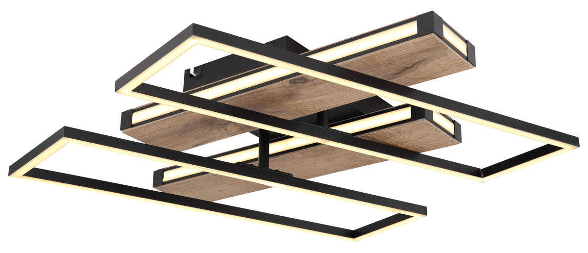 Uronite u fascinantan svijet COLLI plafonske svjetiljke! Njegov mat crni metalni ormarić u kombinaciji sa tamnim izgledom MDF drveta i elegantnim mat crnim aluminijumom dat će vašoj sobi moderan i stilski štih. Opalna plastika osigurava glatku i ravnomjernu distribuciju svjetlosti. Zidni prekidač vam omogućava da podesite osvetljenost u nekoliko nivoa, a funkcija memorije vam omogućava da zadržite željena podešavanja. COLLI plafonska lampa se može rotirati i okretati i nudi tri nivoa: glavno svetlo, LED diode u okviru ili oboje zajedno. Sa veličinom 600x520x100mm i pravougaonicima od 50x15cm, savršeno se uklapa u svaku prostoriju. Plafonsko svjetlo sadrži energetski efikasnu LED diodu od 48 W, koja pruža jako svjetlo sa izvorom od 5400lm i izlaznom snagom od 2550lm uz prijatnu temperaturu boje od 3000K. Doživite izvanredno osvjetljenje sa COLLI plafonskom lampom!