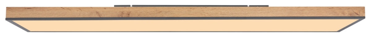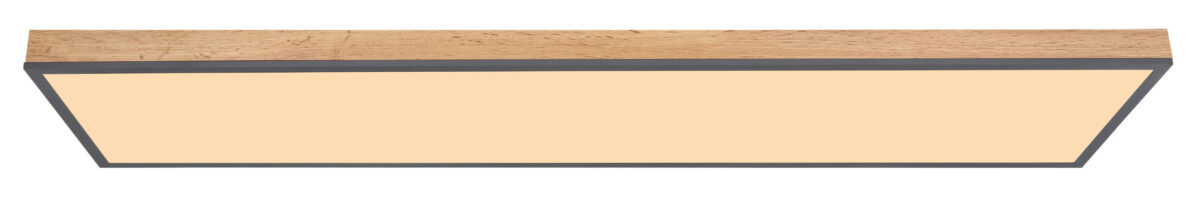 Ova plafonska lampa iz Doro serije je prekrasan dodatak vašem enterijeru. Sastoji se od pravougaonog MDF okvira u izgledu drveta (120×30 cm), koji je opremljen aluminijumom u boji grafita. Plafonska lampa ima LED sijalice koje su prekrivene opal akrilom. Oni daju 2250 lumena jakog svetla sa prijatnom bojom svetla od 3000 Kelvina (toplo belo). Uz druge modele iste serije, možete postaviti stilske akcente na svoja četiri zida i upotpuniti cjelokupnu sliku.