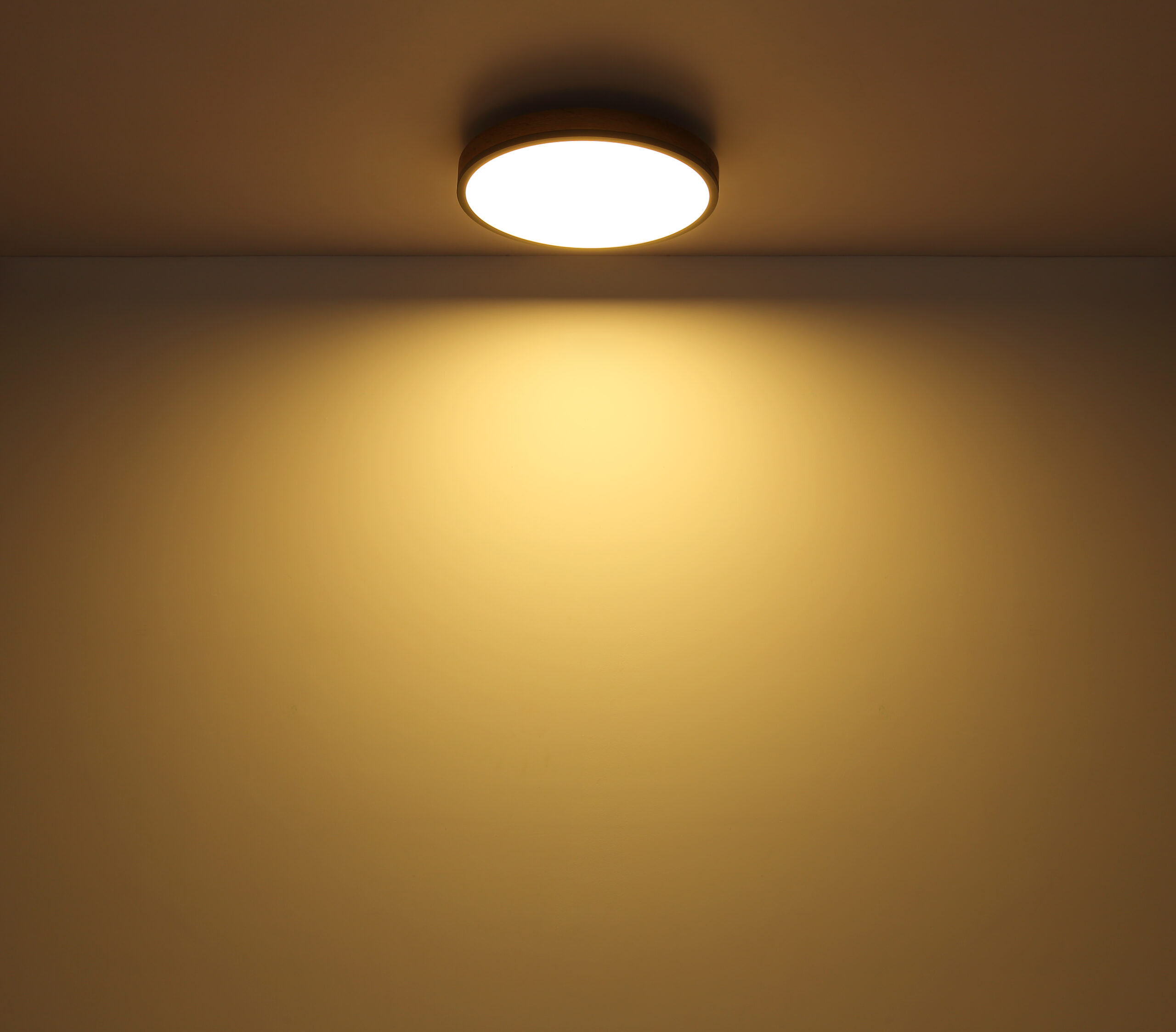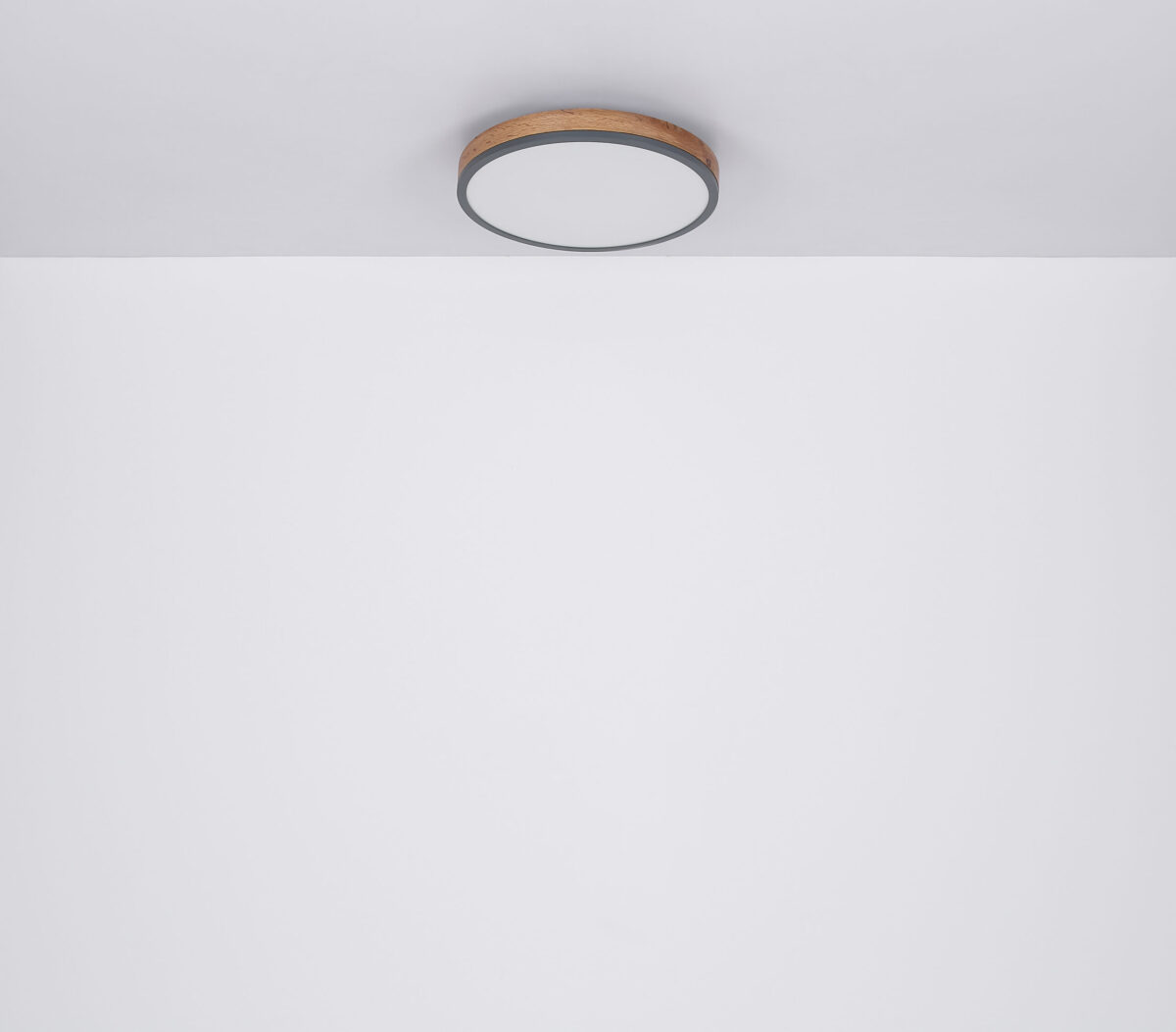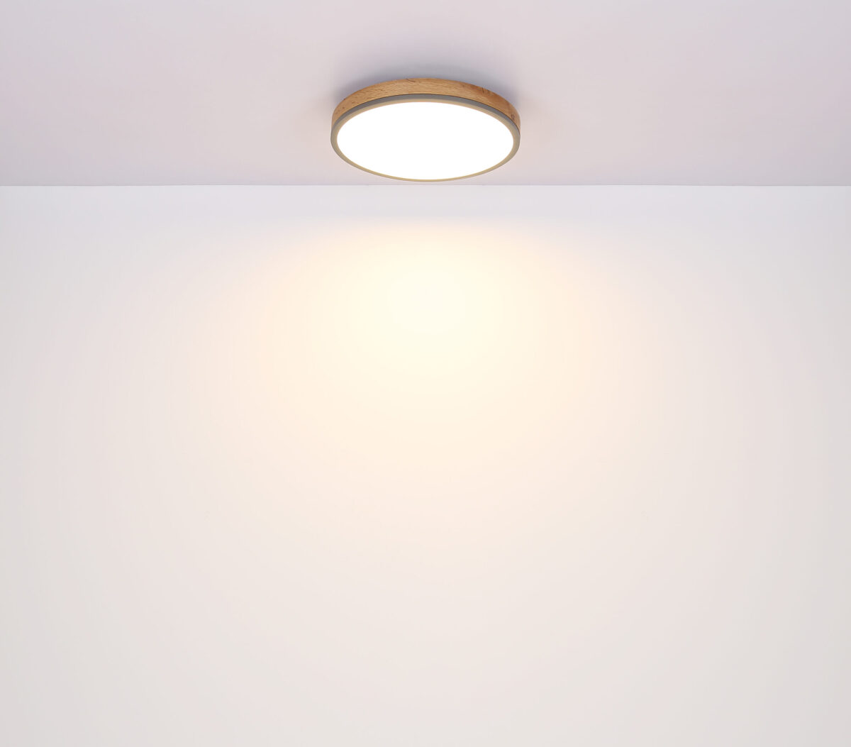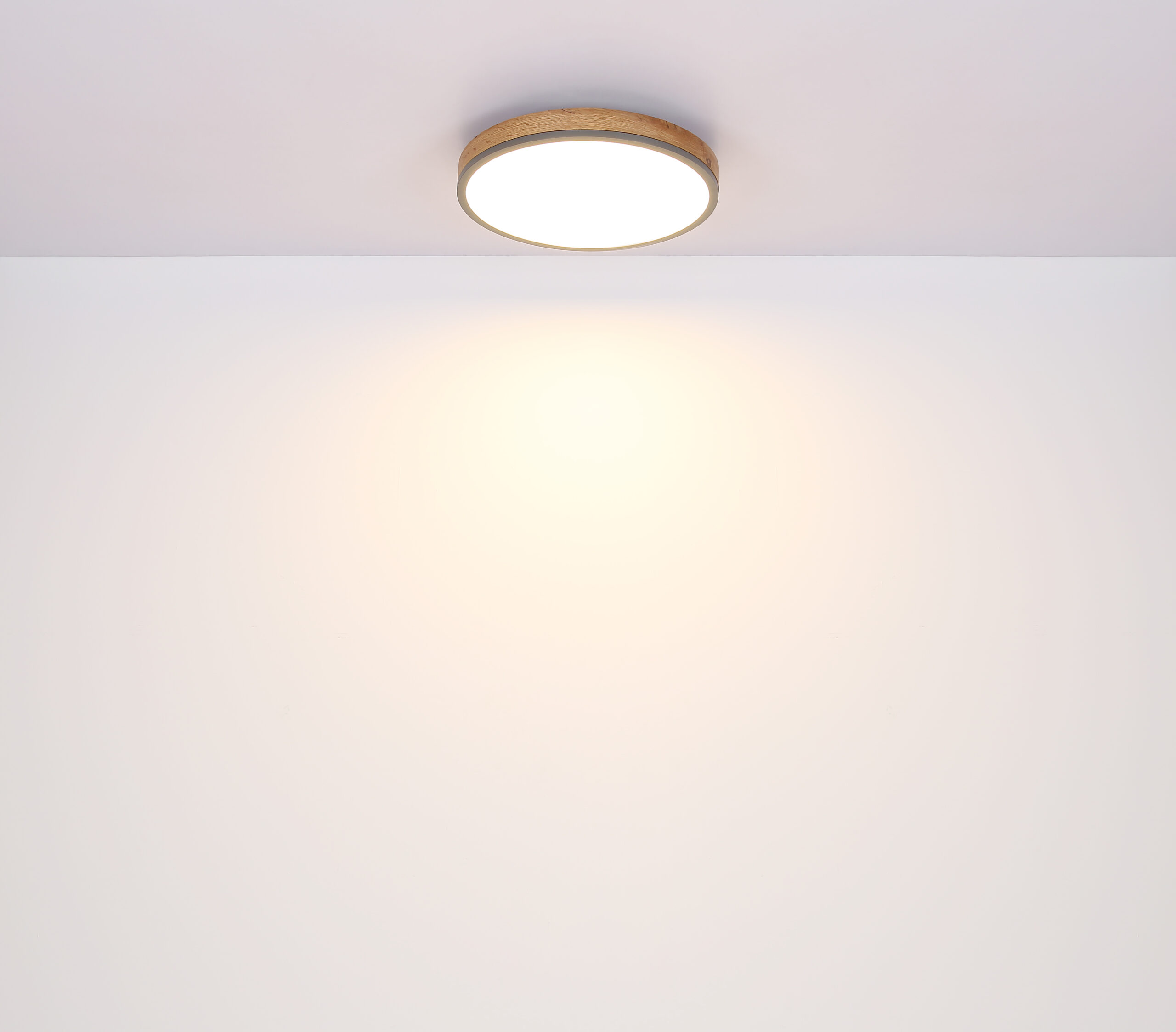 Ova okrugla plafonska lampa inspiriše svojim sjajnim dizajnom. Opal plastika, koja pokriva uključene LED sijalice, zatvorena je okruglim vanjskim kućištem od metala i medijapana u izgledu drveta (Ø45cm). Sa LED sijalicama, ovo daje ugodno toplo bijelo svjetlo od 3000 Kelvina.