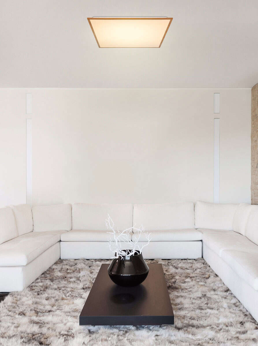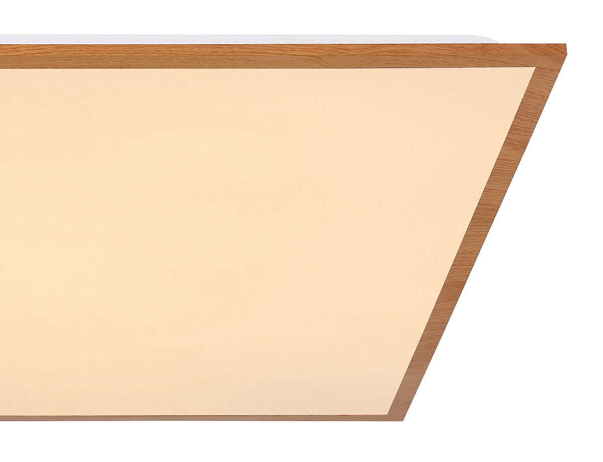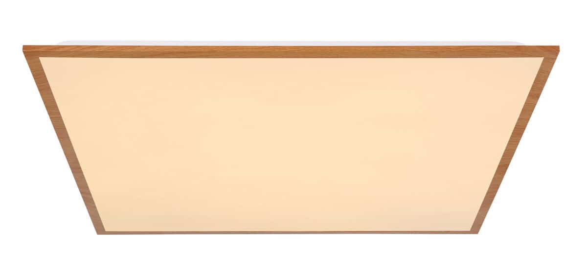 Ova kvadratna ultra ravna LED plafonska lampa u izgledu drveta (590x590x65mm) savršeno se uklapa u svaku prostoriju sa visokim zahtevima za osvetljenjem. Svetlost je raspoređena veoma ravnomerno i čini da vaša soba sija toplom belom svetlošću (3000K). Dizajn je elegantan i neutralan. Zbog upotrebe laganih materijala kao što su plastika i aluminij, također je vrlo lagan uprkos svojoj veličini. Zahvaljujući maloj potrošnji energije, ova LED lampa štedi energiju, a samim tim i vrlo ekološki prihvatljiva.